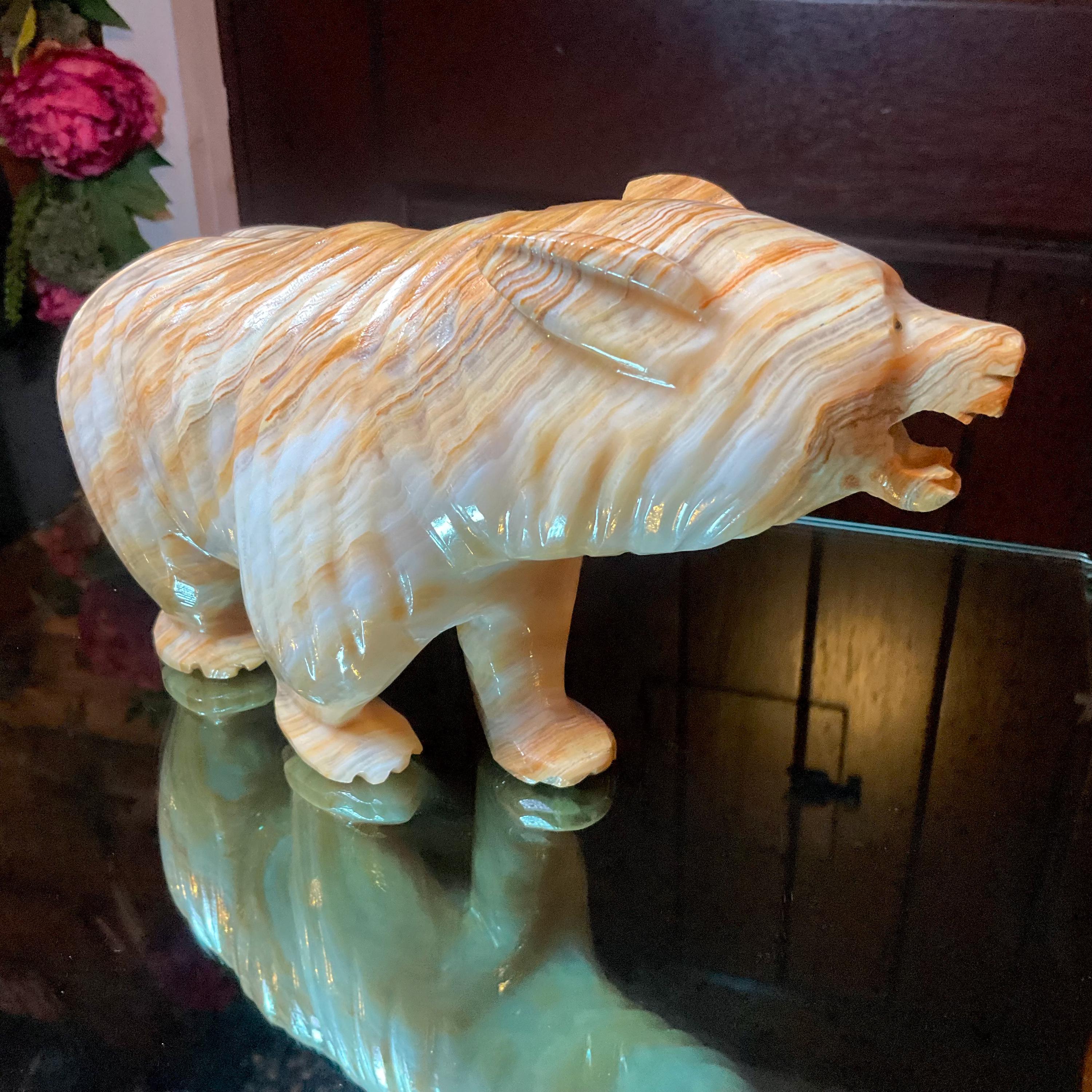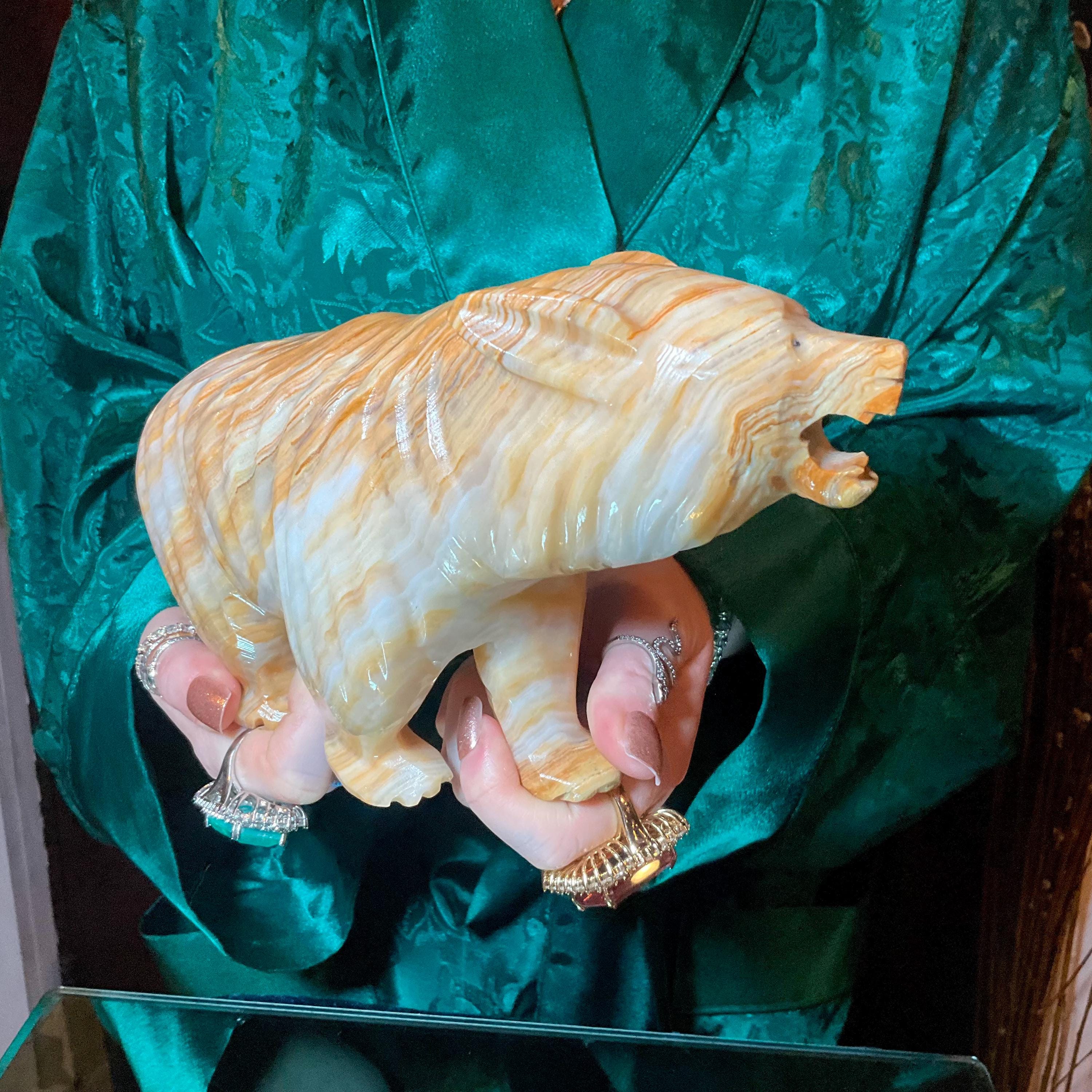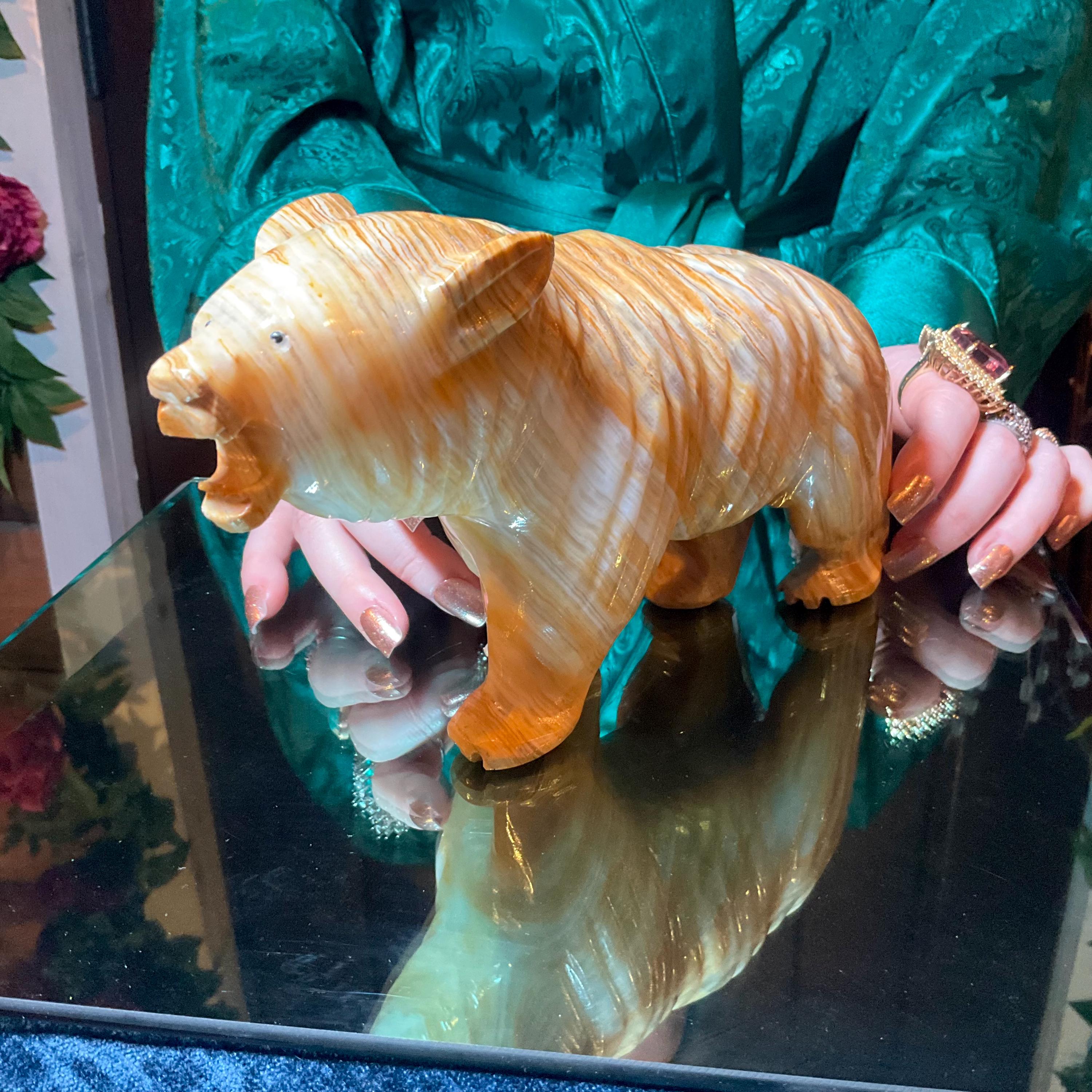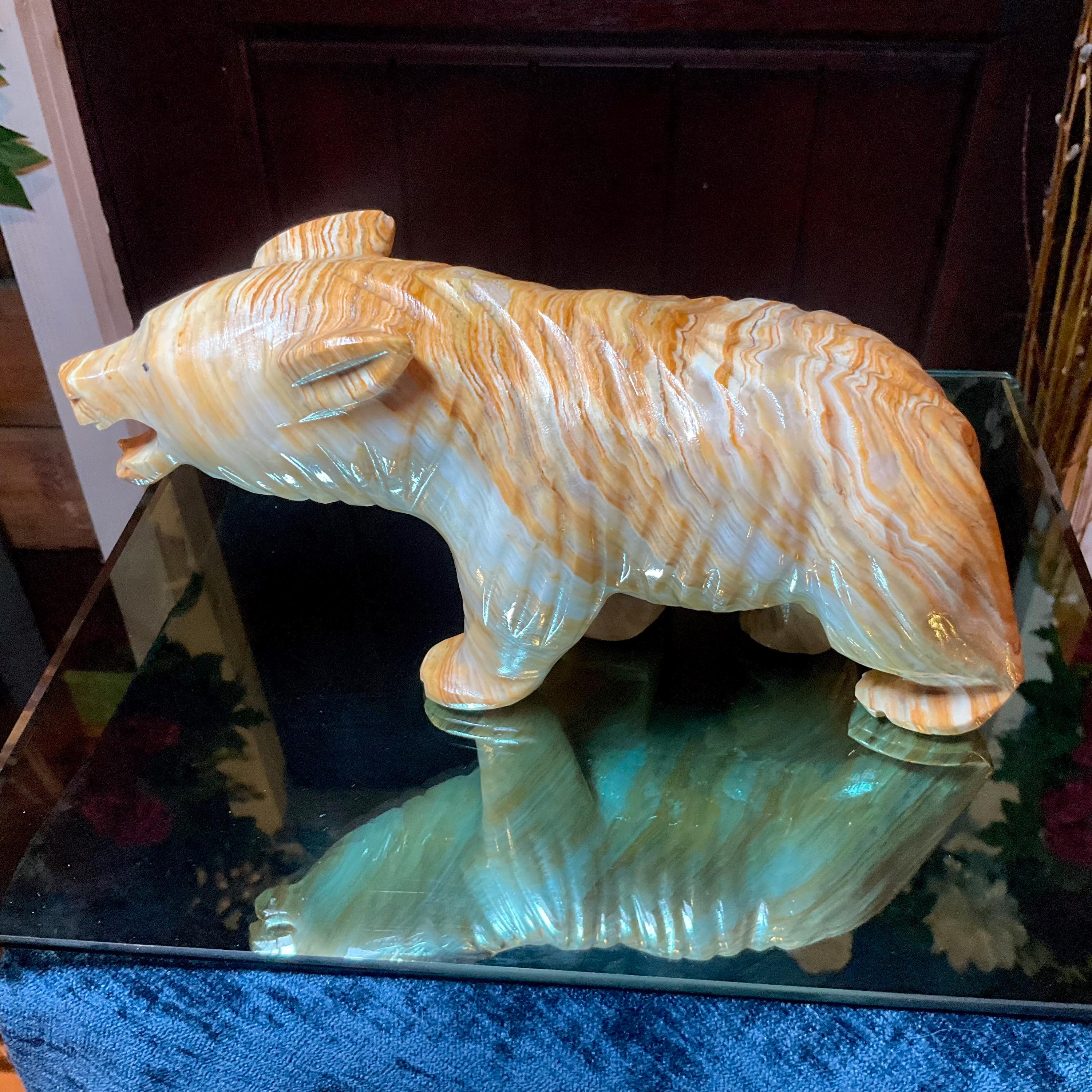 This is a one-of-a-kind carved White and gold Onyx bear.