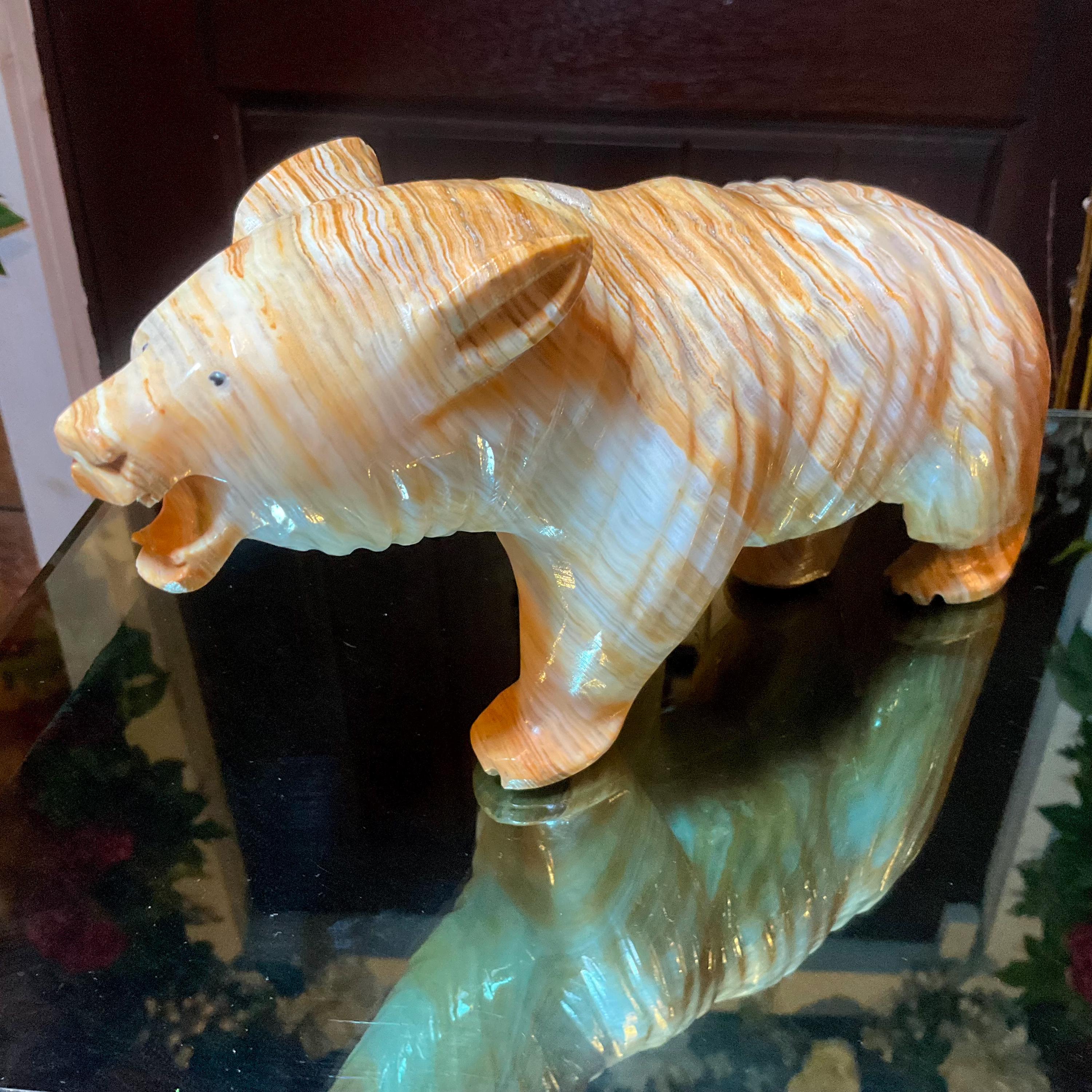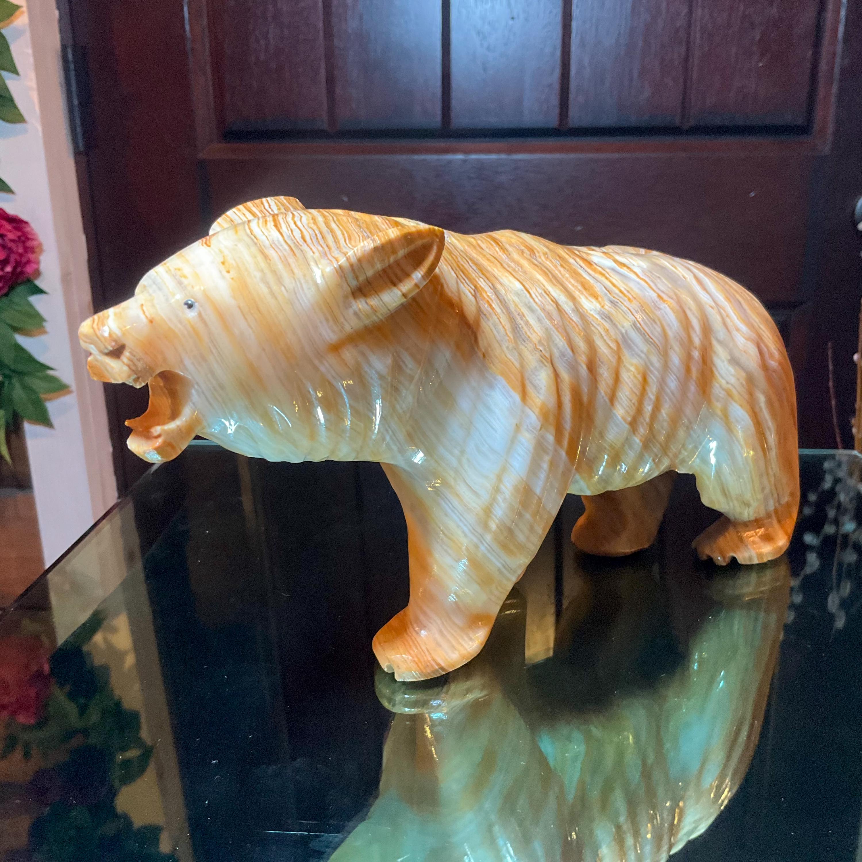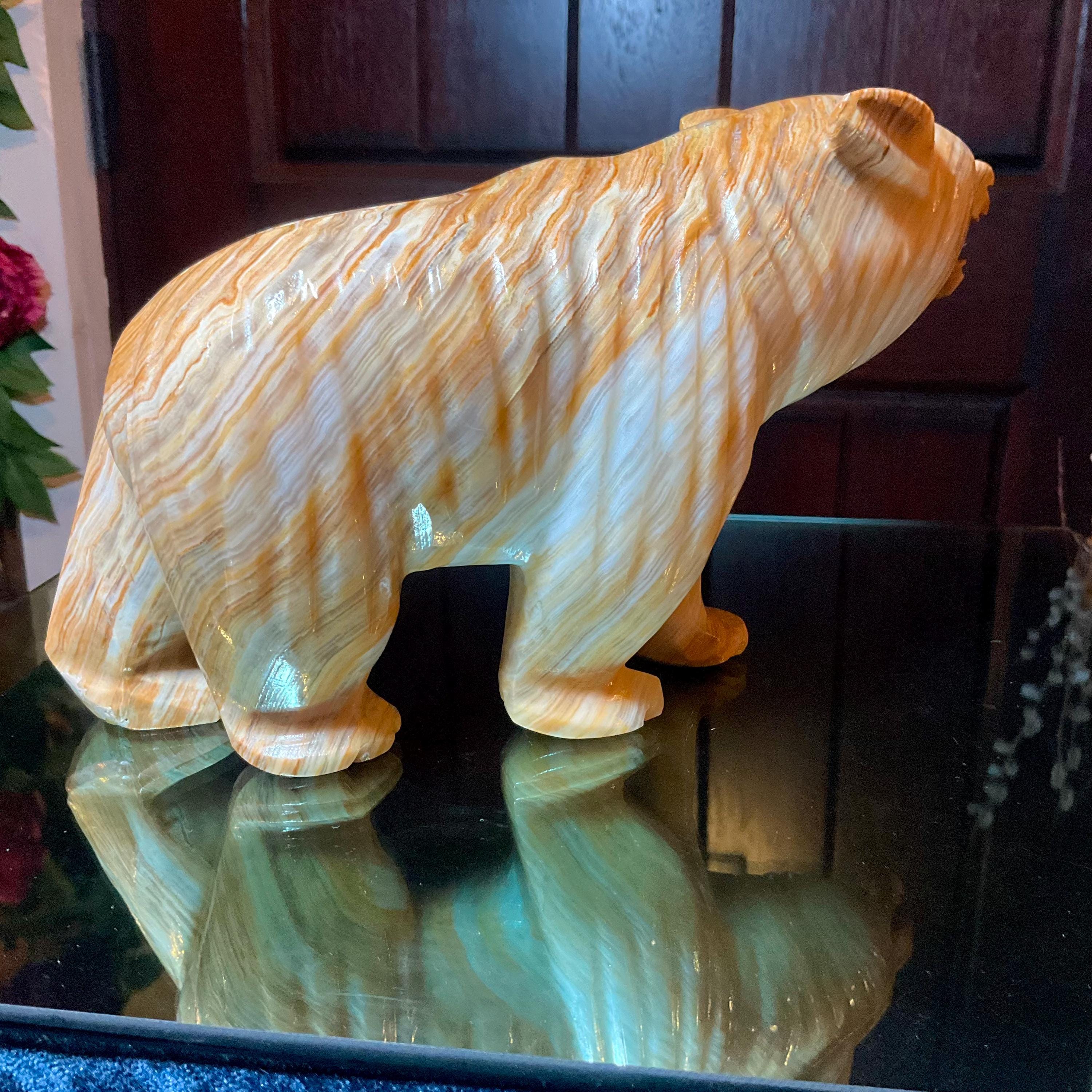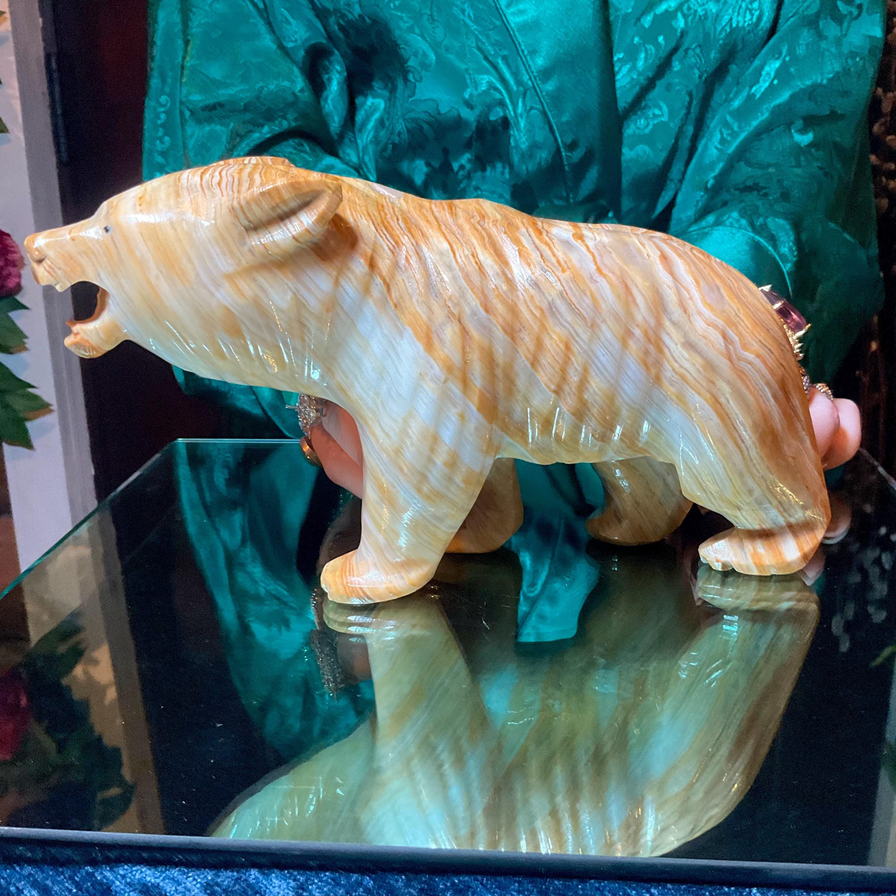 This is a one-of-a-kind carved White and gold Onyx bear.