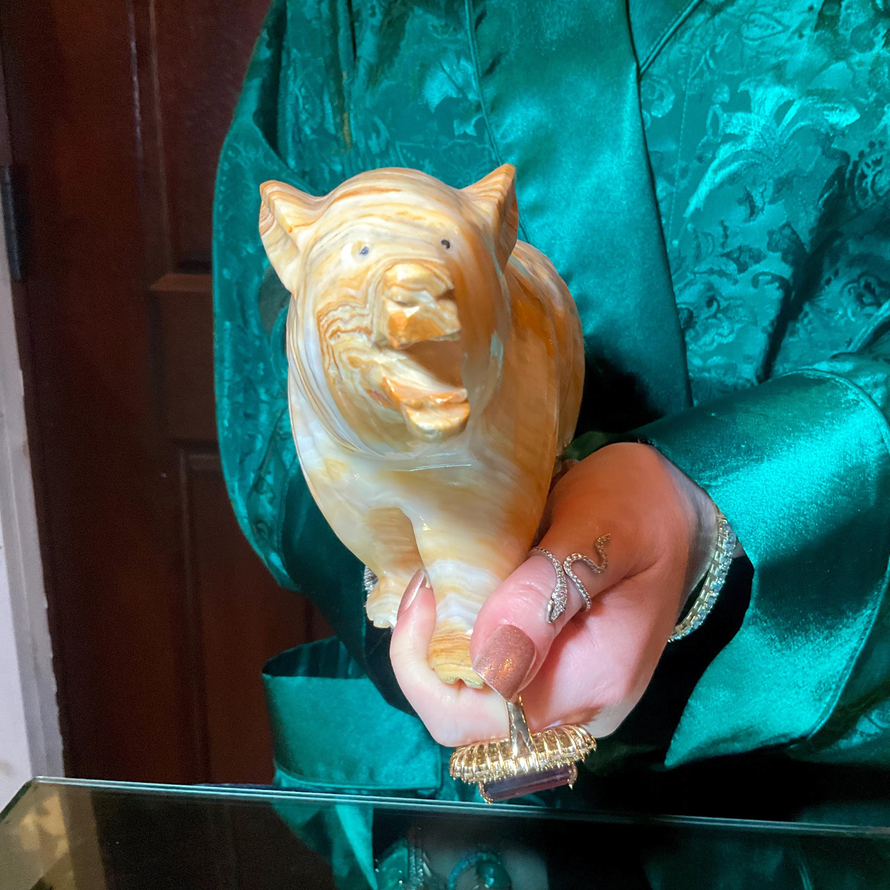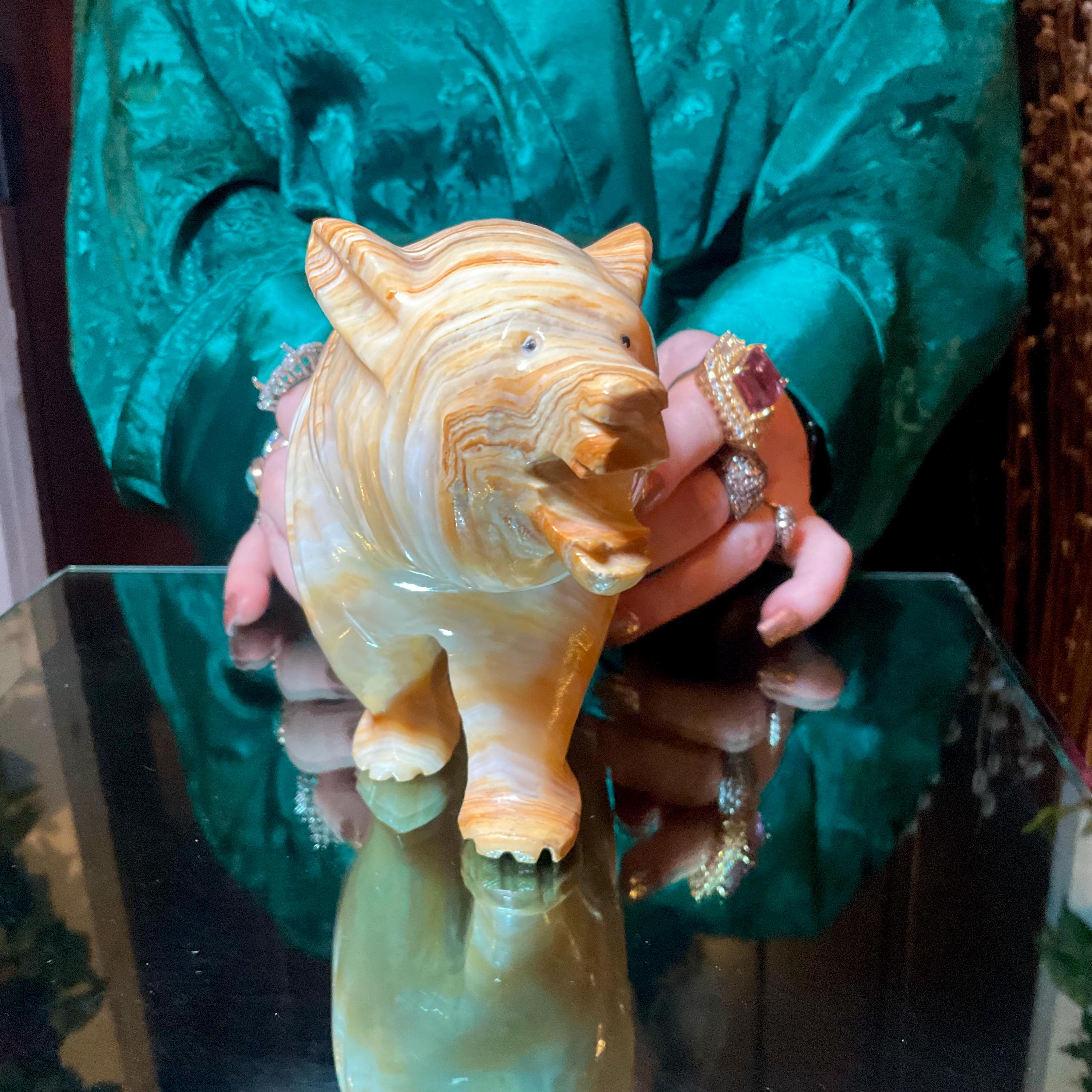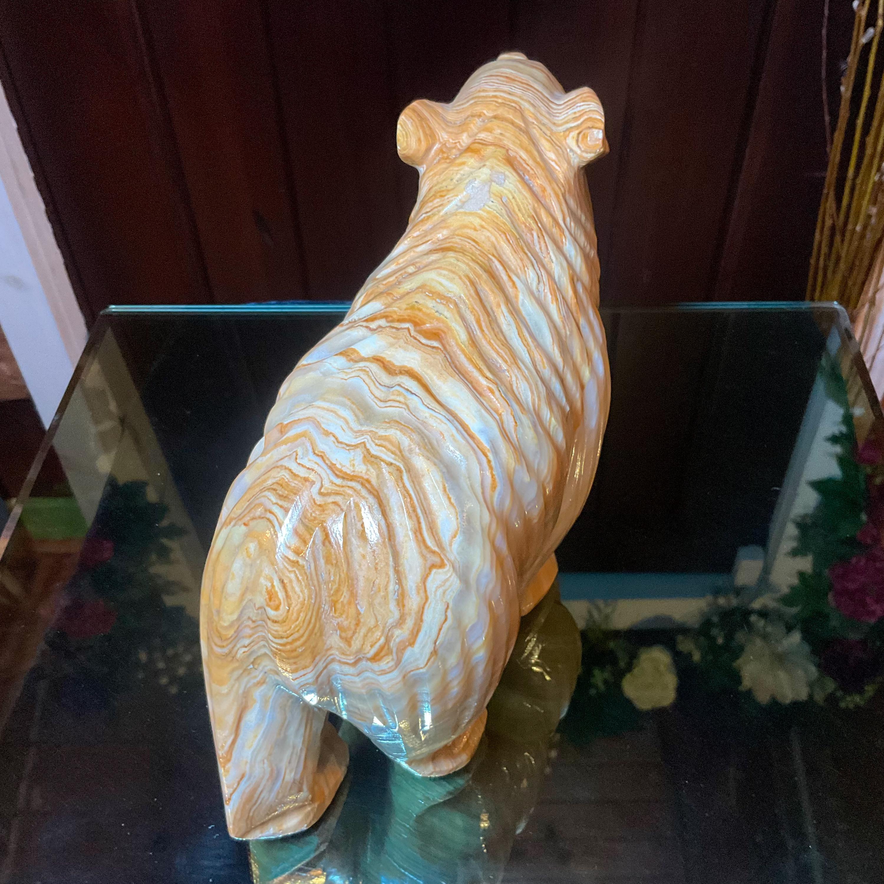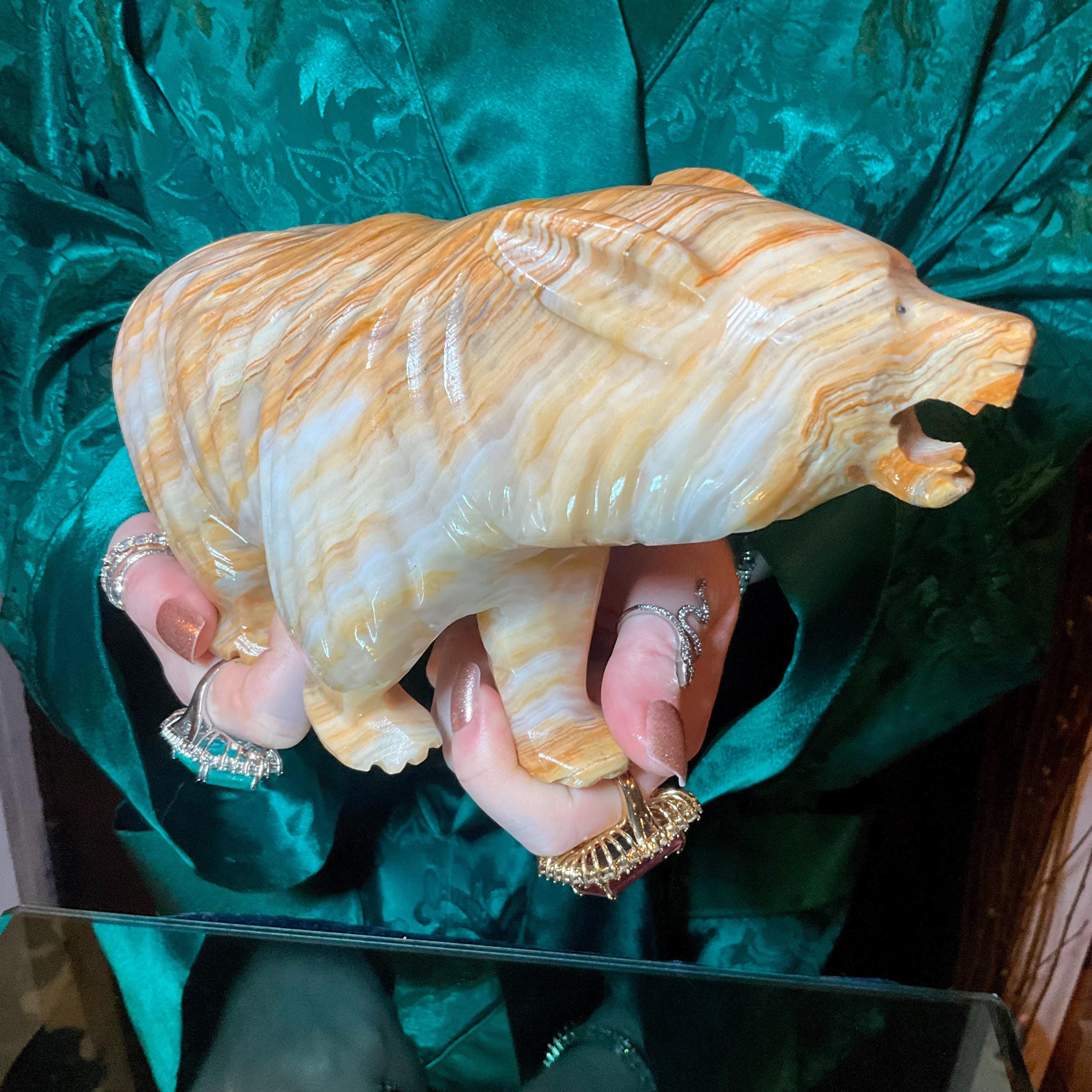 This is a one-of-a-kind carved White and gold Onyx bear.