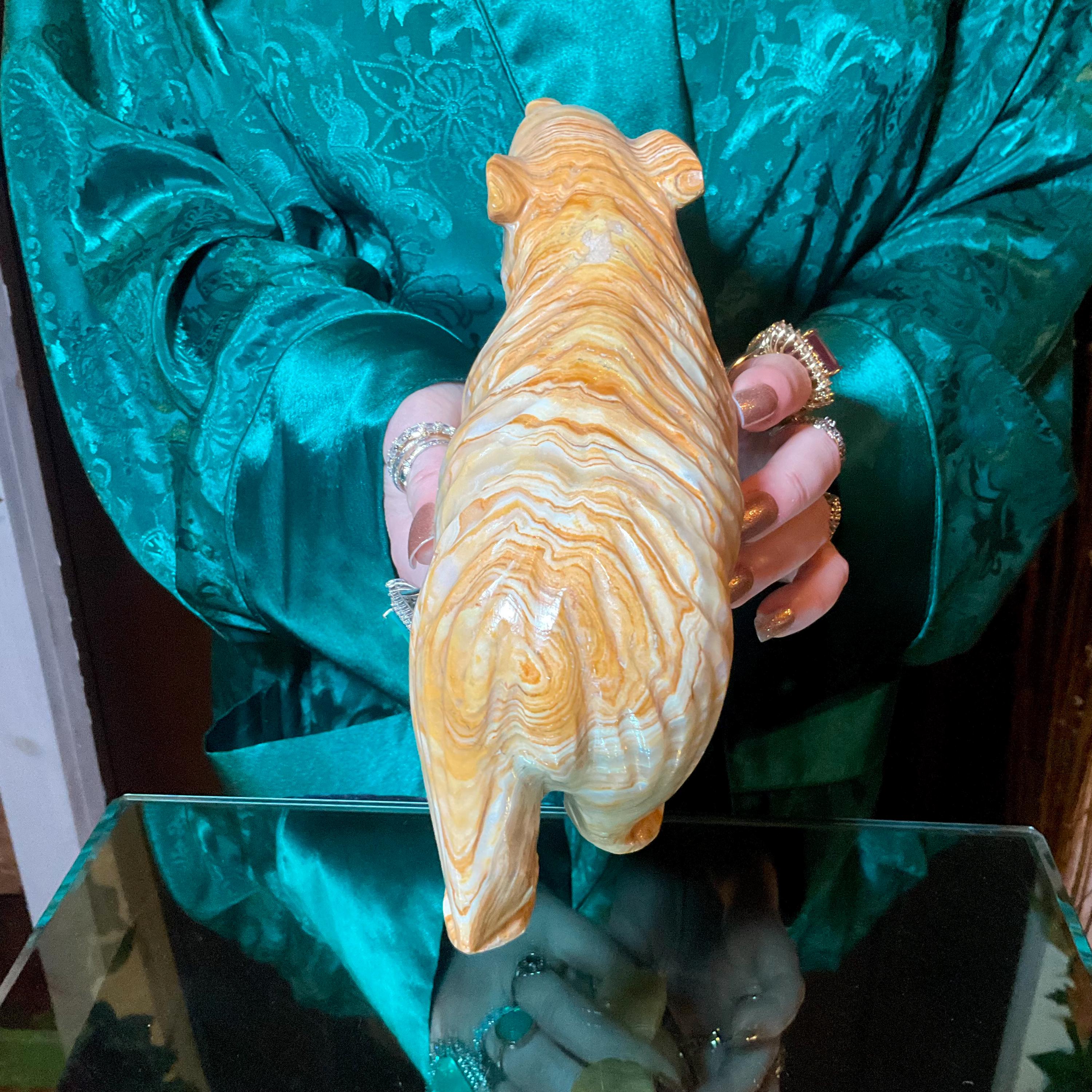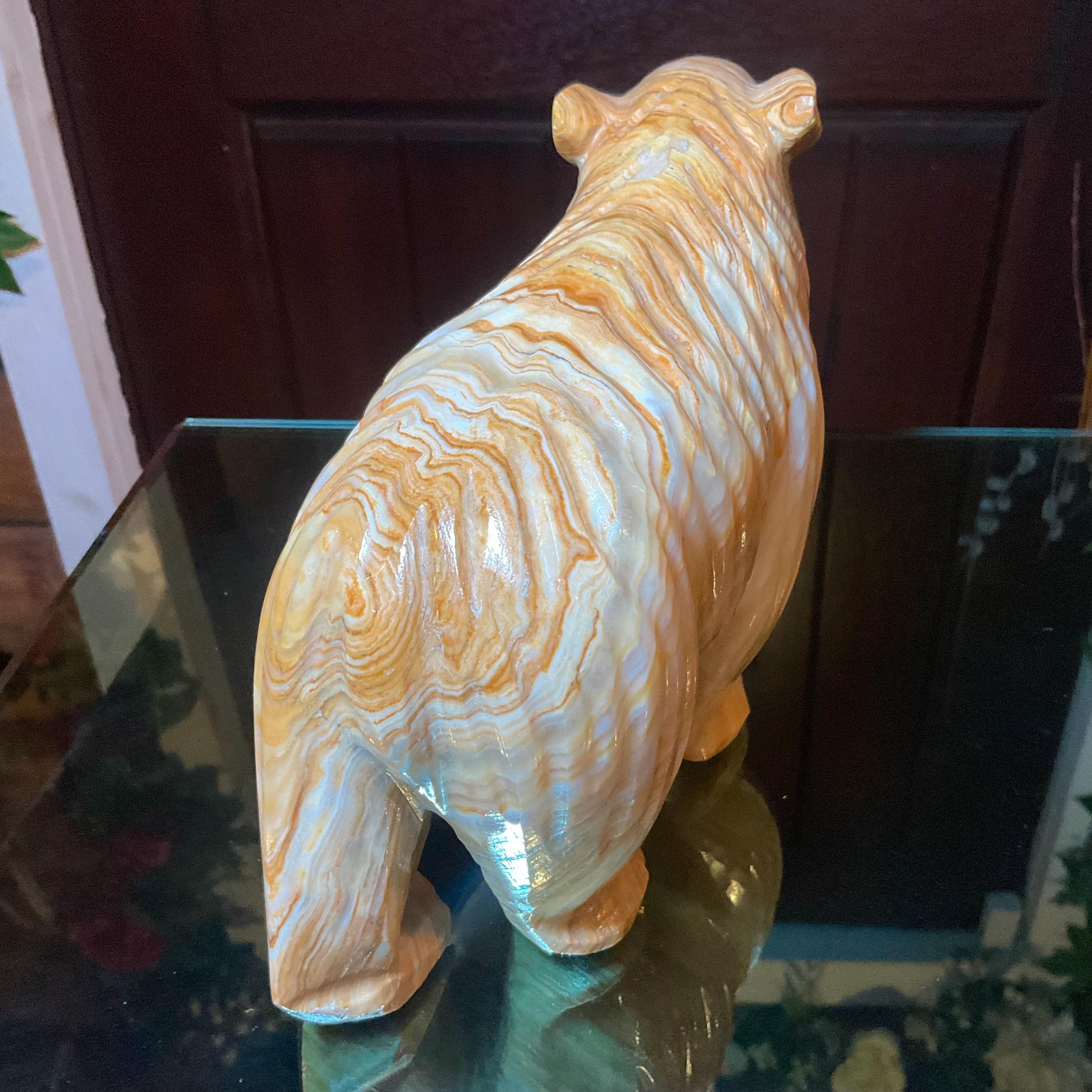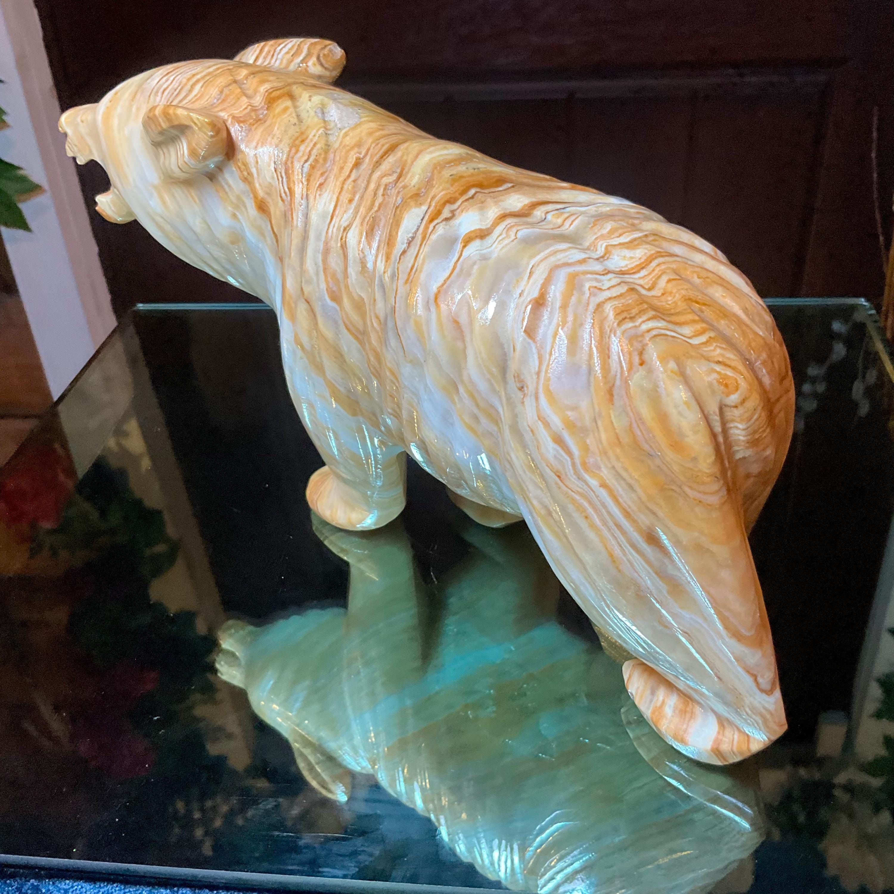 Vintage White & Gold Onyx Bear Large 4 Lb. 13 oz.~ 9" Long ~ Hand Carved Museum Quality ~ Swirling Colors