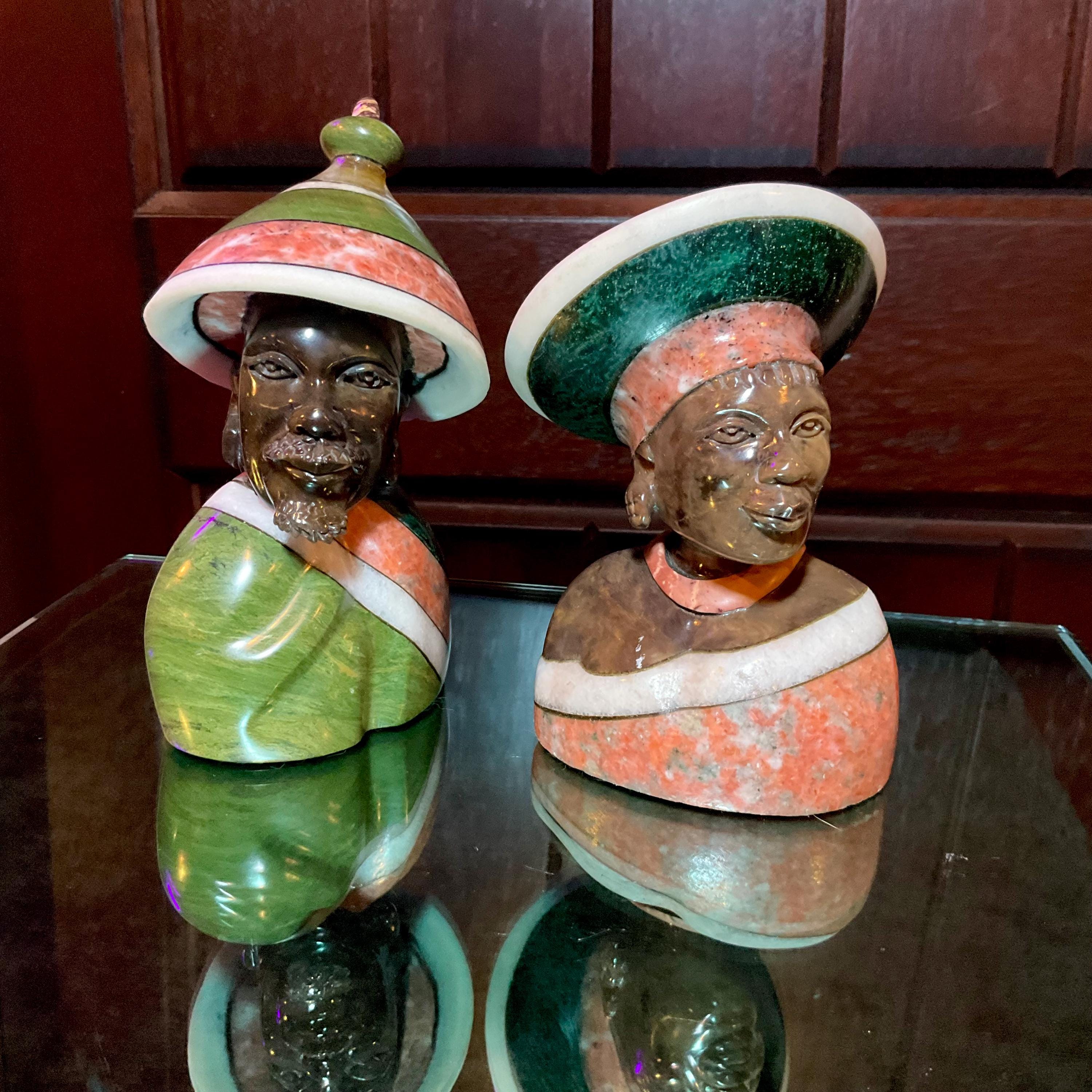 This perfect size Zimbabwean Couple Sculptures weigh a mighty 2 pounds (the man), and 1 pound 11 ounces (the woman) and is beautifully hand carved a long time ago.