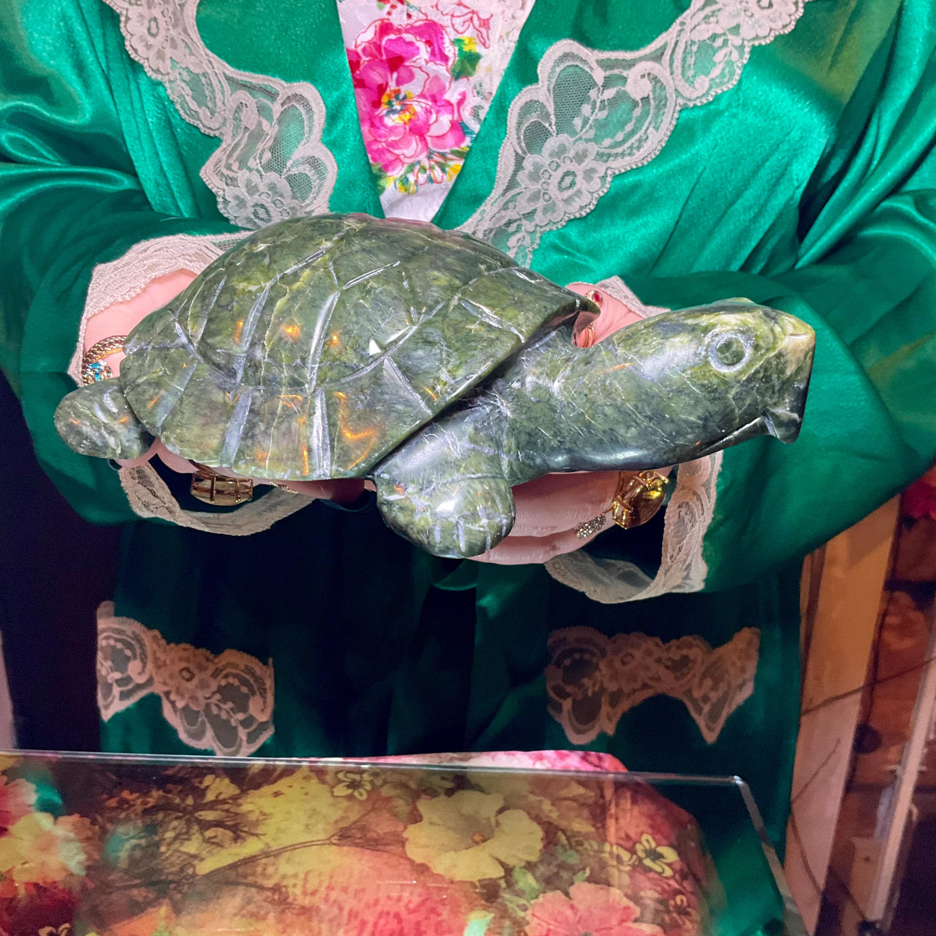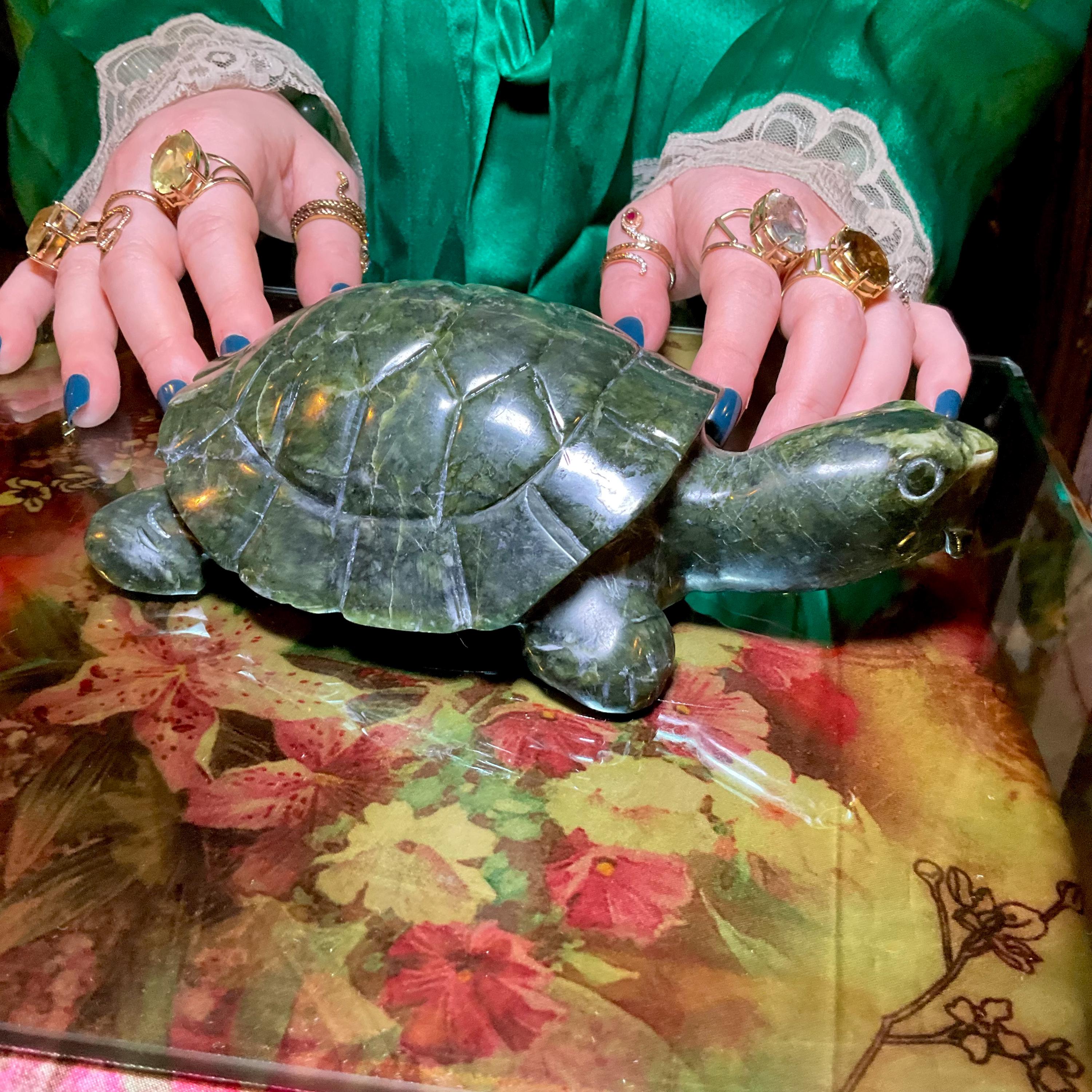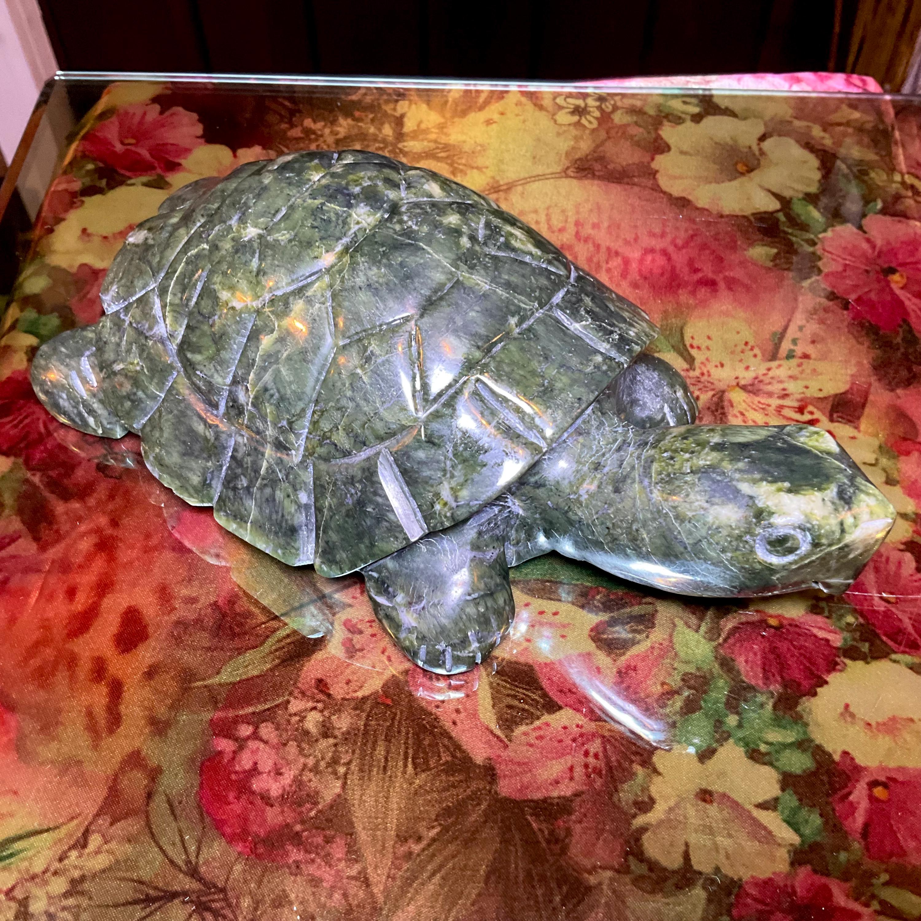This is a one-of-a-kind expertly carved, Nephrite Jade Turtle.