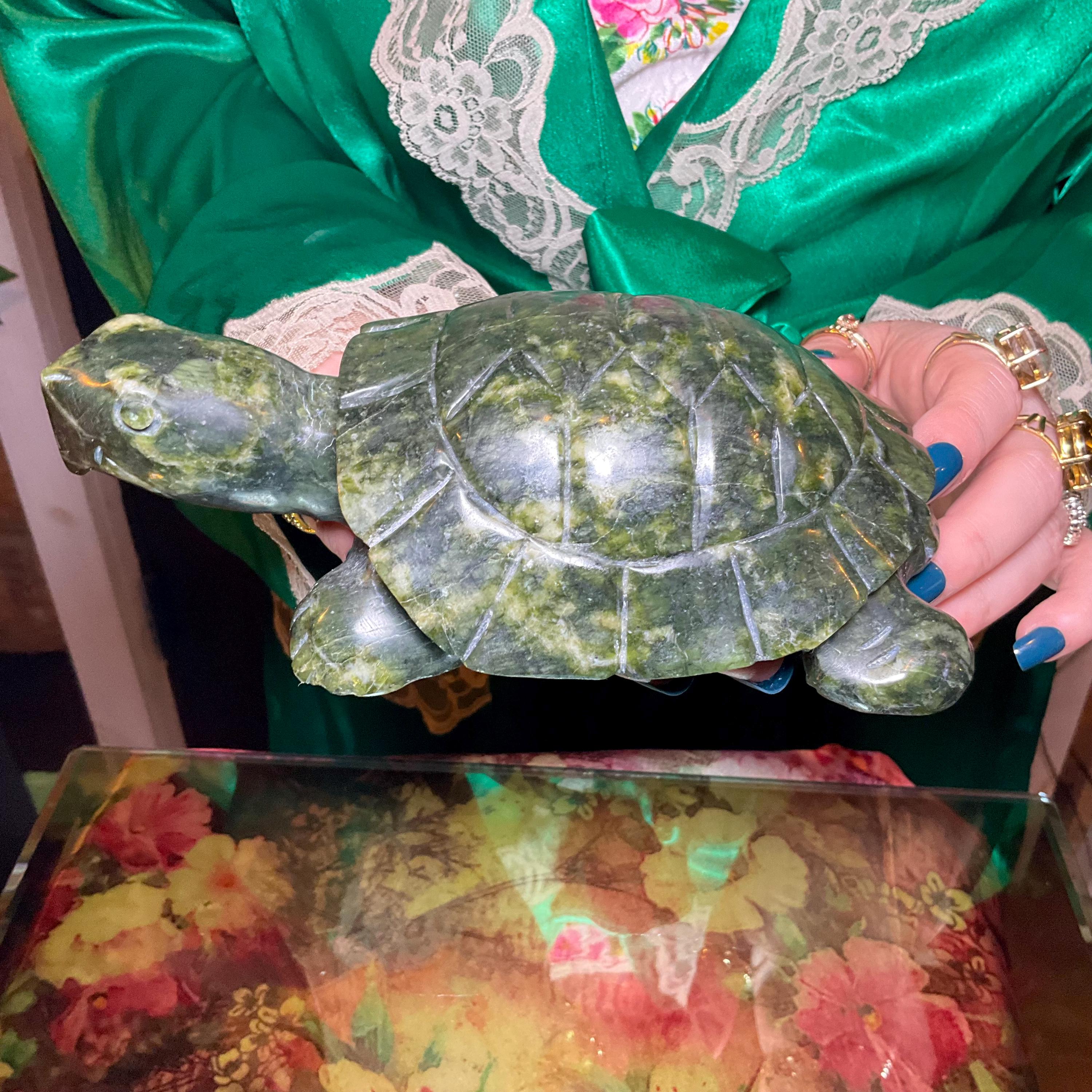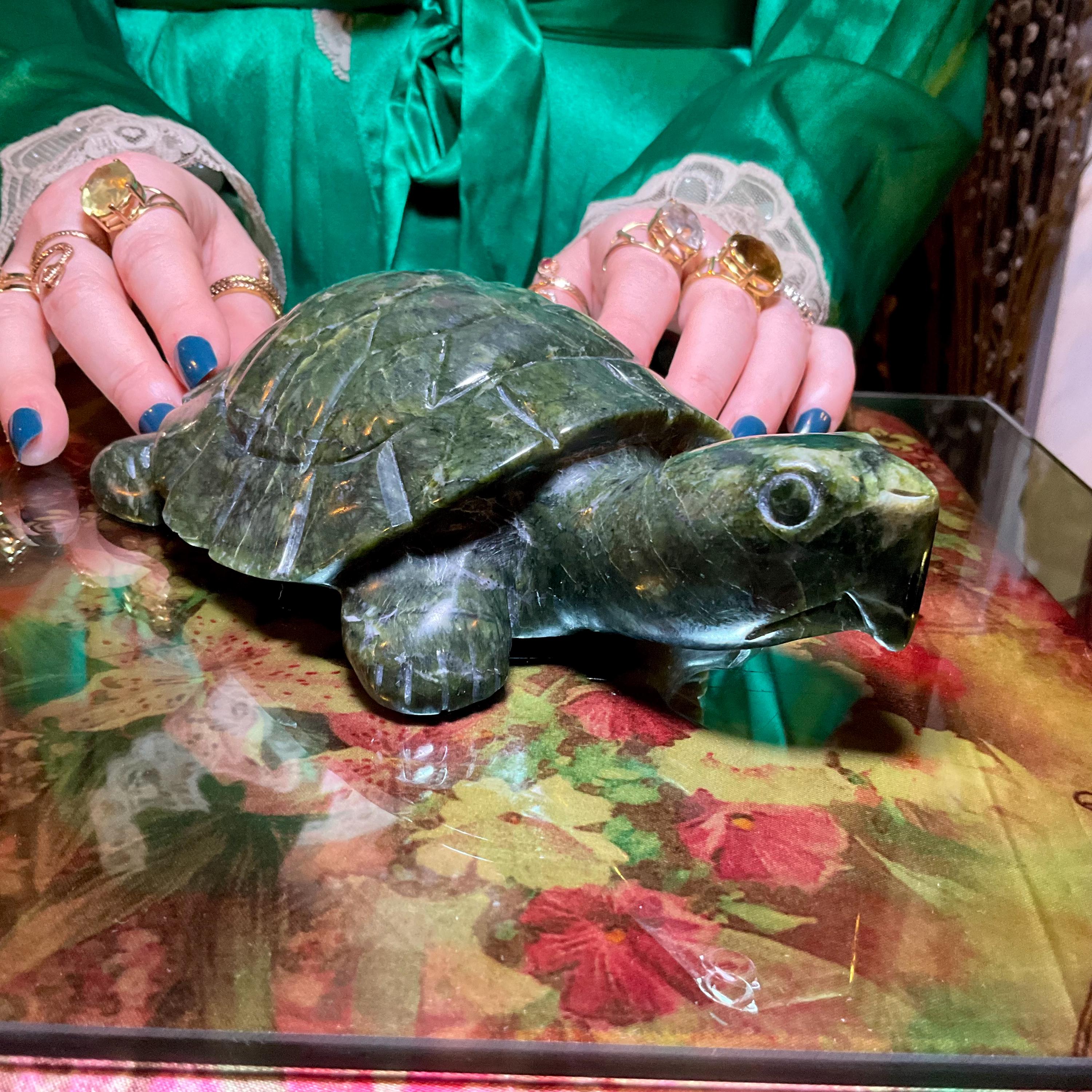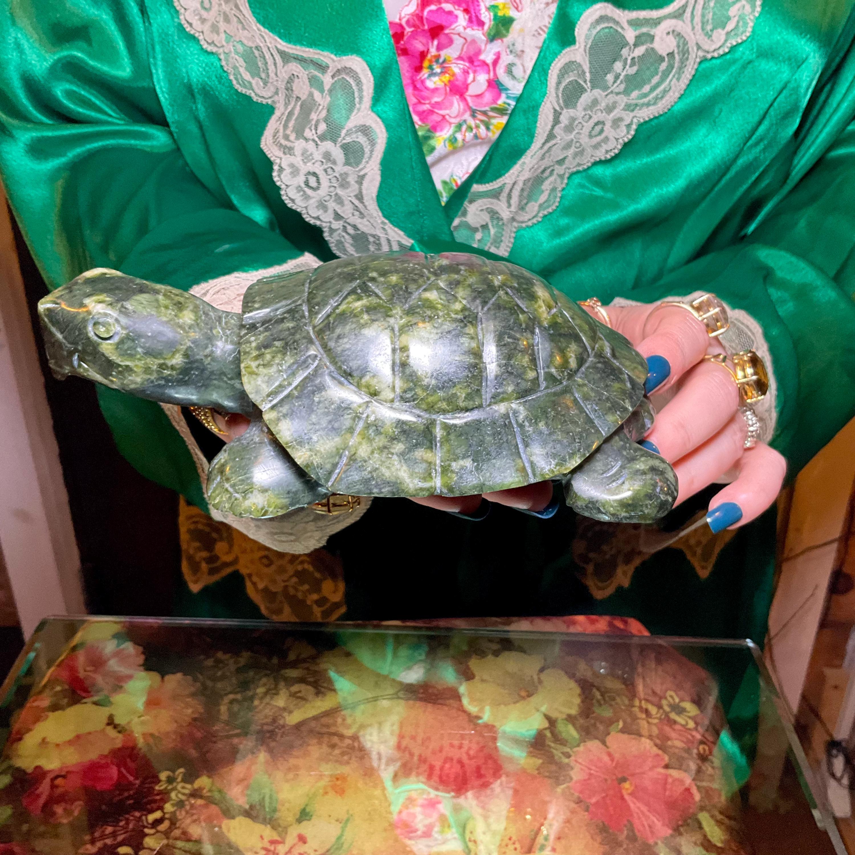 Vintage Nephrite Jade Turtle 2 Lb. 6 oz. Carving ~ 7" Long ~ Hand Carved ~ Stunning Museum Quality Polished Specimen ~Gorgeous Green Mineral