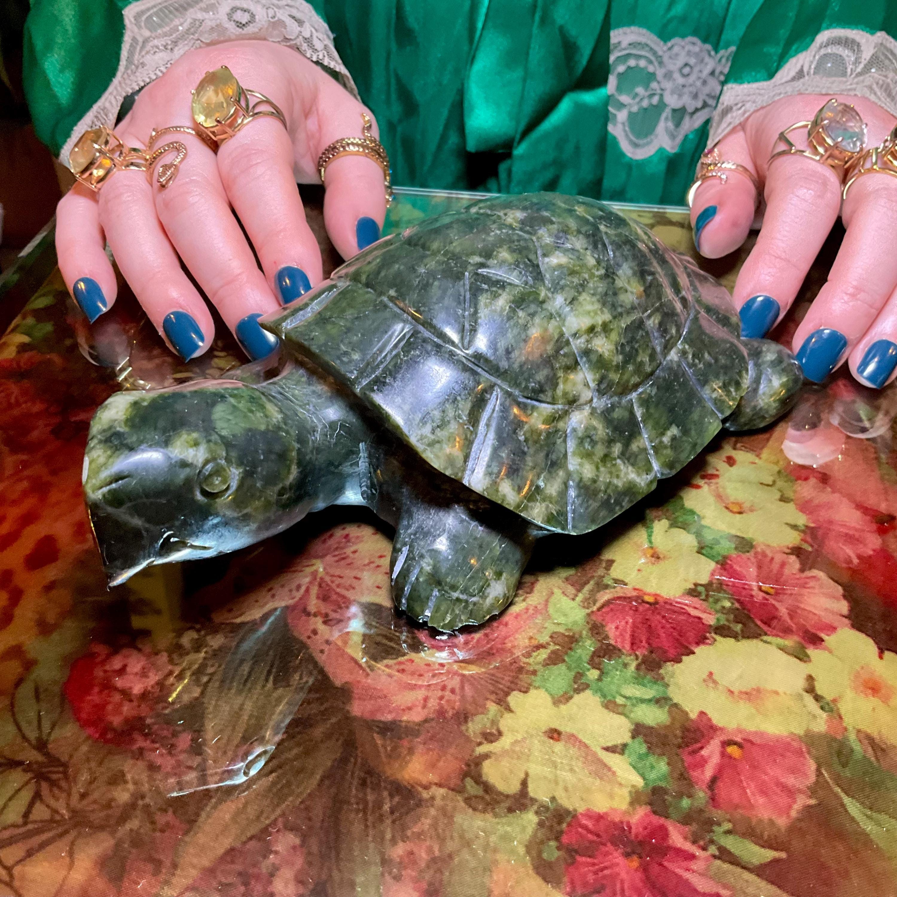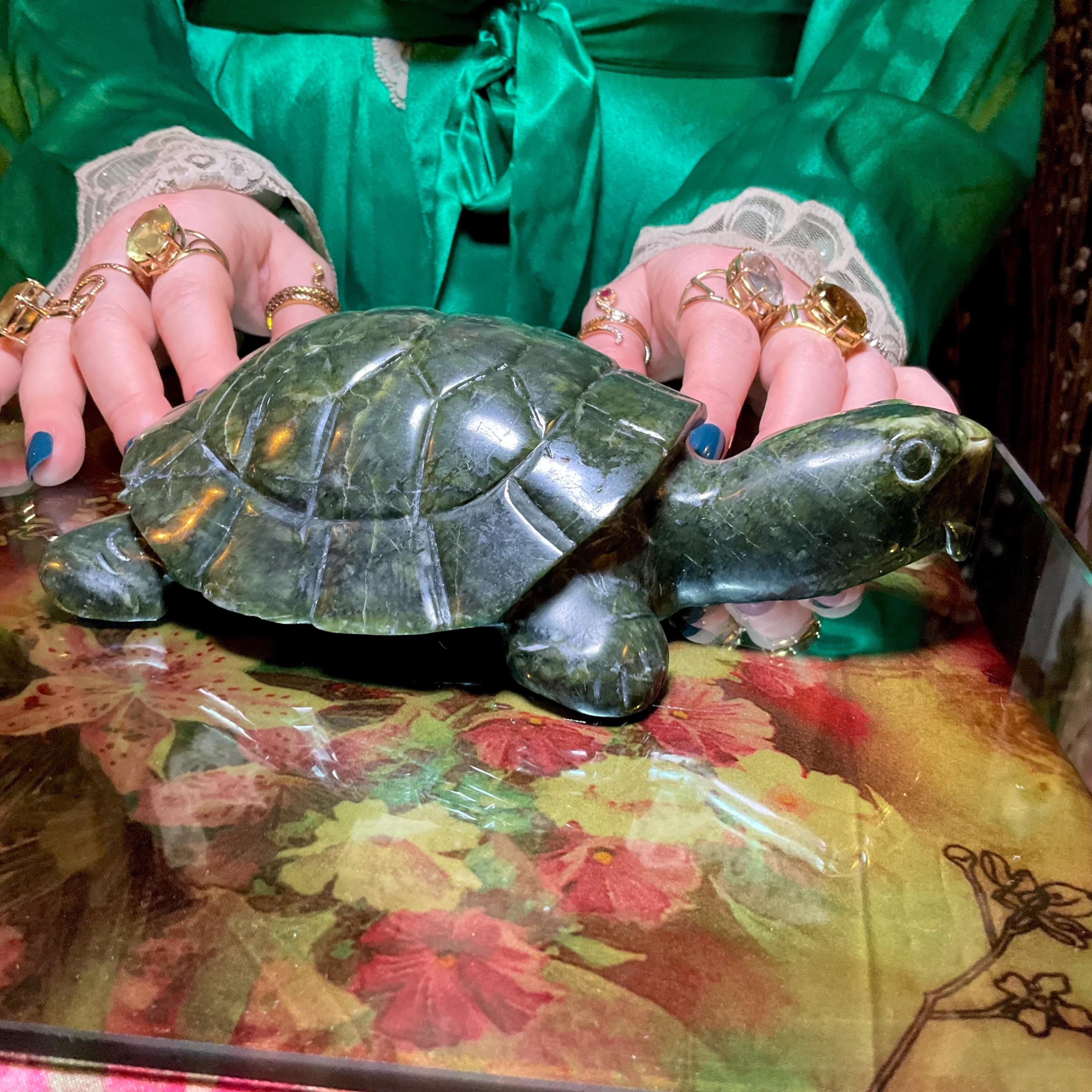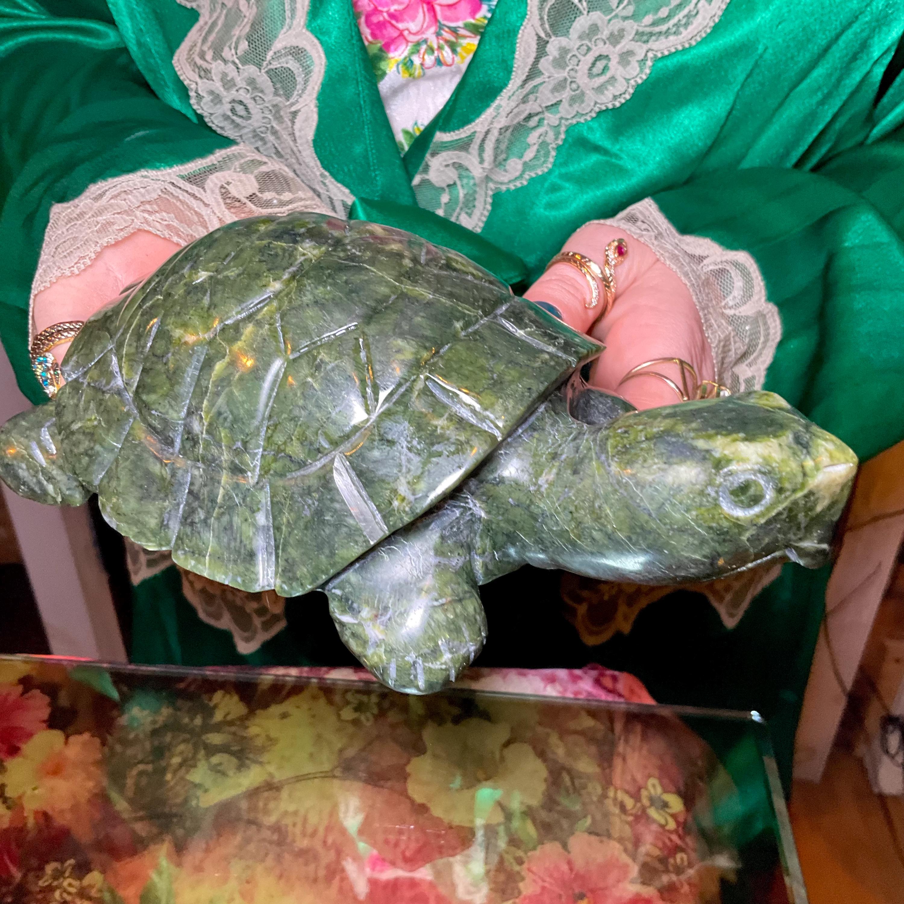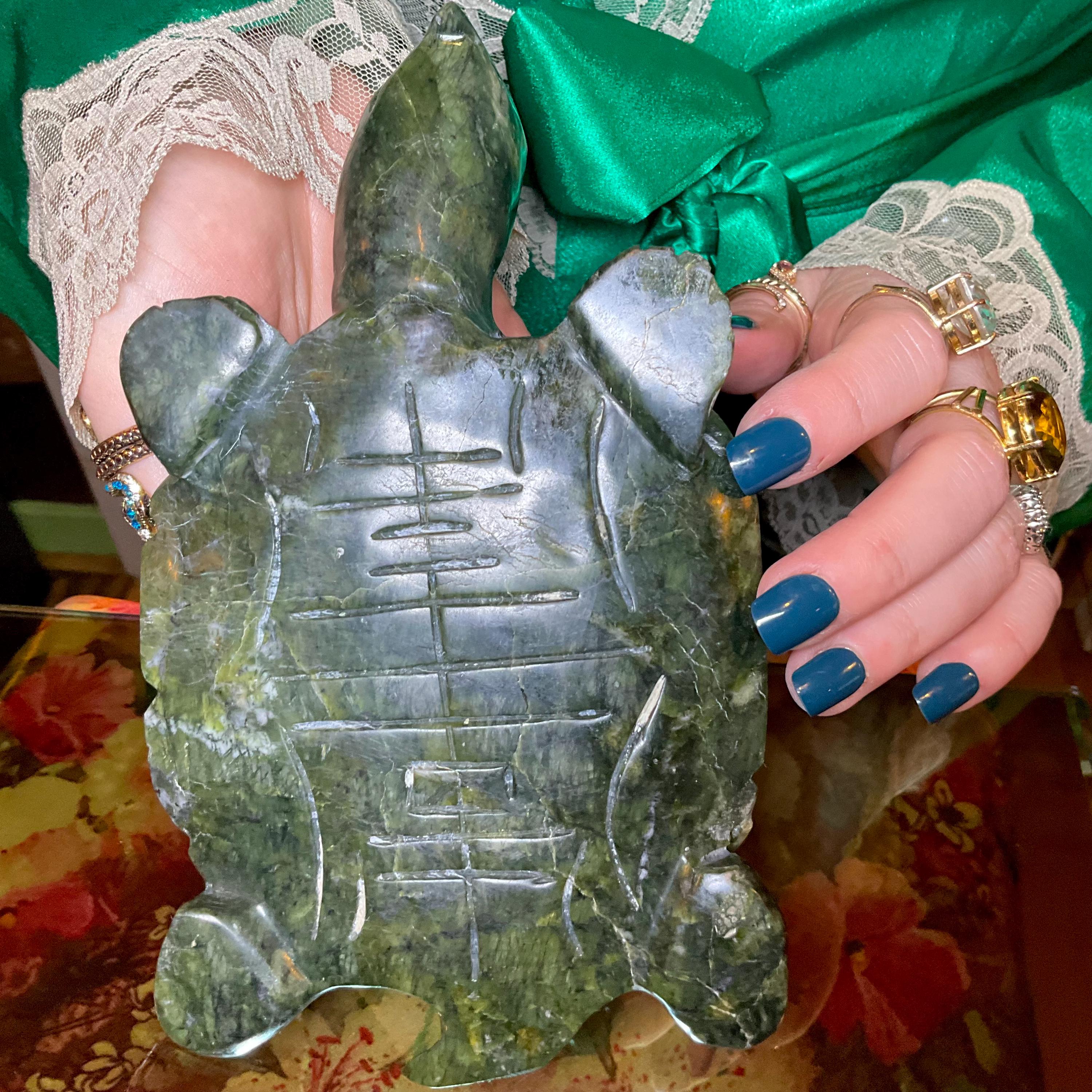 Vintage Nephrite Jade Turtle 2 Lb. 6 oz. Carving ~ 7" Long ~ Hand Carved ~ Stunning Museum Quality Polished Specimen ~Gorgeous Green Mineral