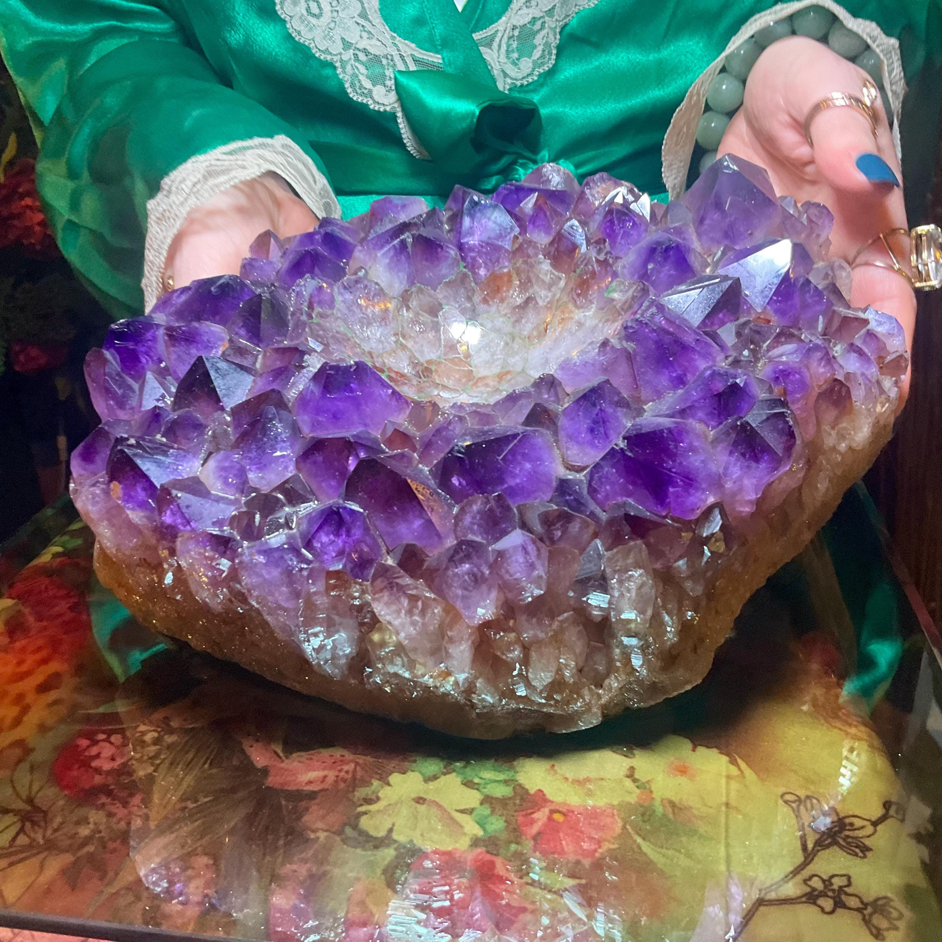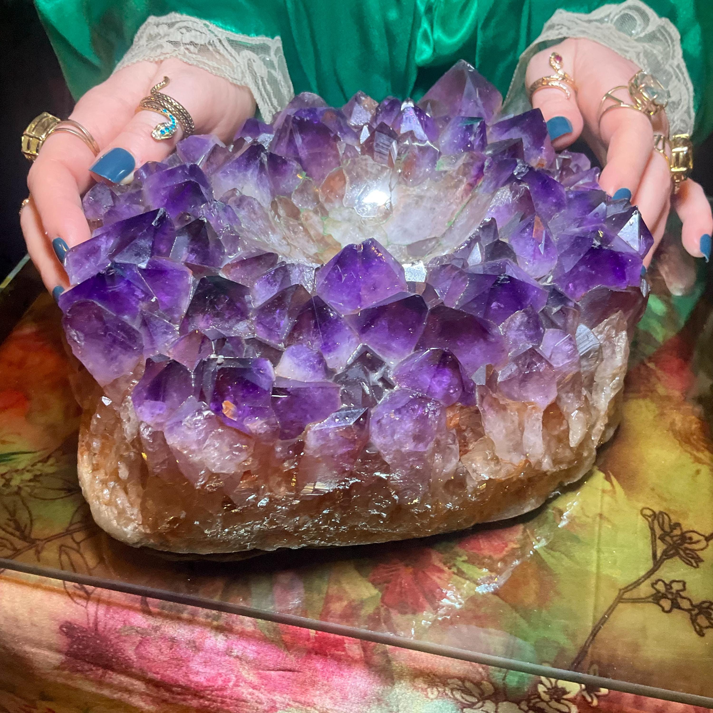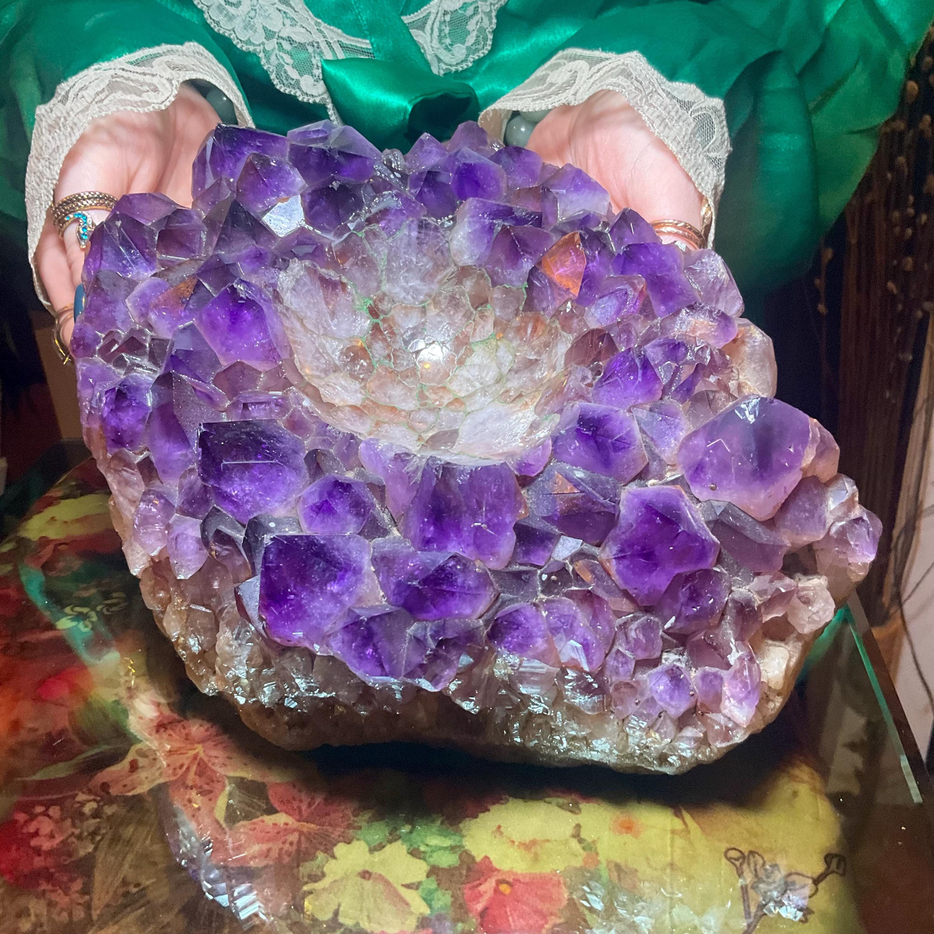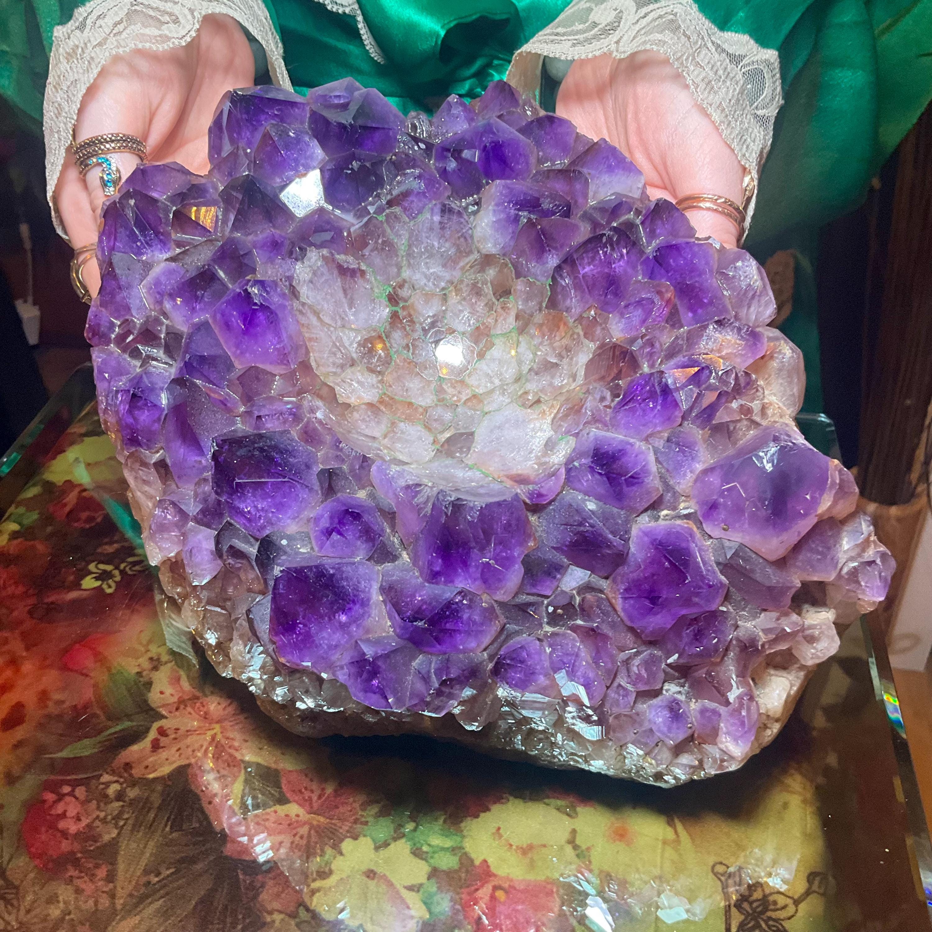 Amethyst Crystal Bowl Cluster ~ Large 10 Lb. ~ 10" Long ~ Reiki Altar Display ~ Sparkling Purple Quartz Points ~ Jewelry, Charging Dish
