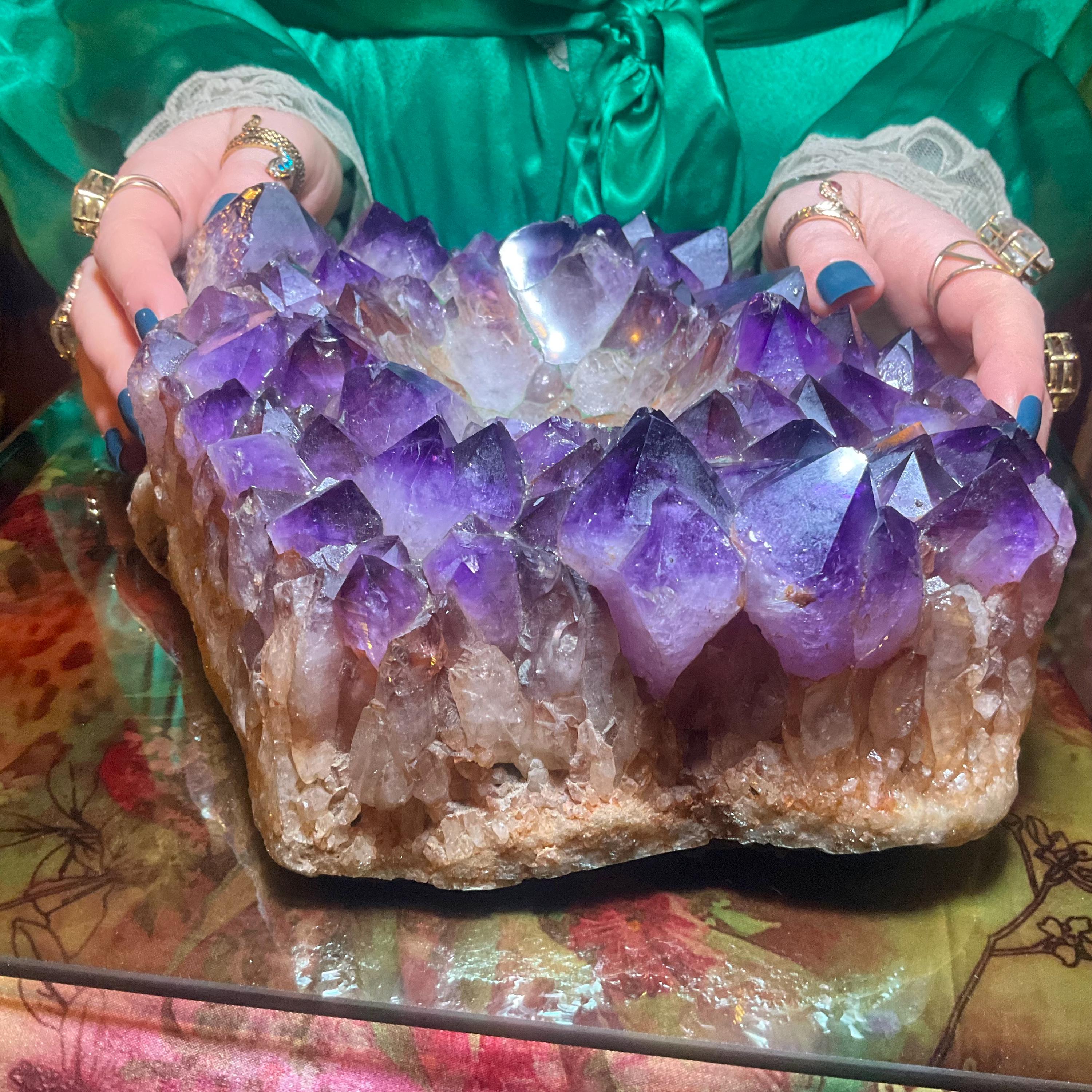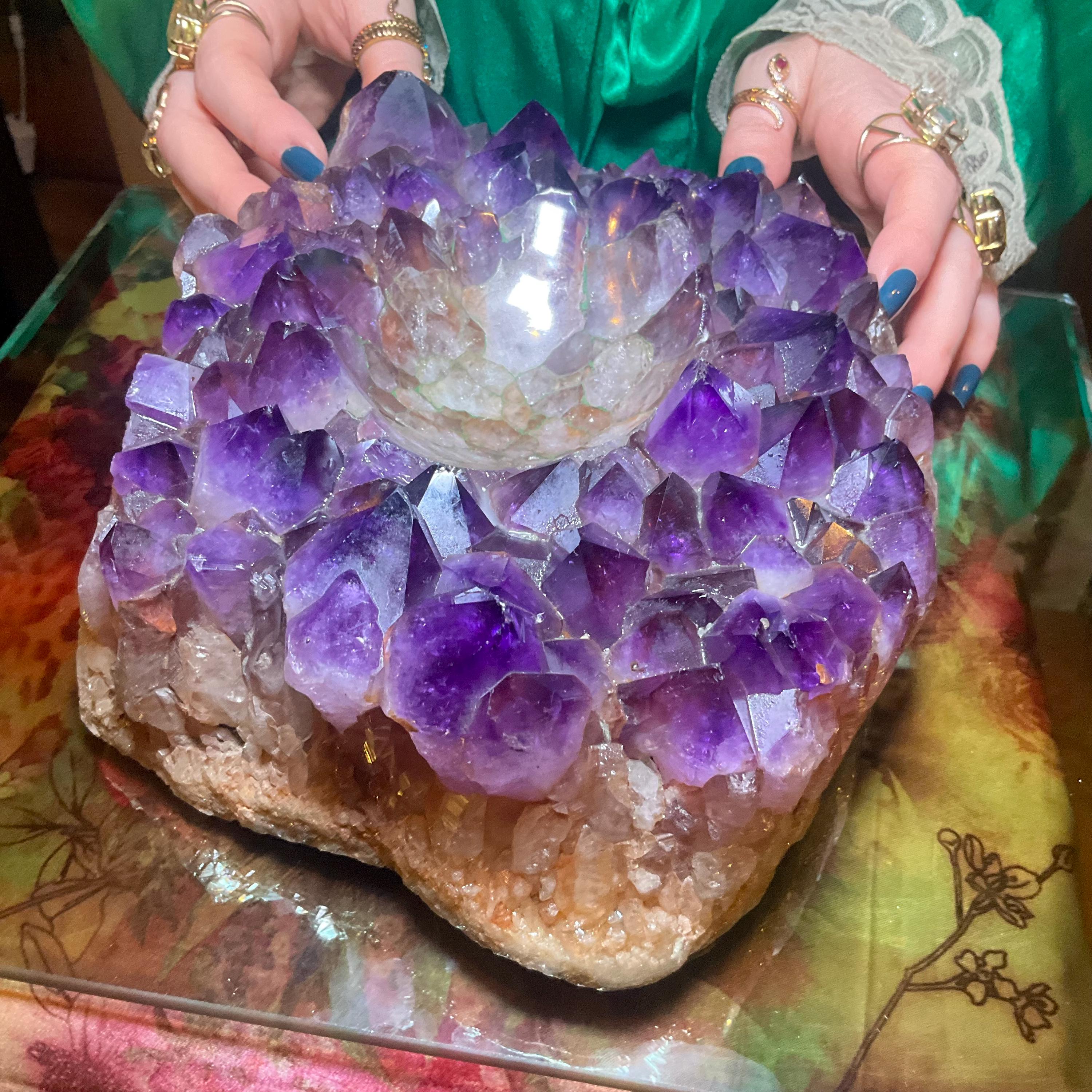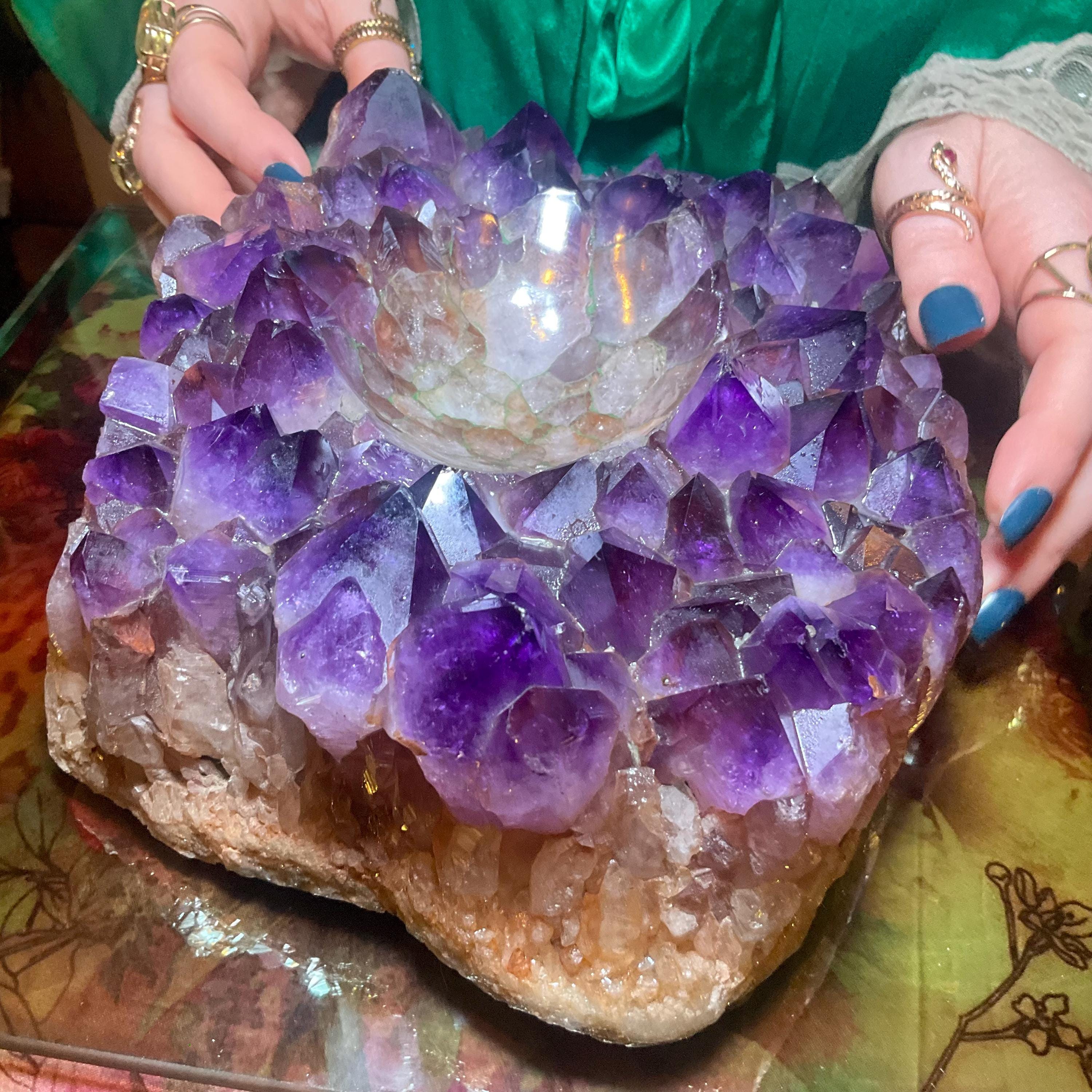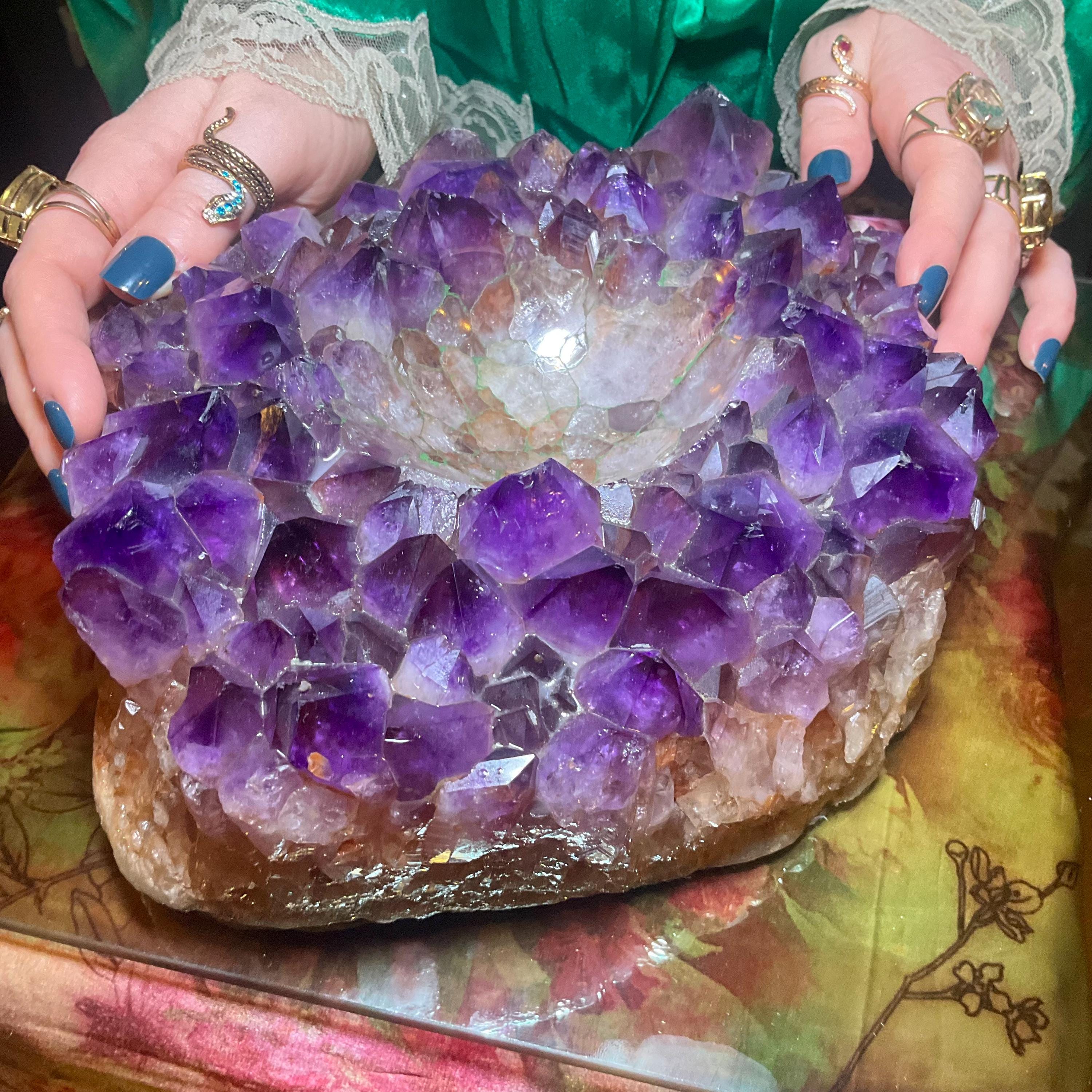 Amethyst Crystal Bowl Cluster ~ Large 10 Lb. ~ 10" Long ~ Reiki Altar Display ~ Sparkling Purple Quartz Points ~ Jewelry, Charging Dish