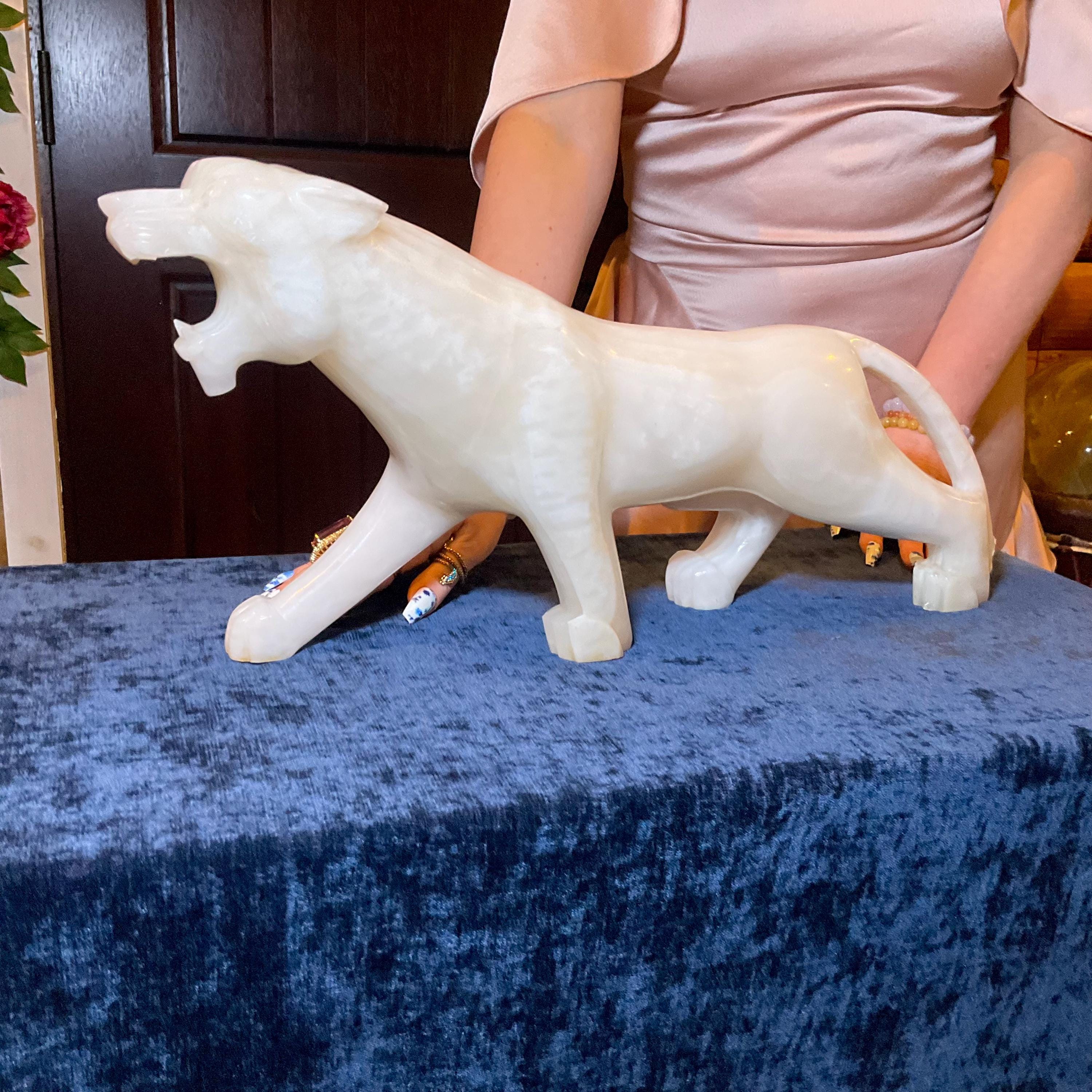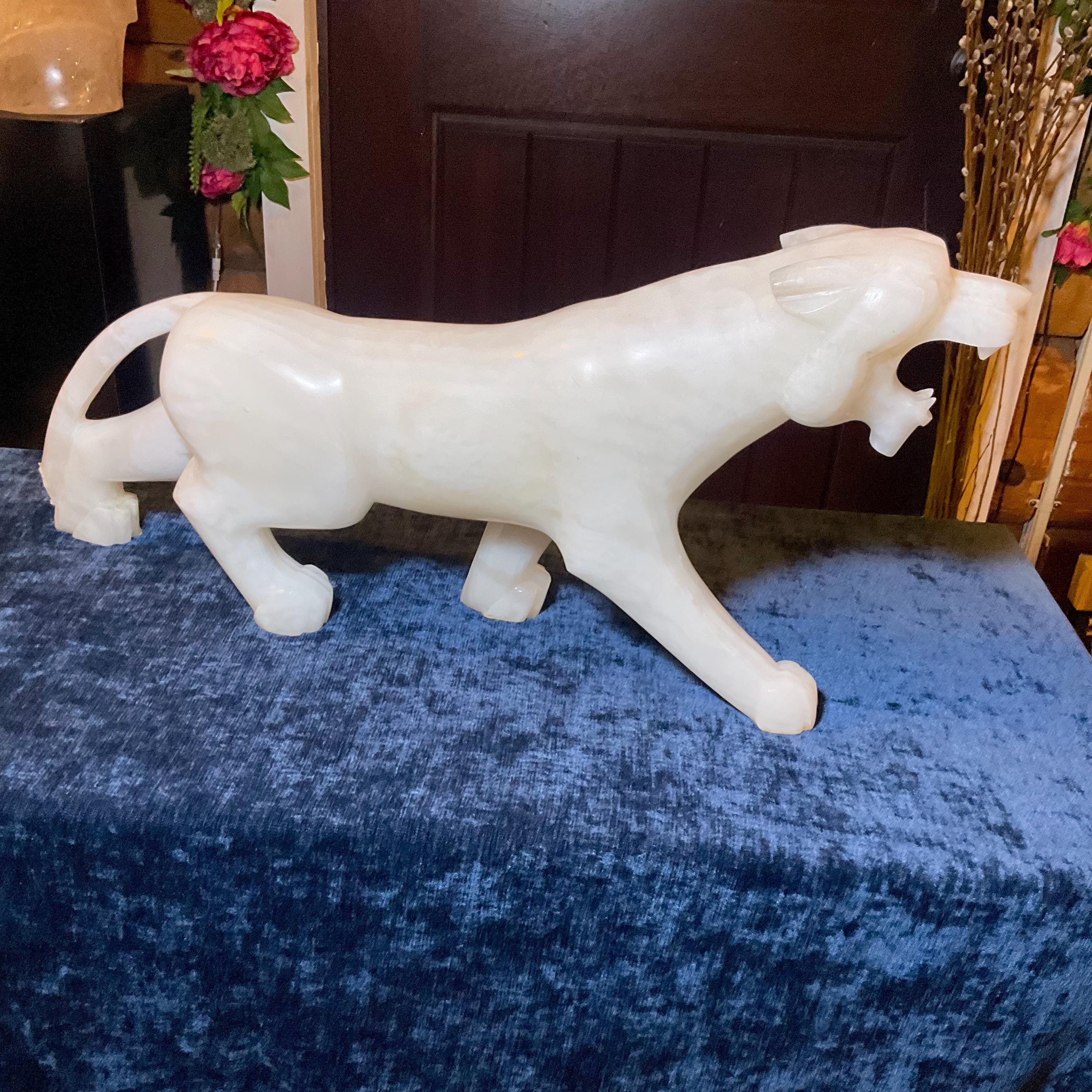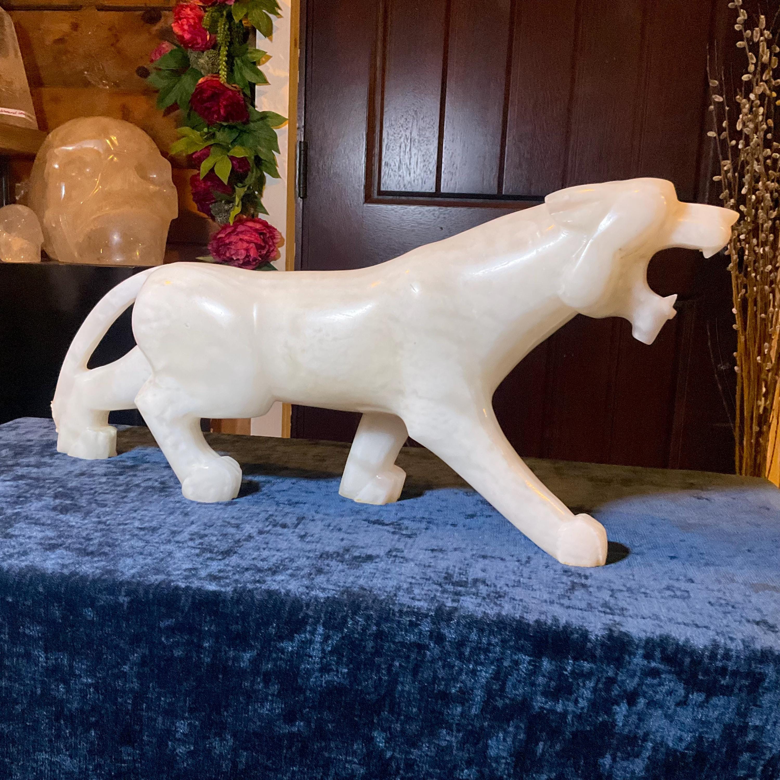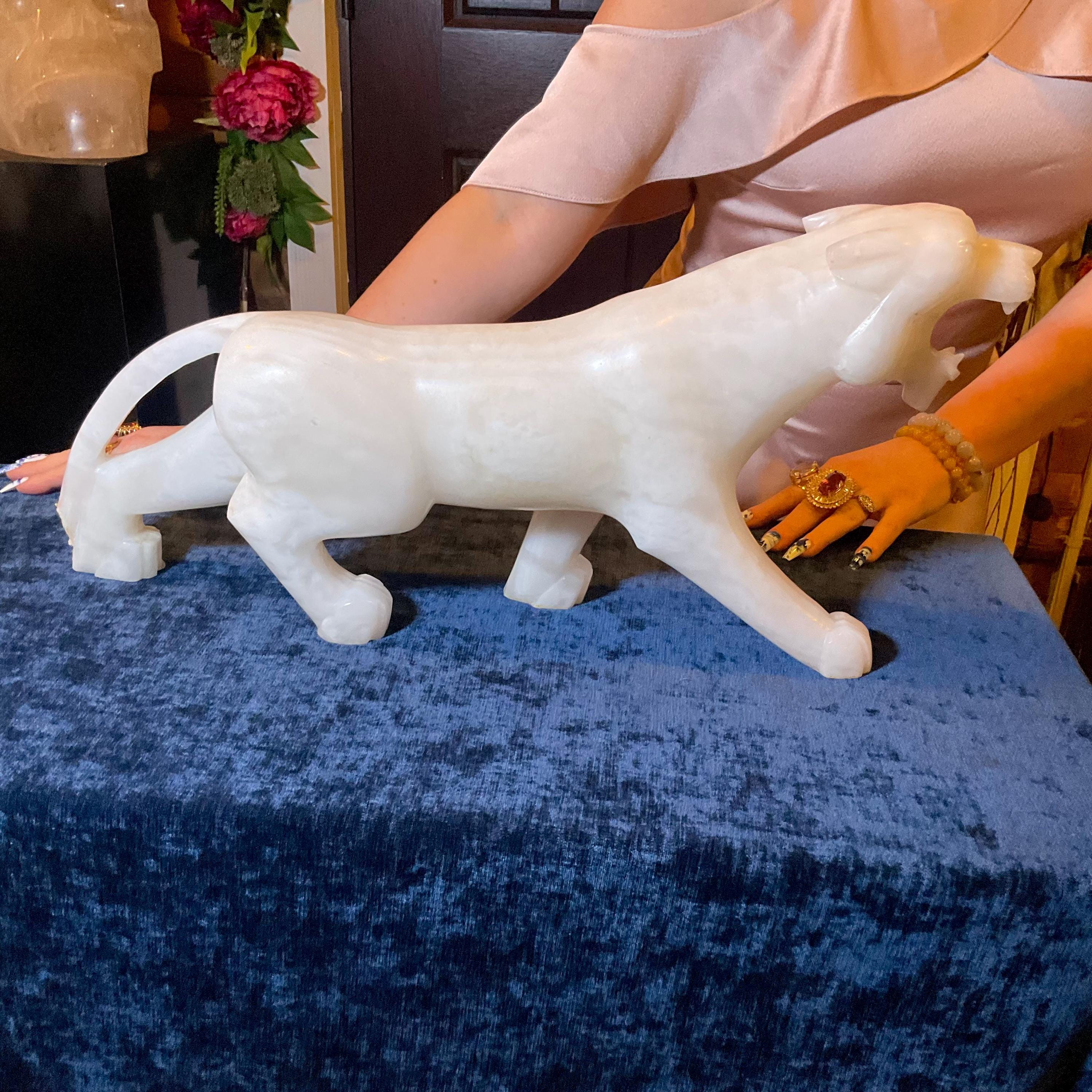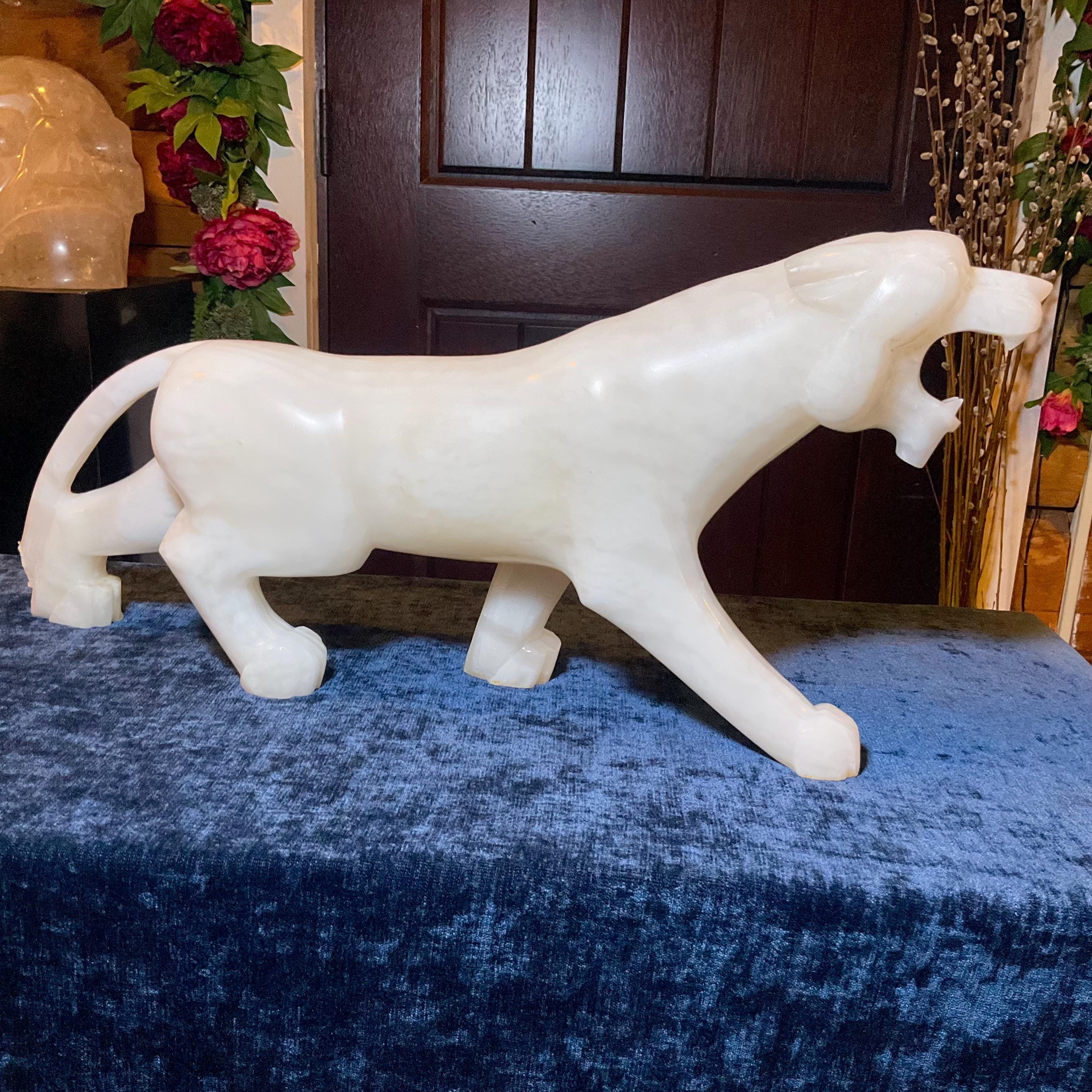 This is a one-of-a-kind carved White Onyx panther.