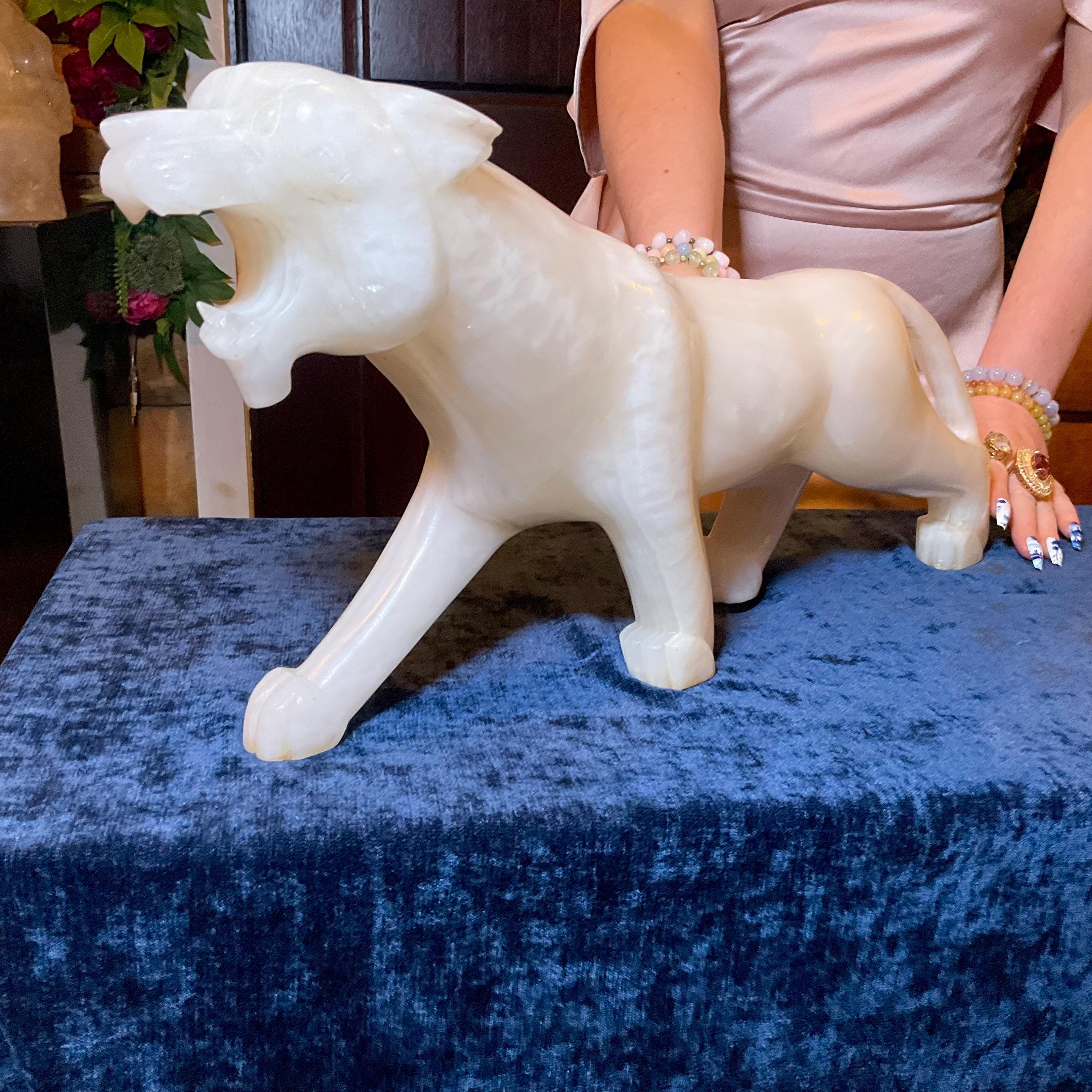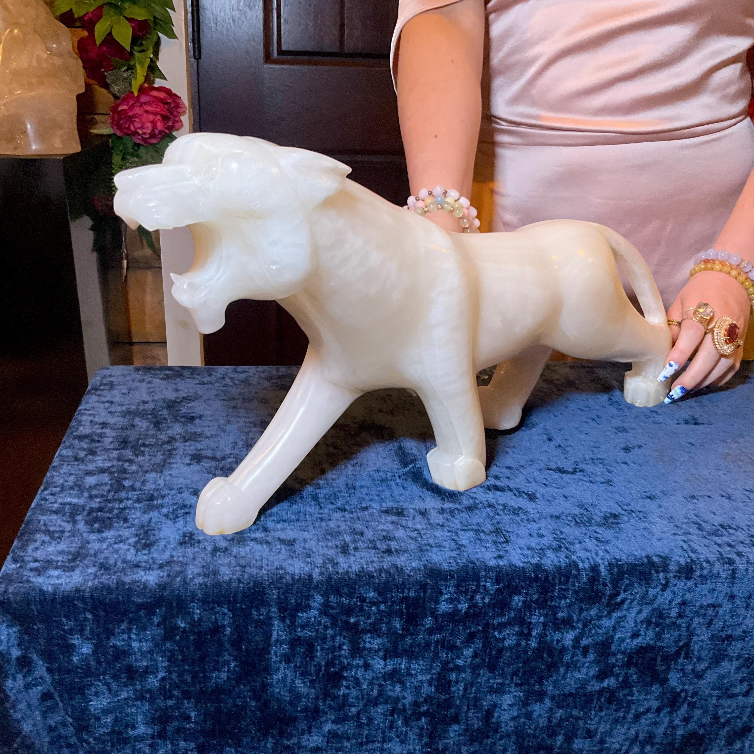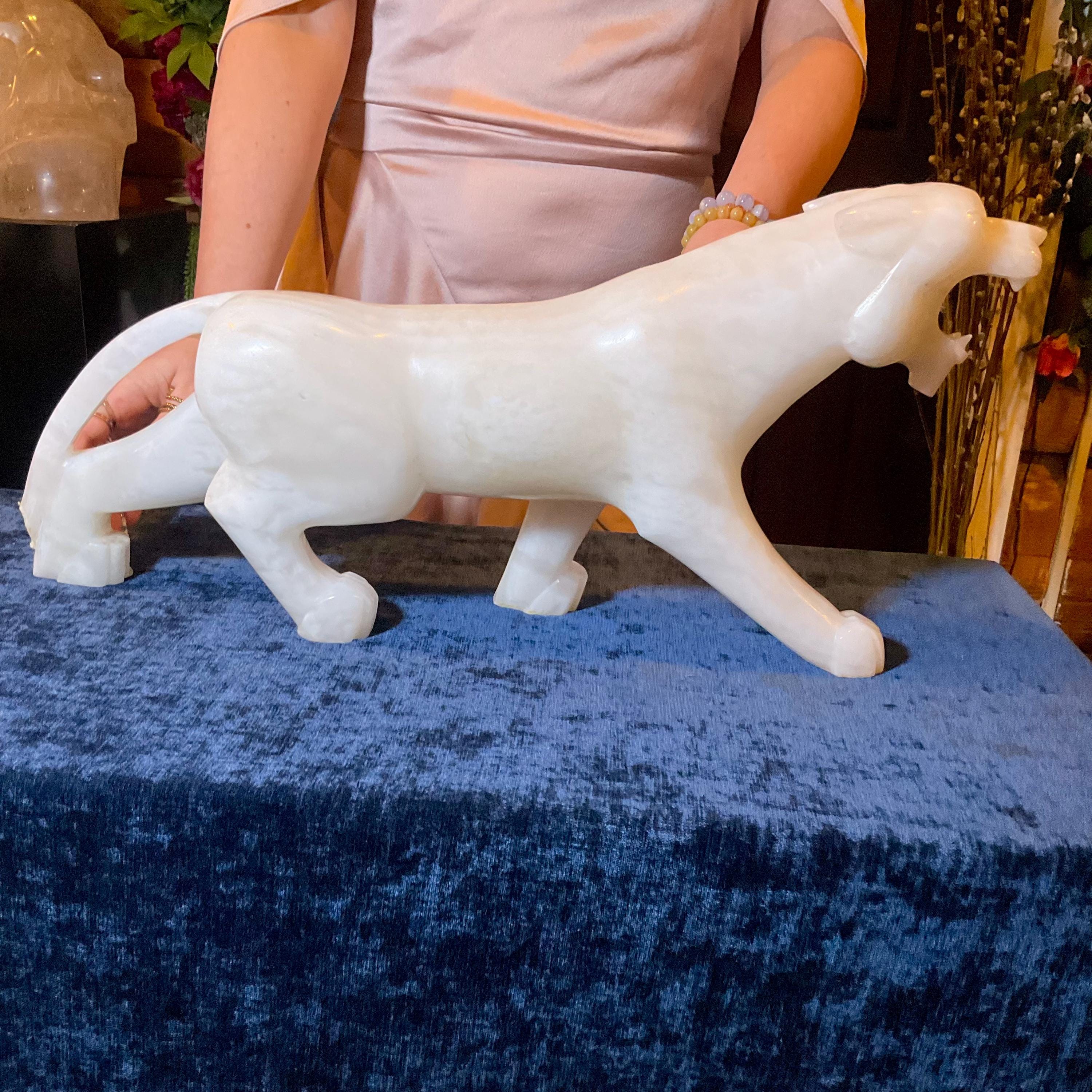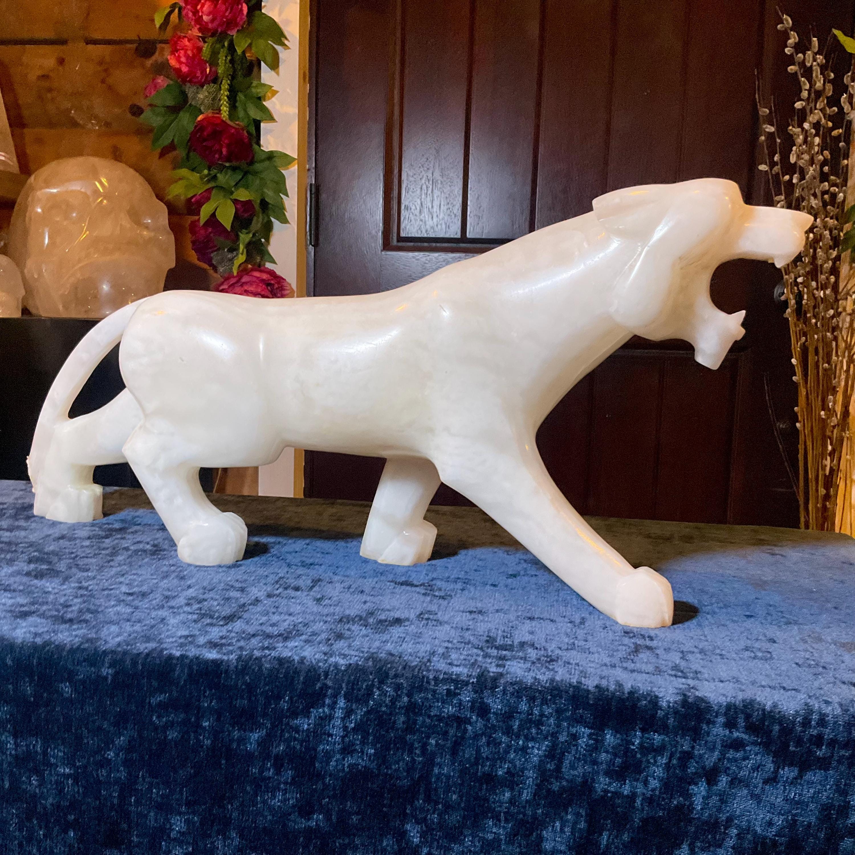 This is a one-of-a-kind carved White Onyx panther.