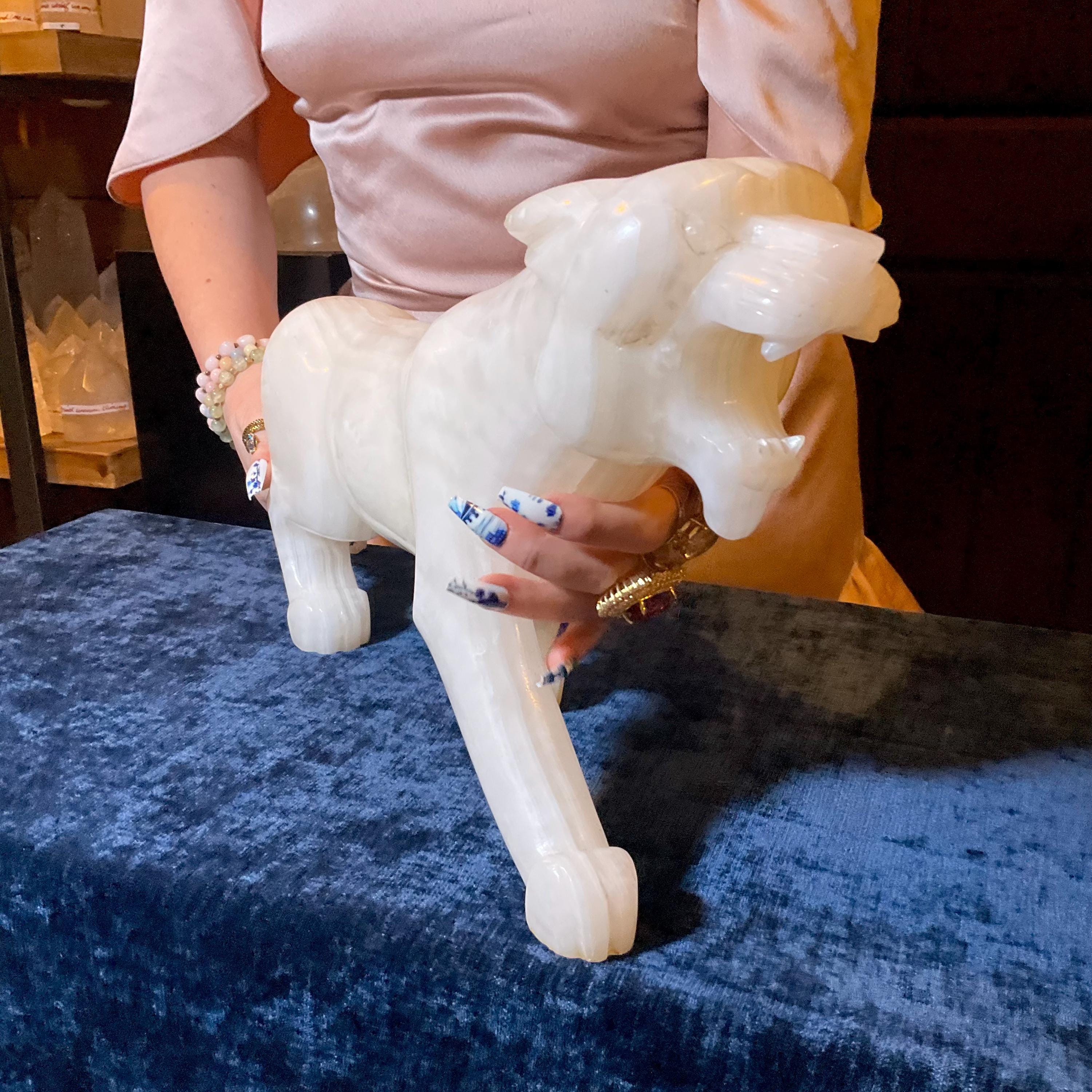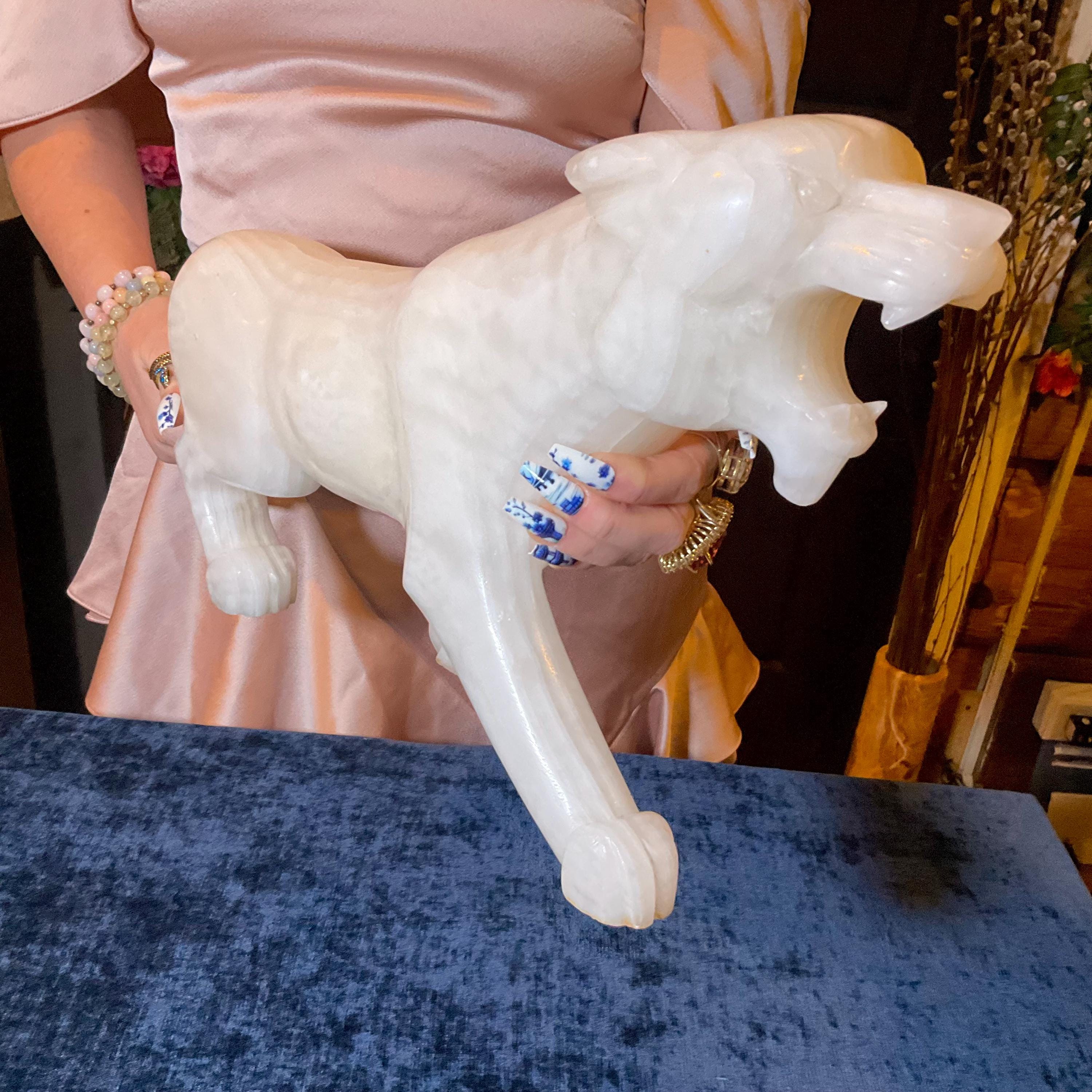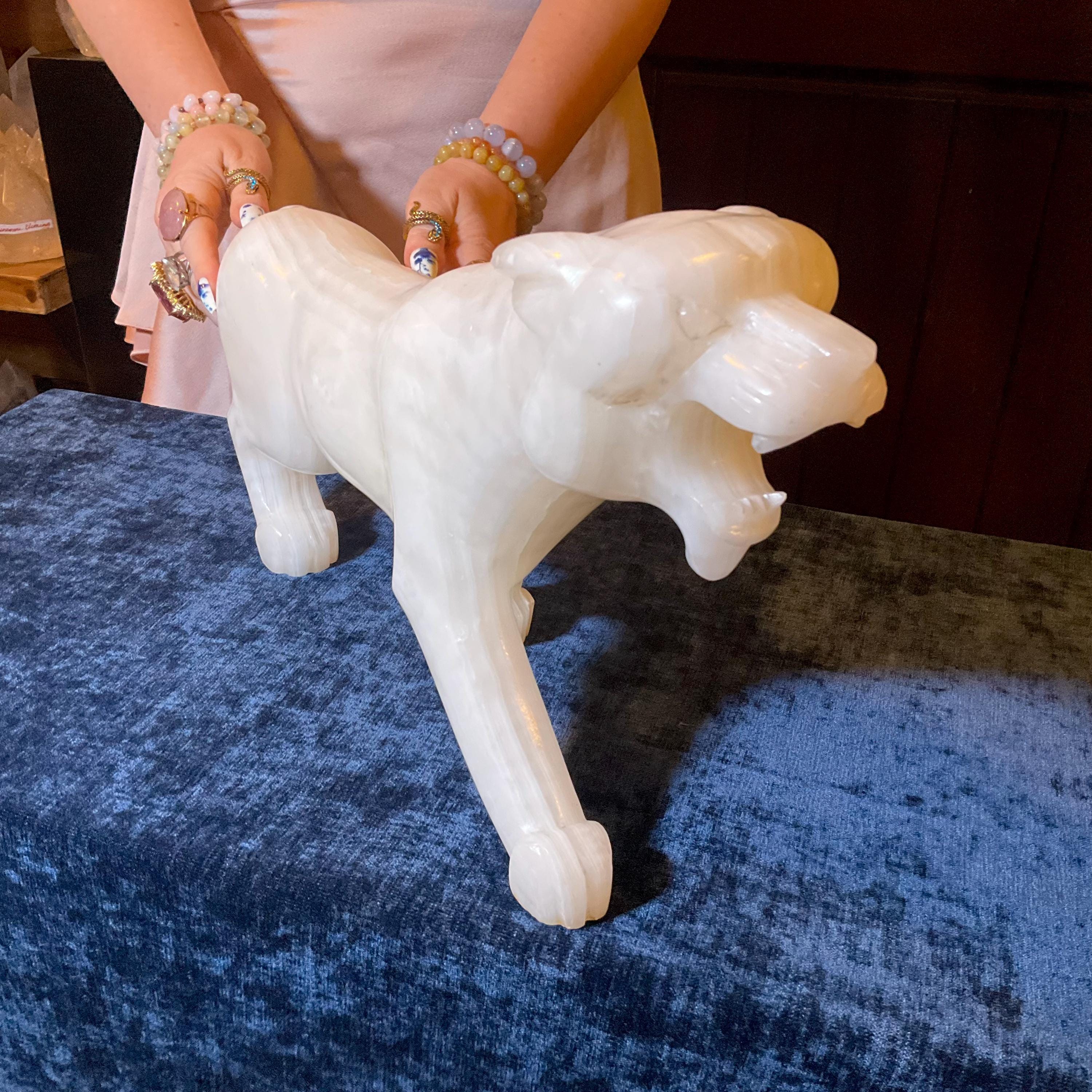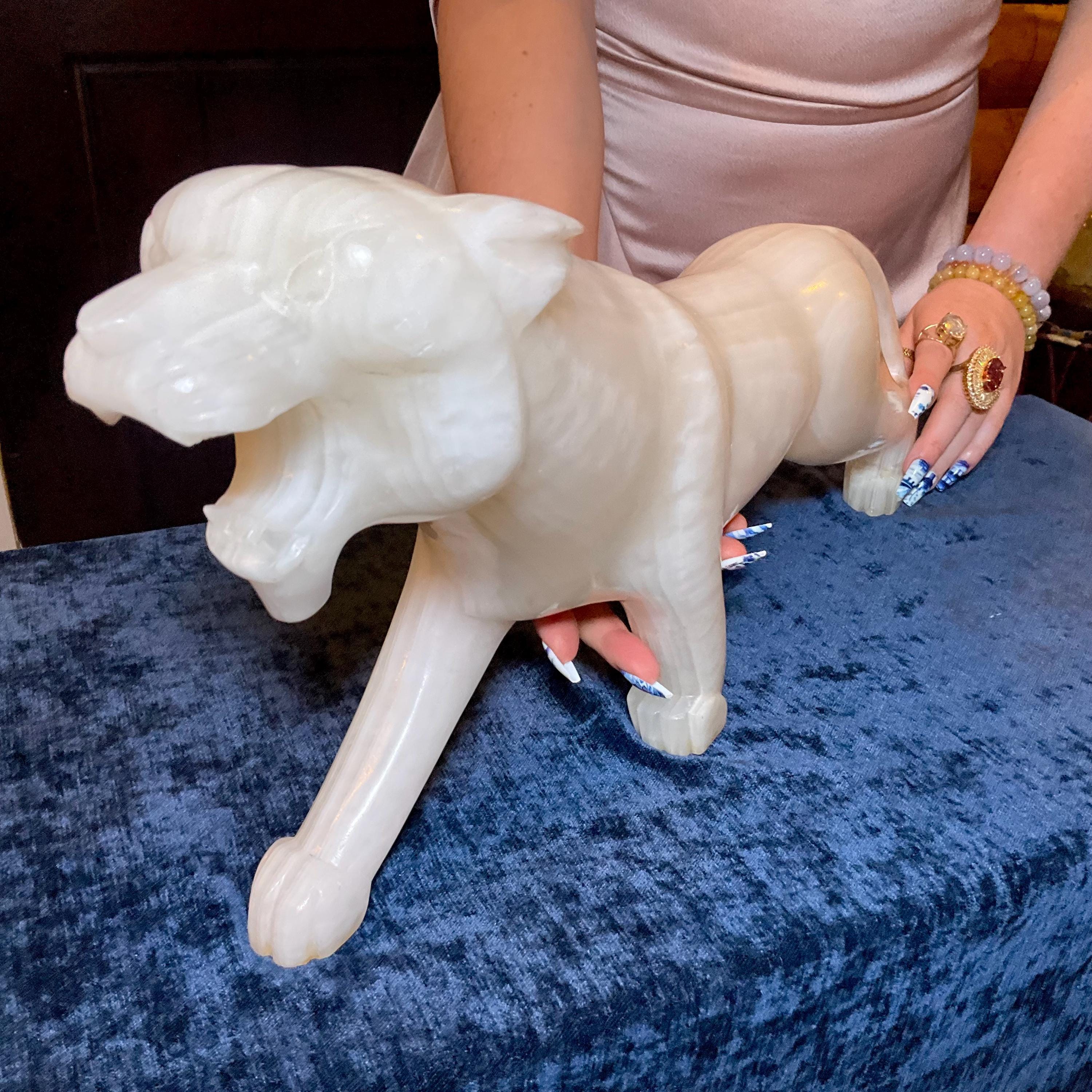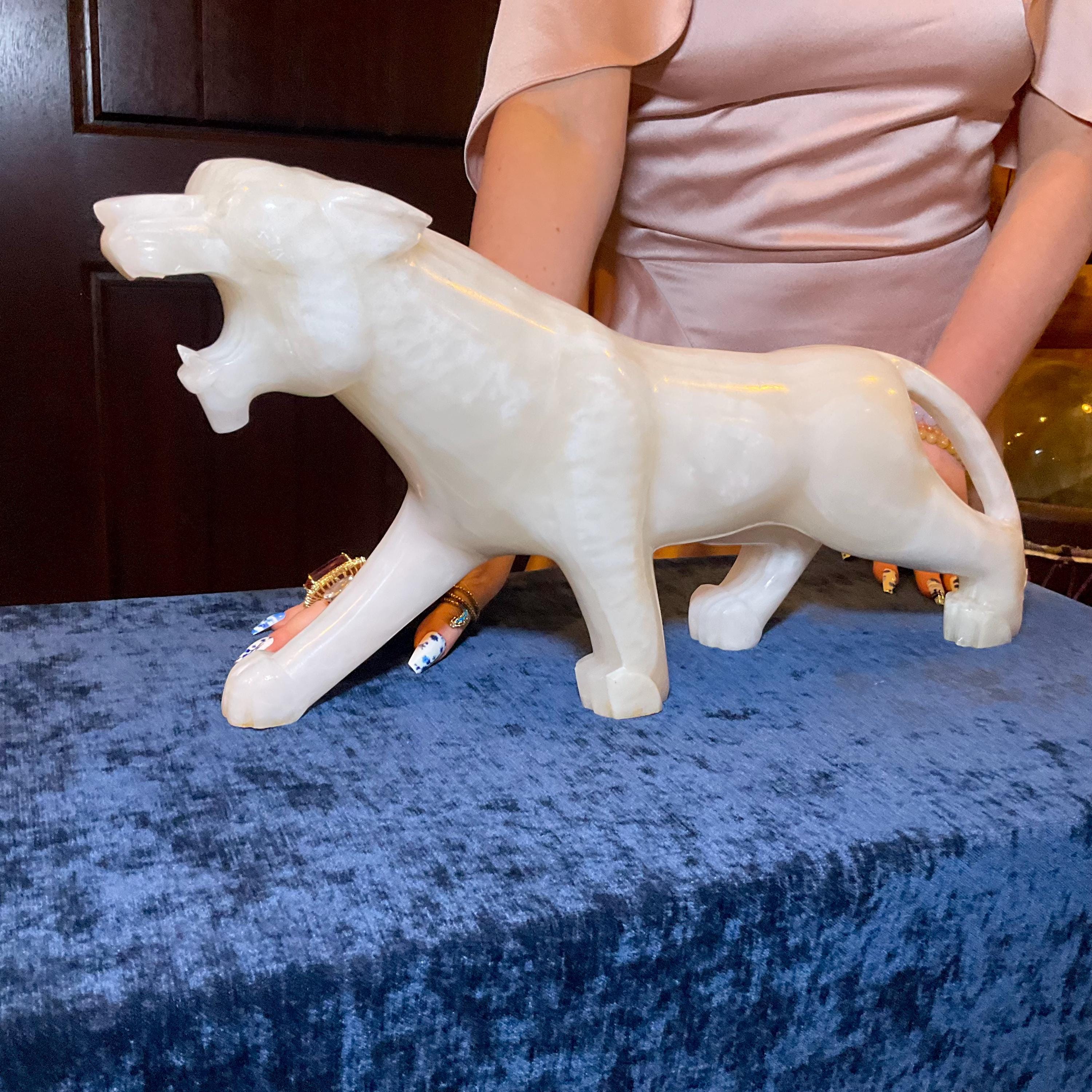 This is a one-of-a-kind carved White Onyx panther.