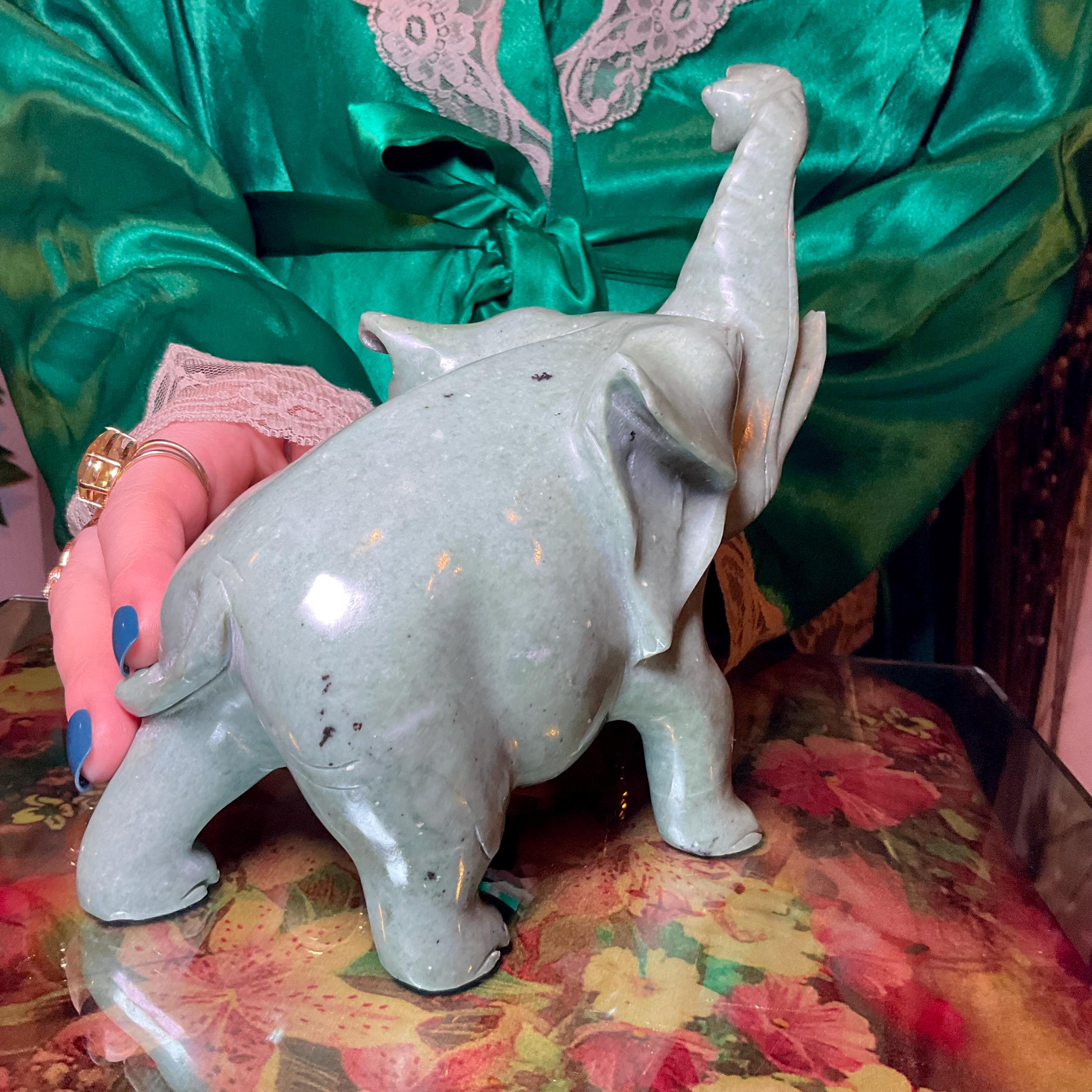 What makes this Green Aventurine elephant so special is age, patina, and its vintage deco free form style.