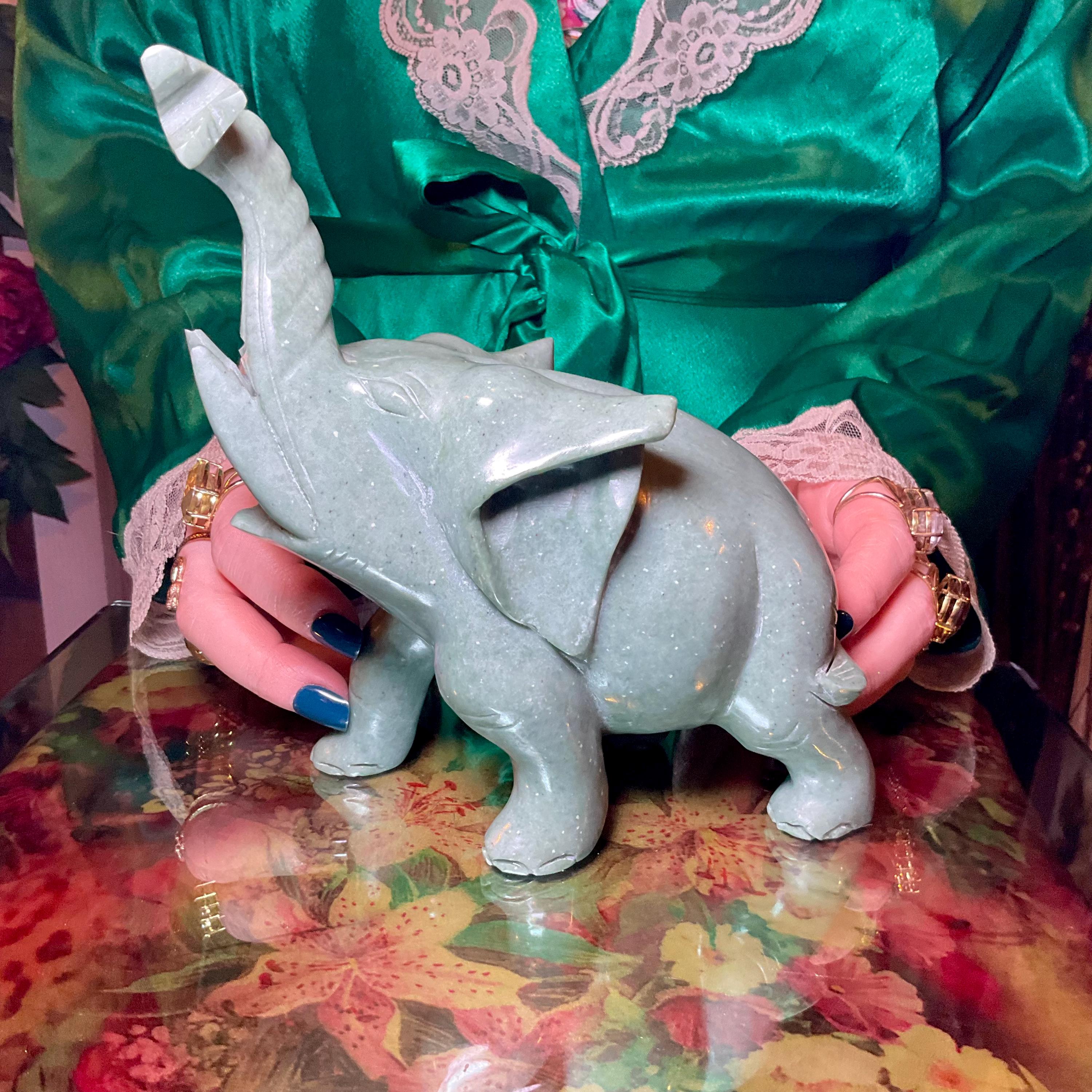 If you love vintage Green Aventurine expertly hand carved, then this adorable Crystal Elephant is for you.