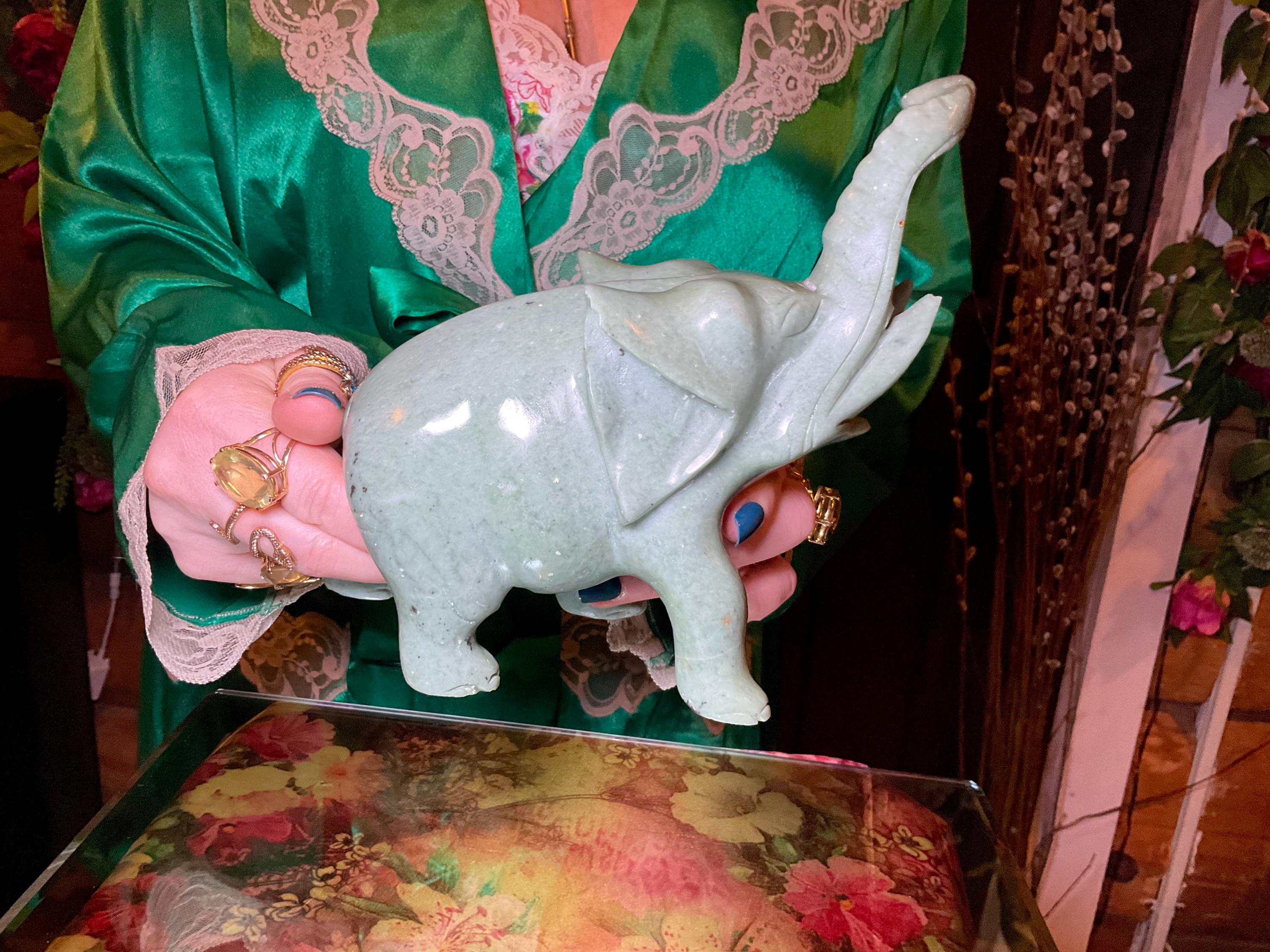 Green Aventurine Crystal Elephant ~ 3 Lb. 3 oz. ~ 6" Long ~ Vintage Hand Carved Spirit Animal Totem