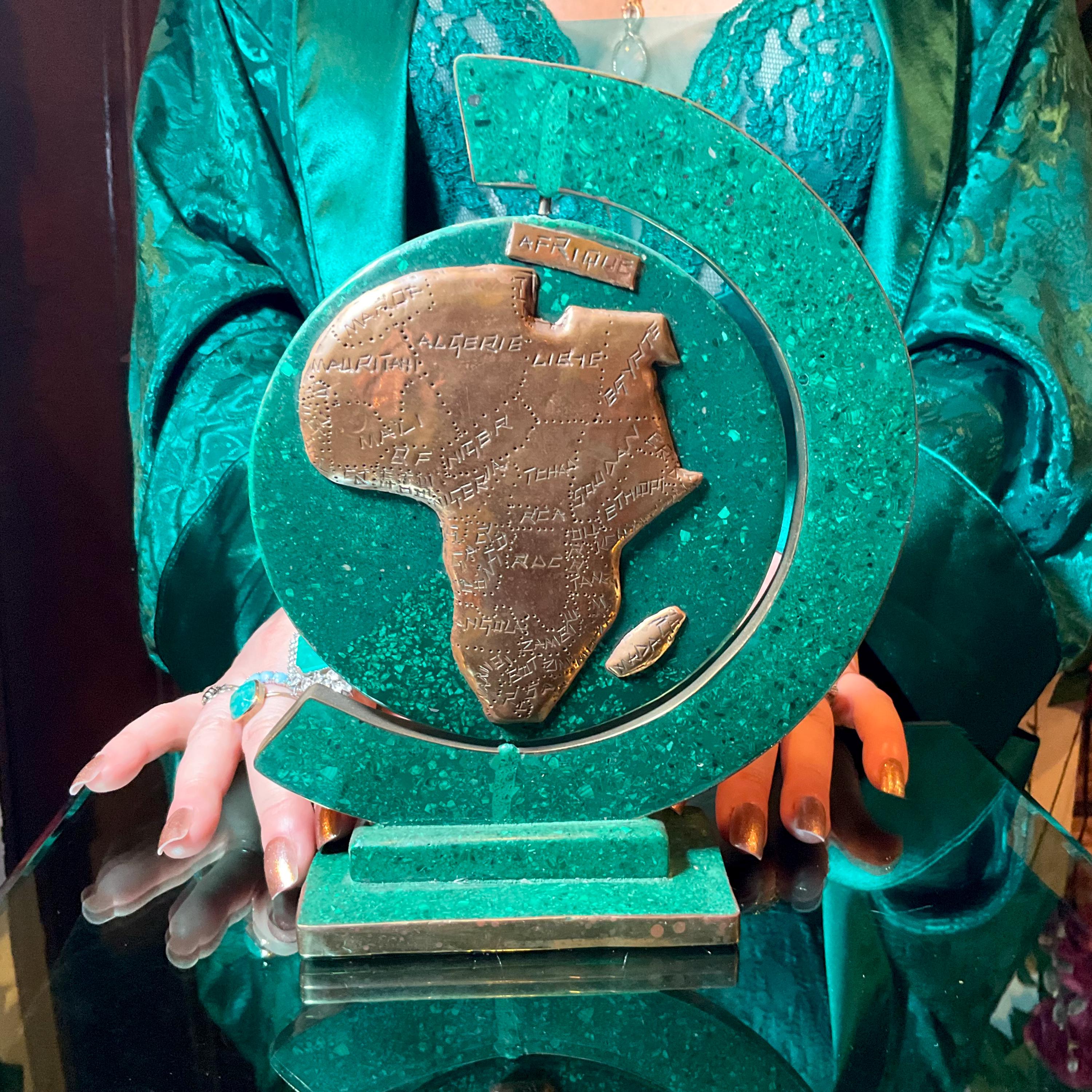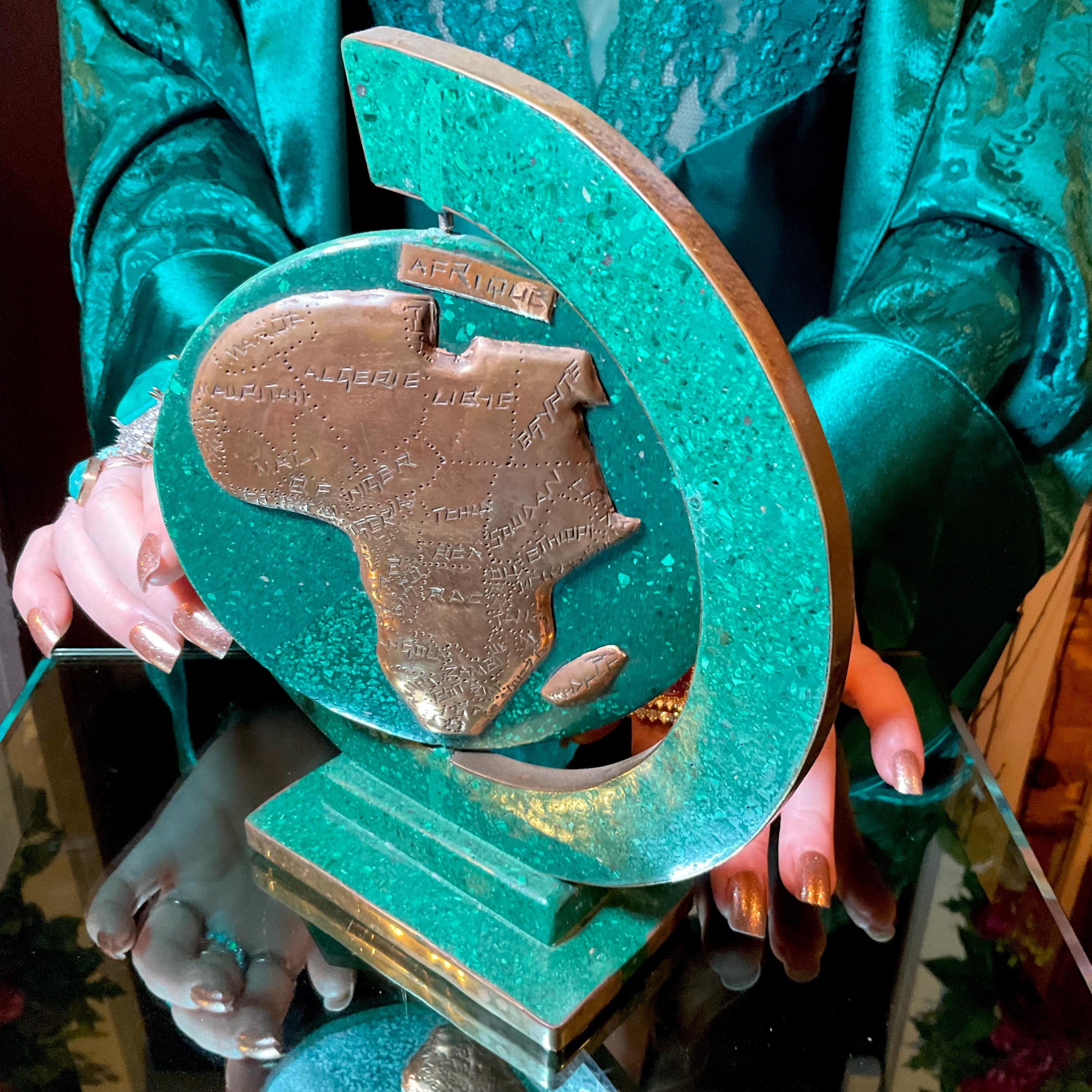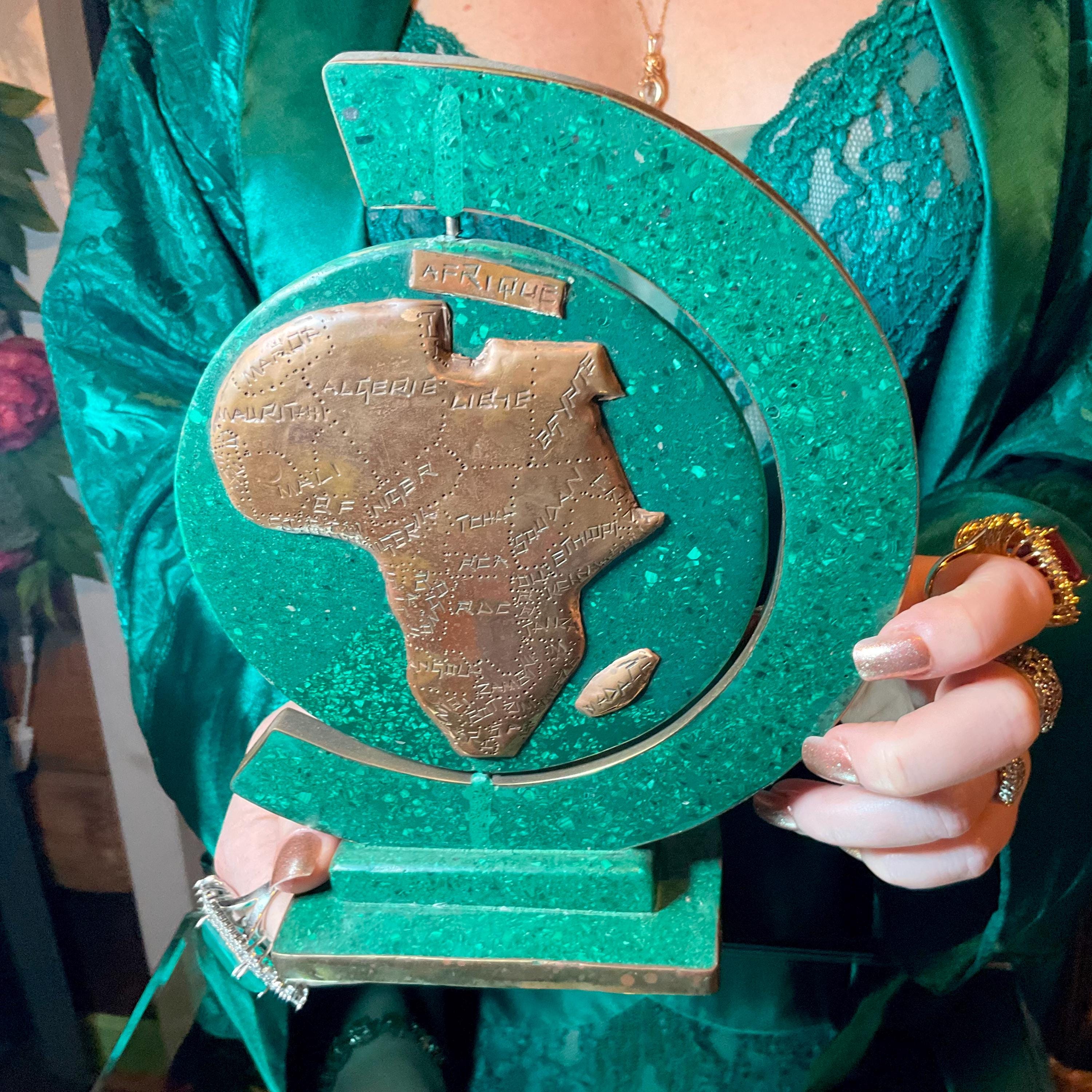 This is a one-of-a-kind carved Malachite & Copper Map of Africa.
