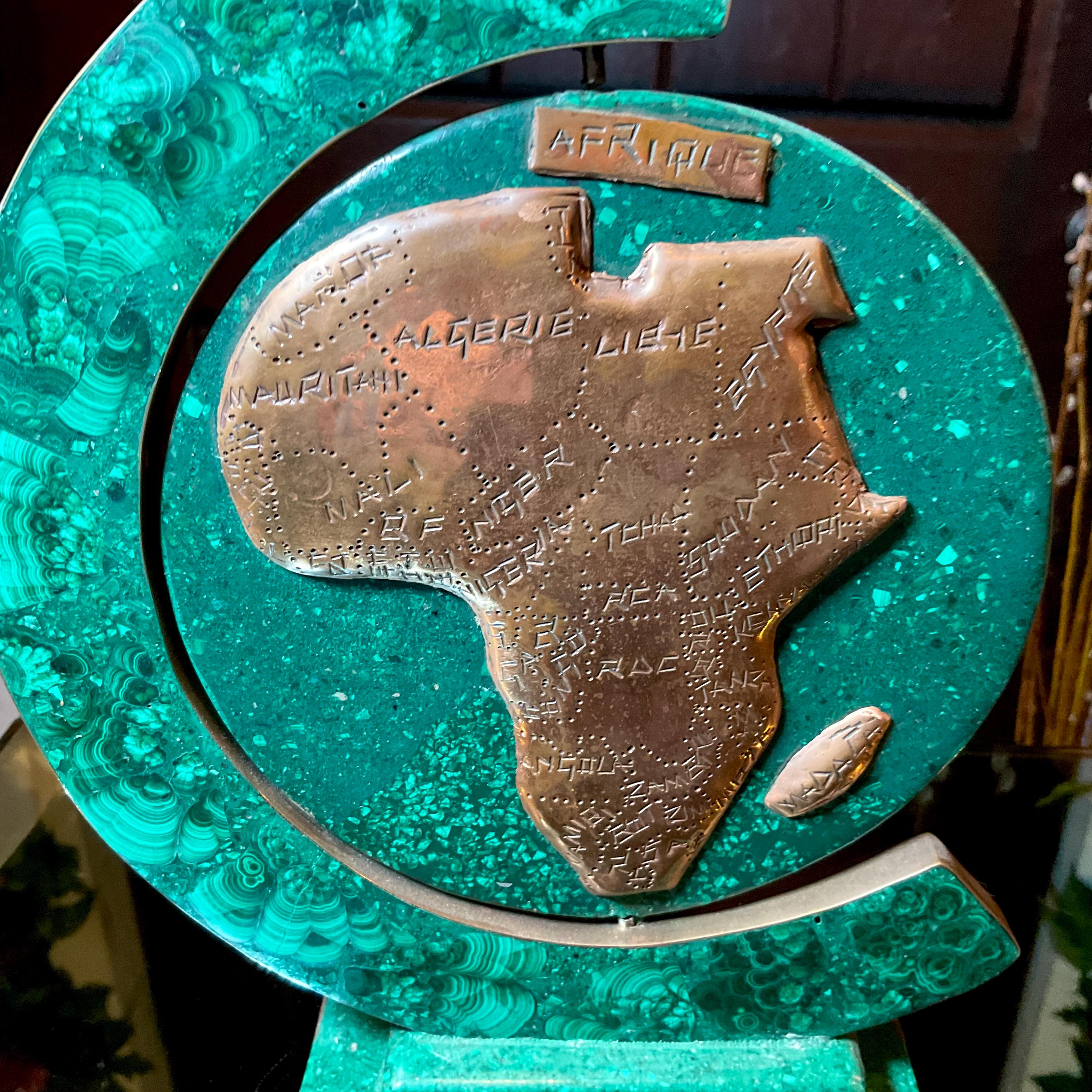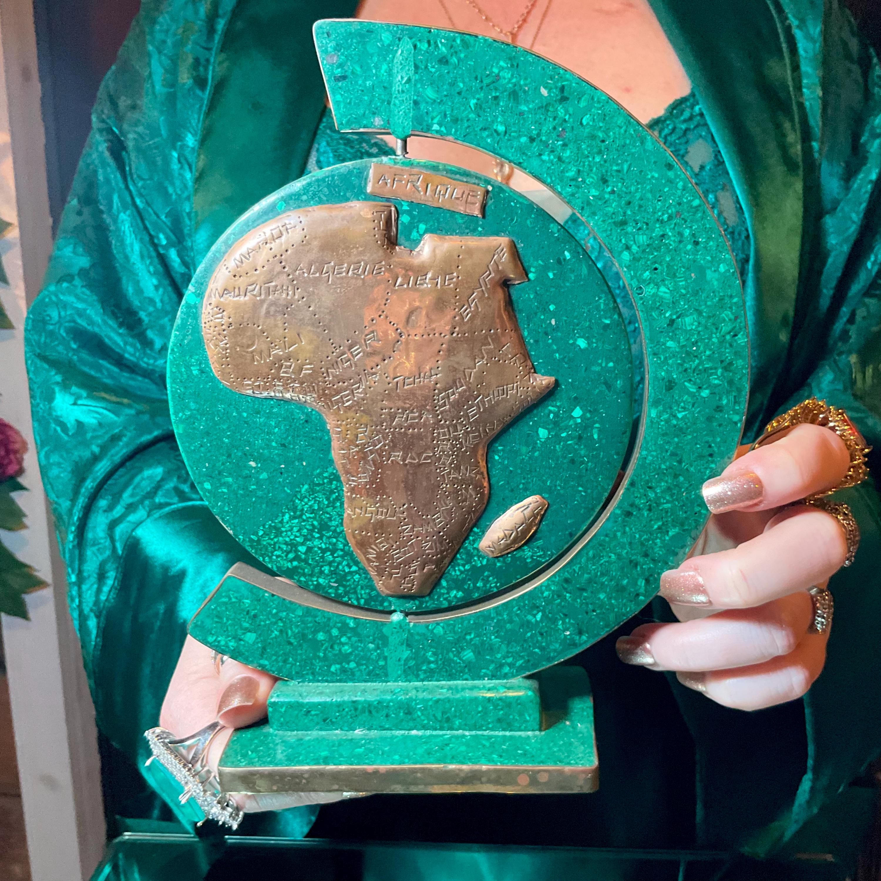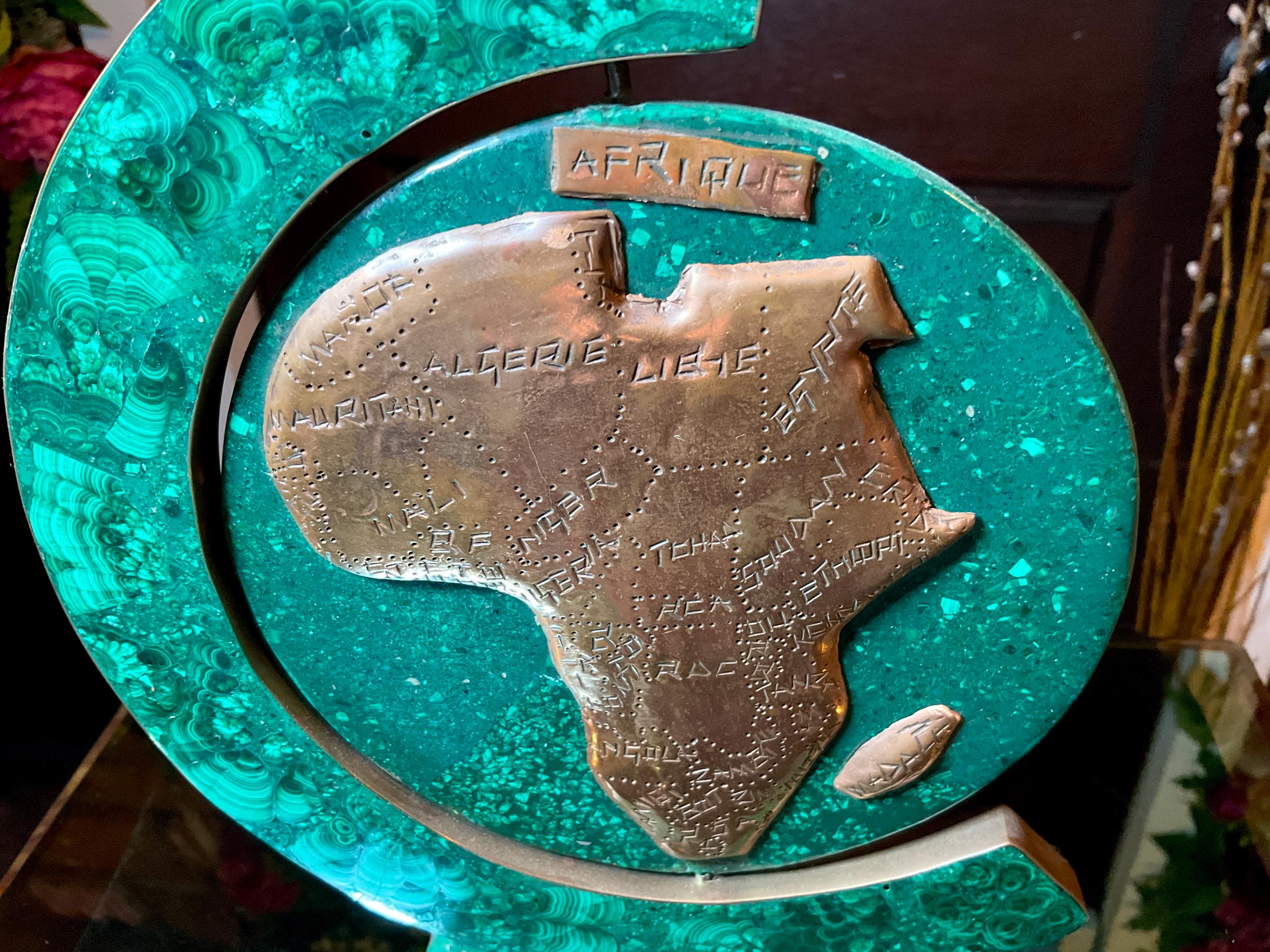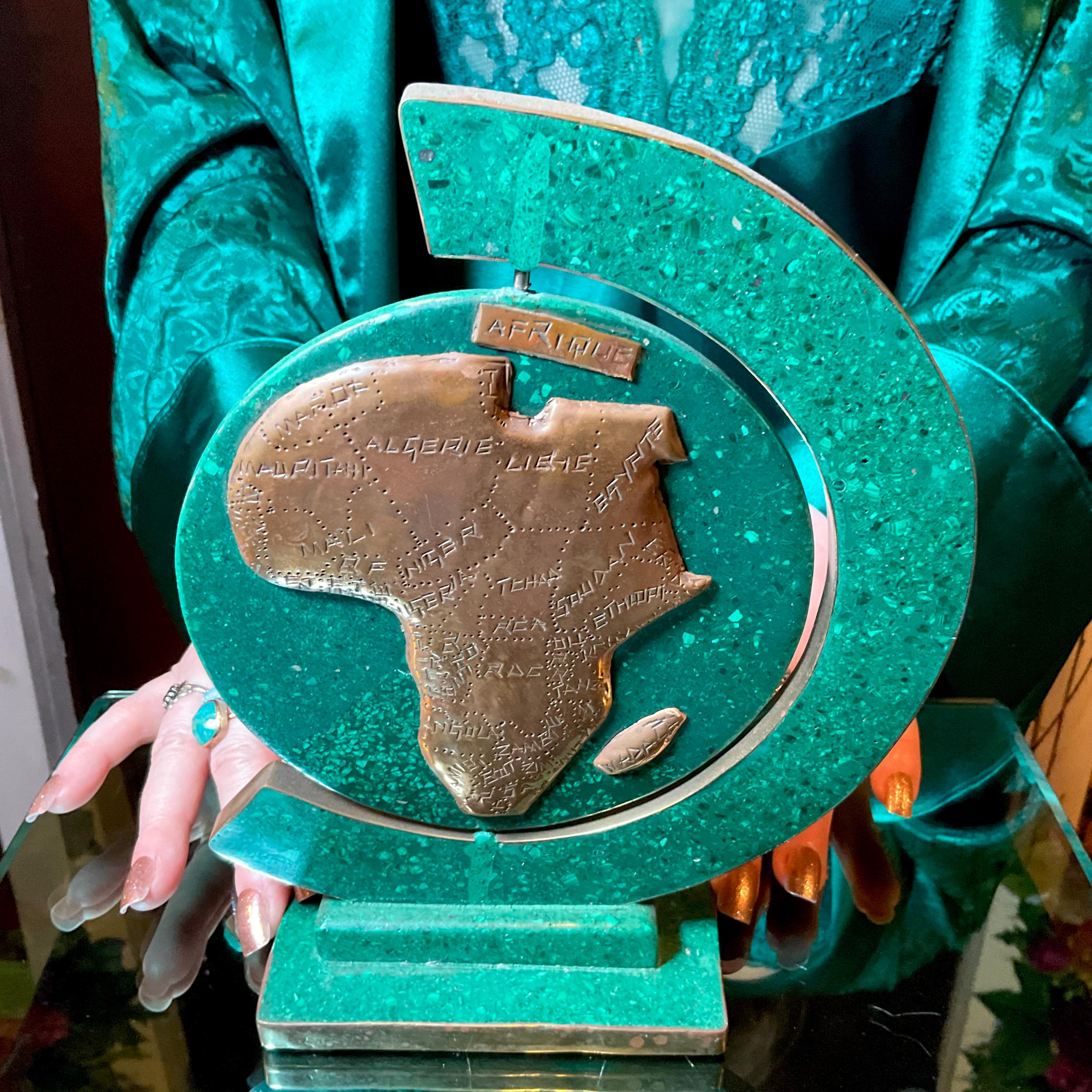 This is a one-of-a-kind carved Malachite & Copper Map of Africa.