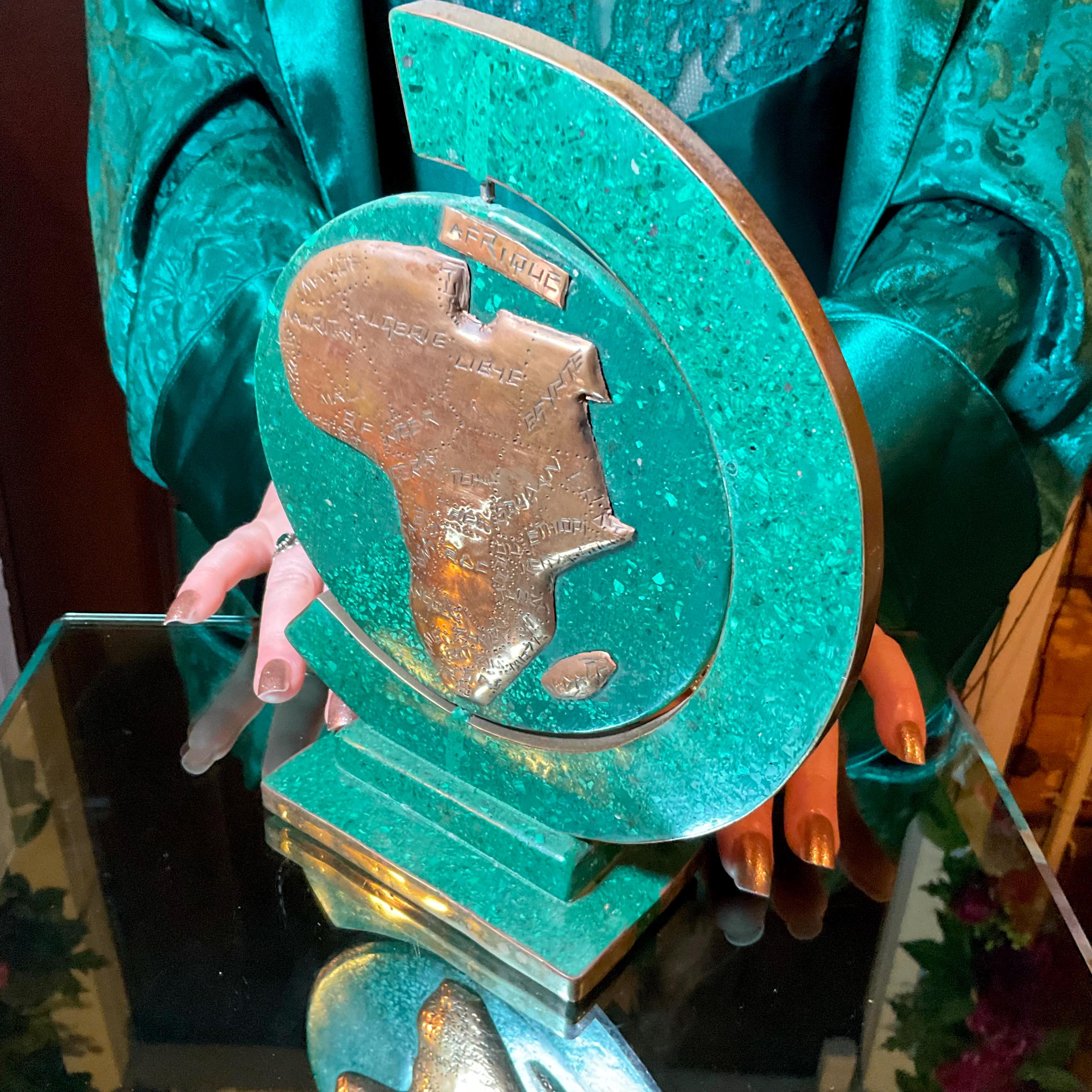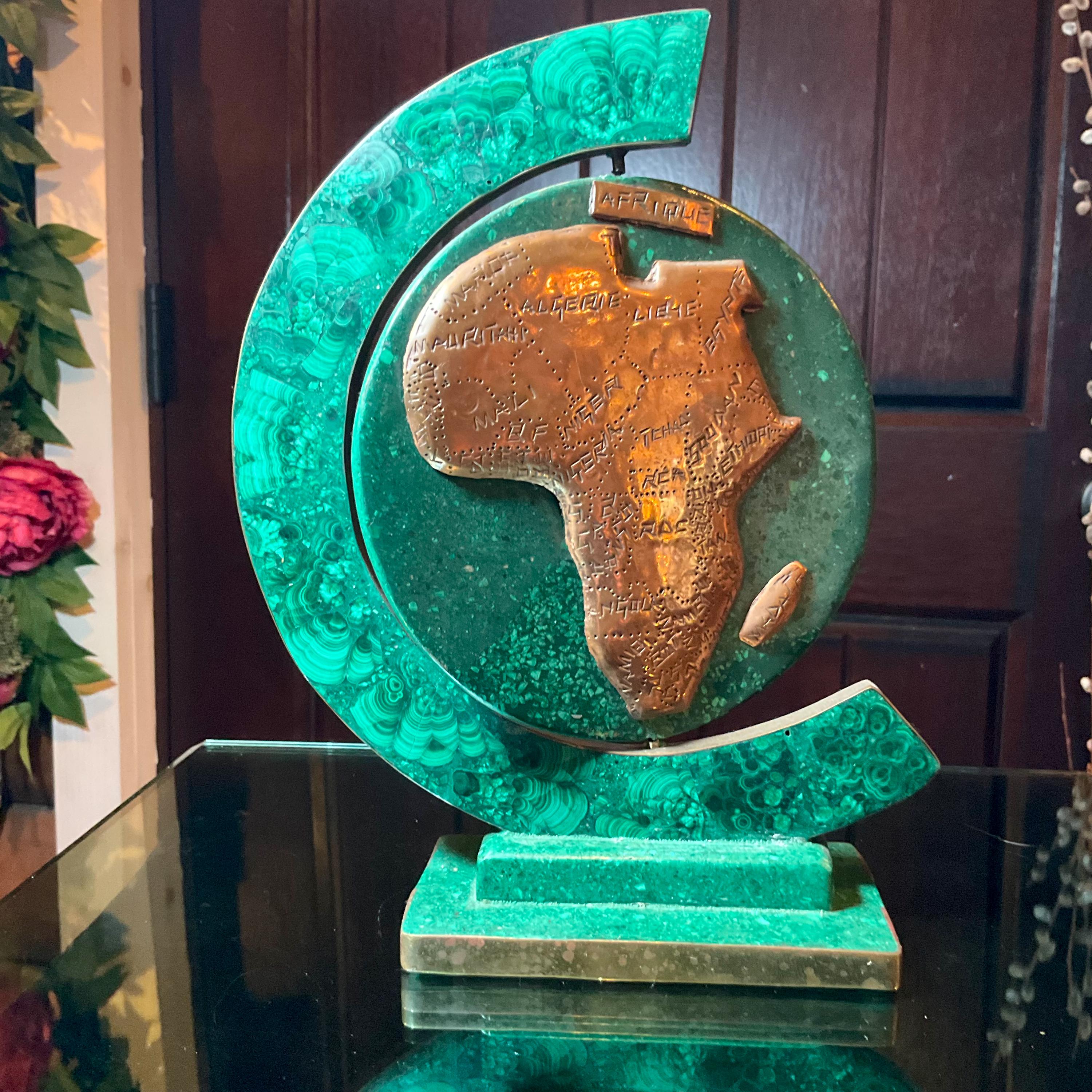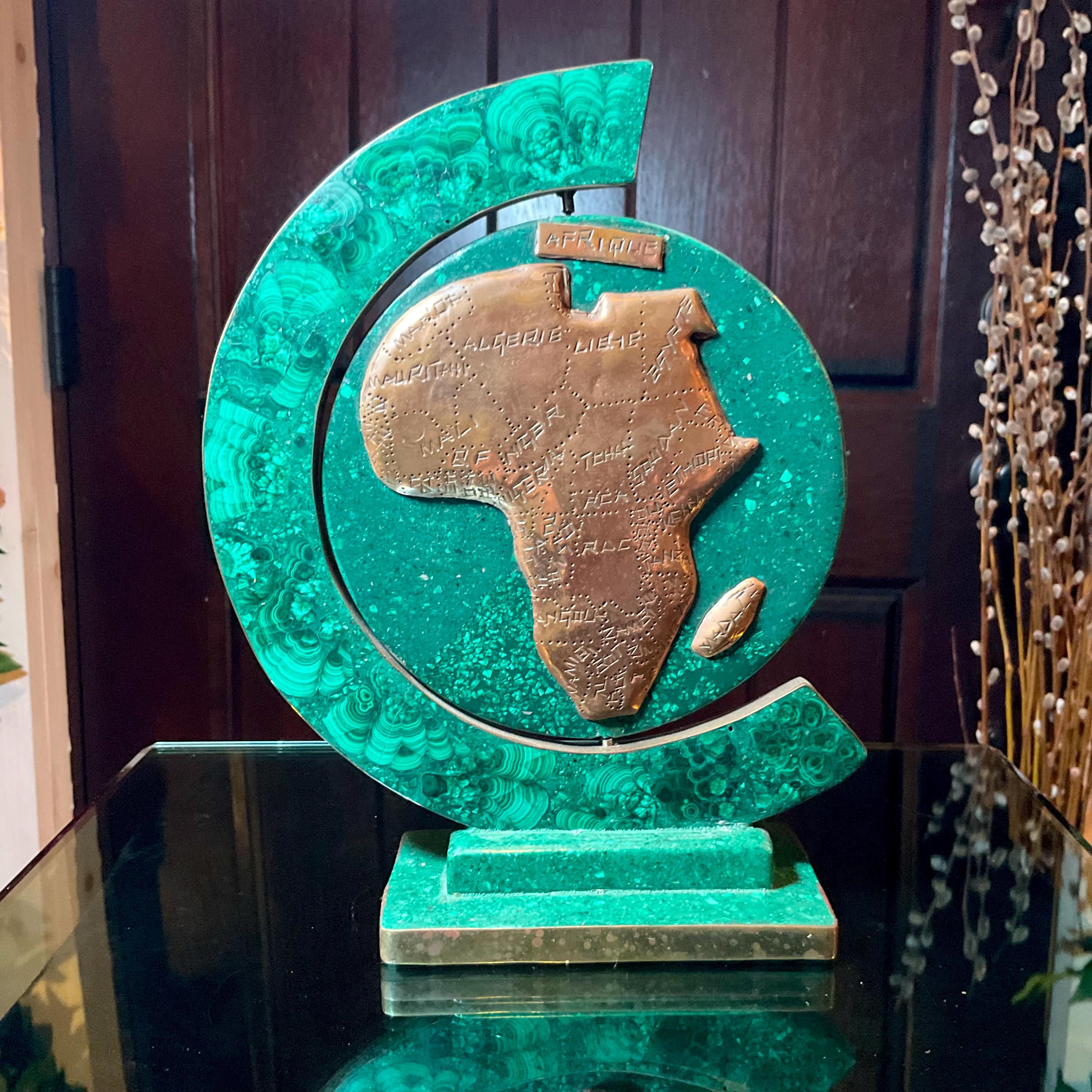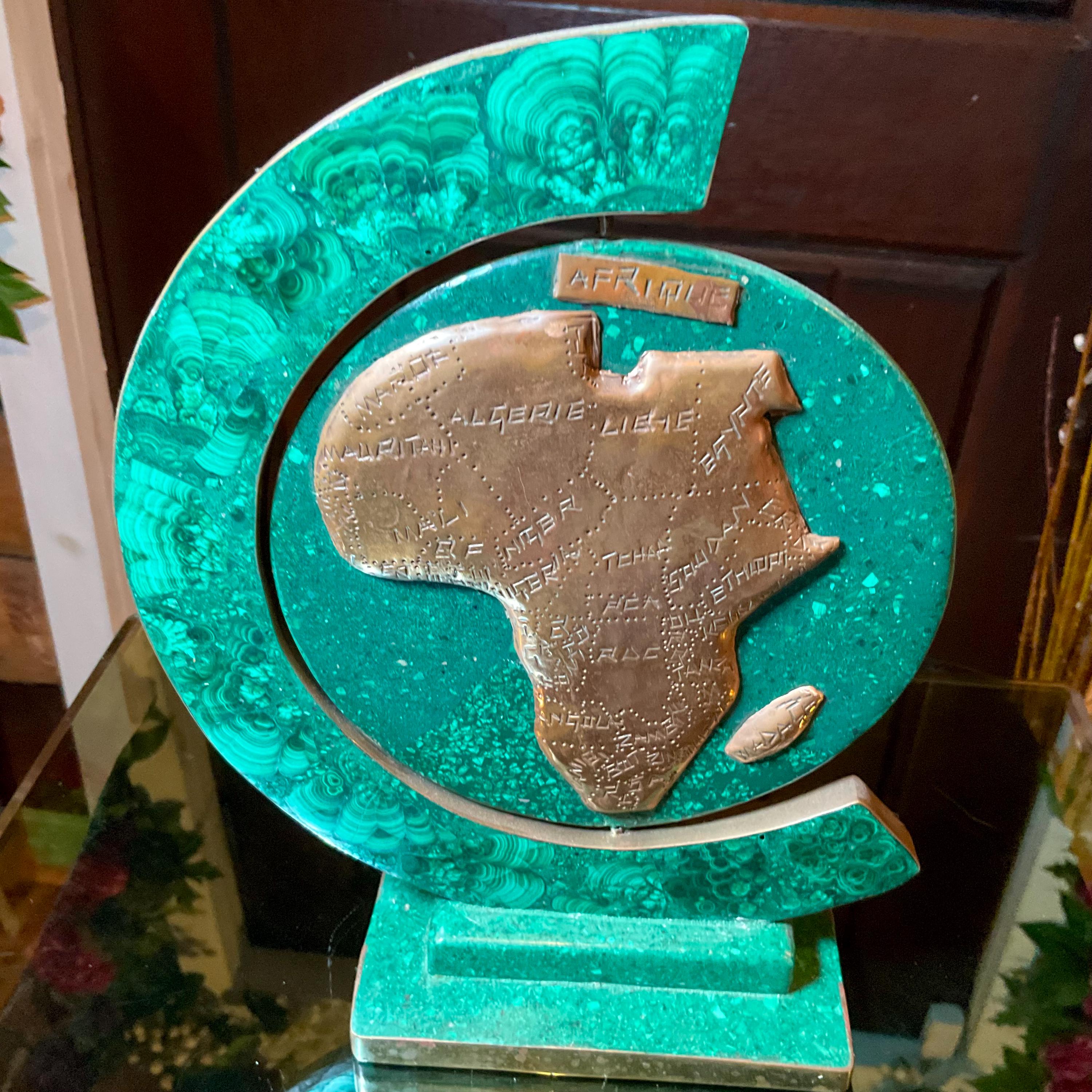 What makes this Malachite & Copper Map of Africa so special is age, patina, and its vintage deco free form style.