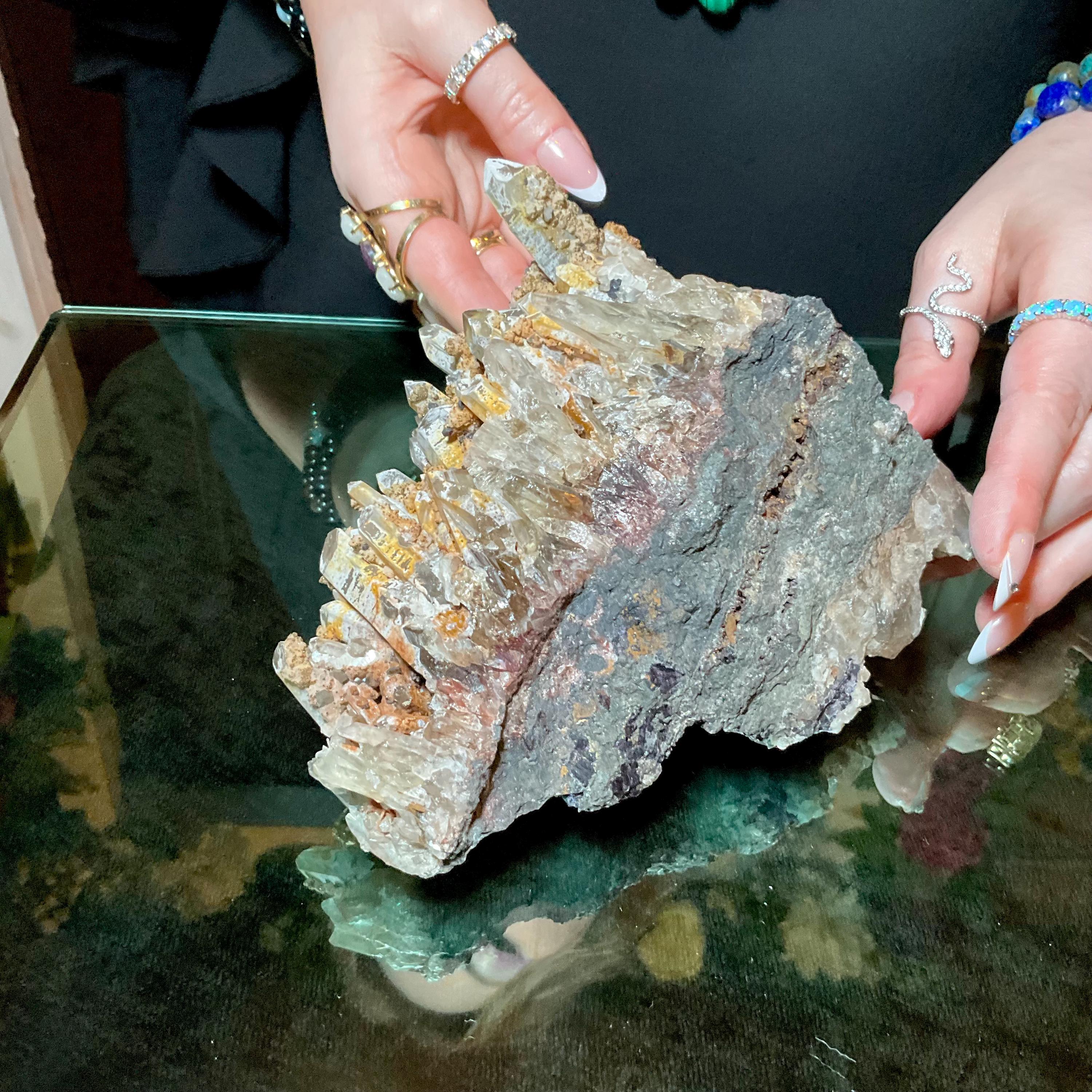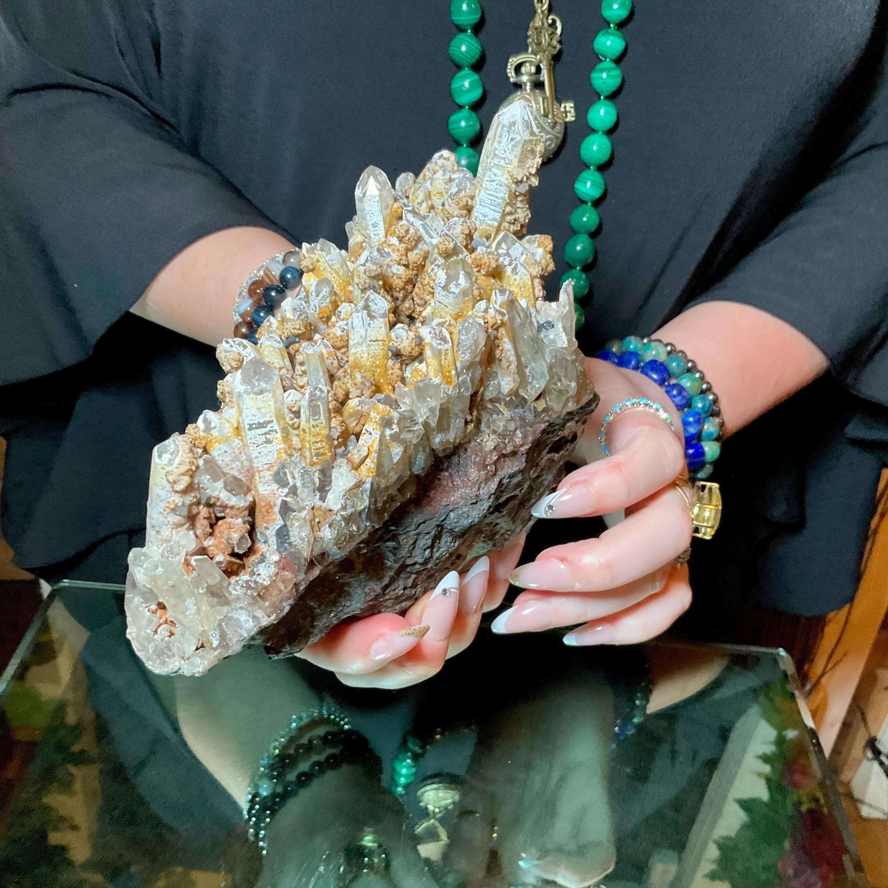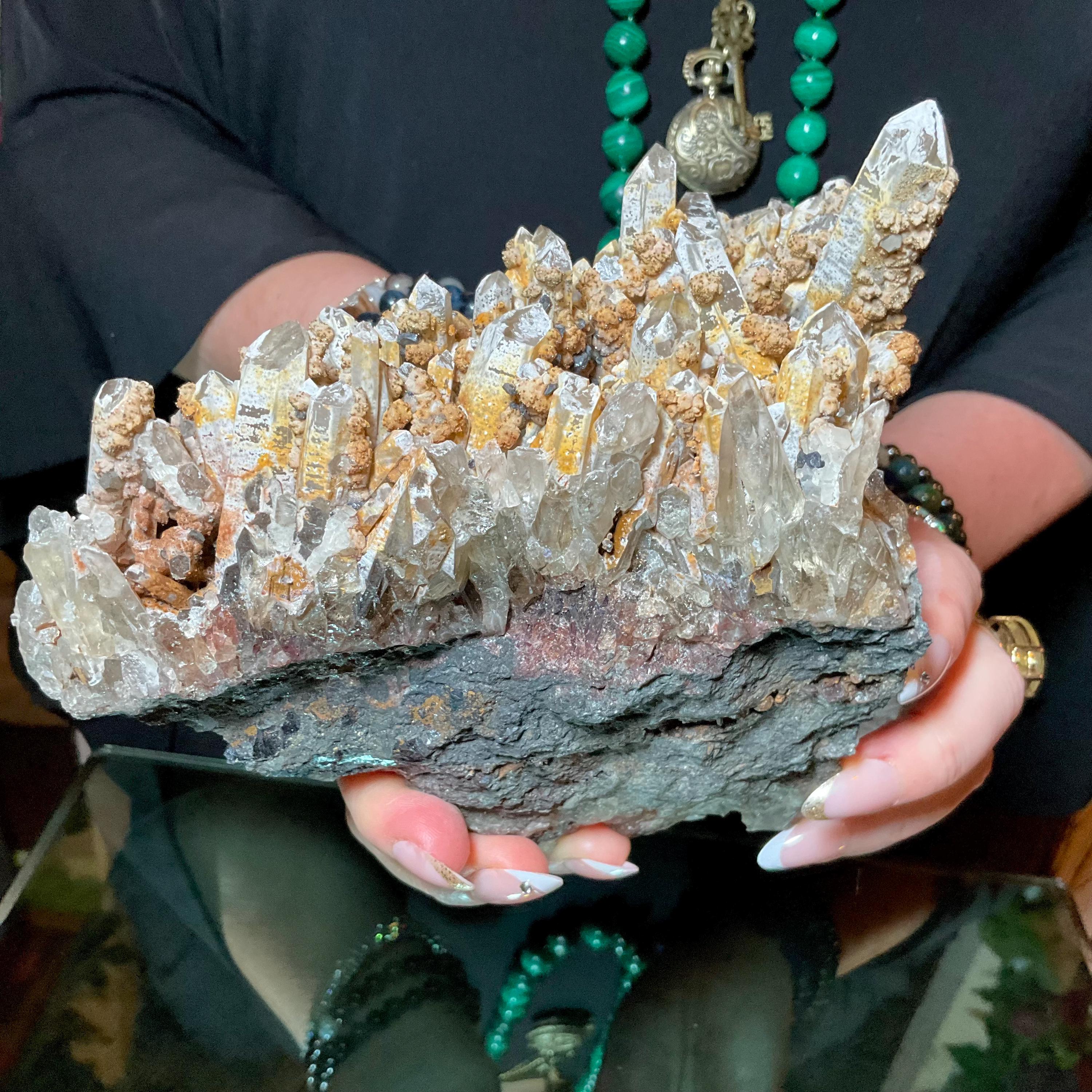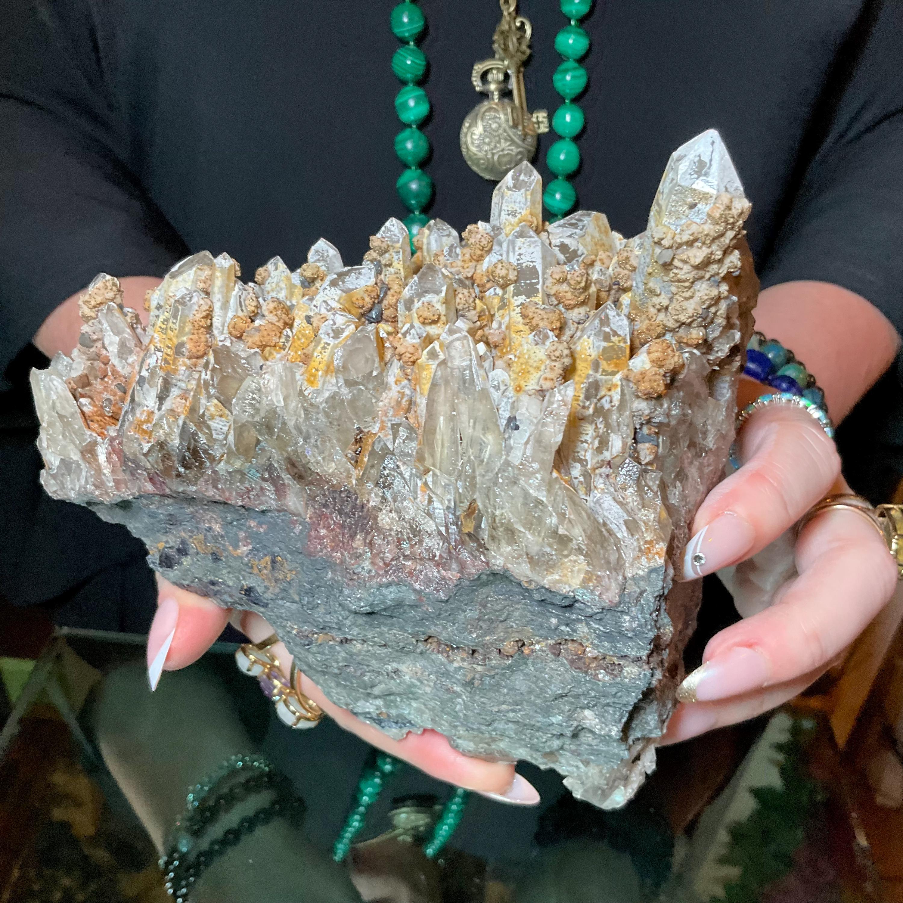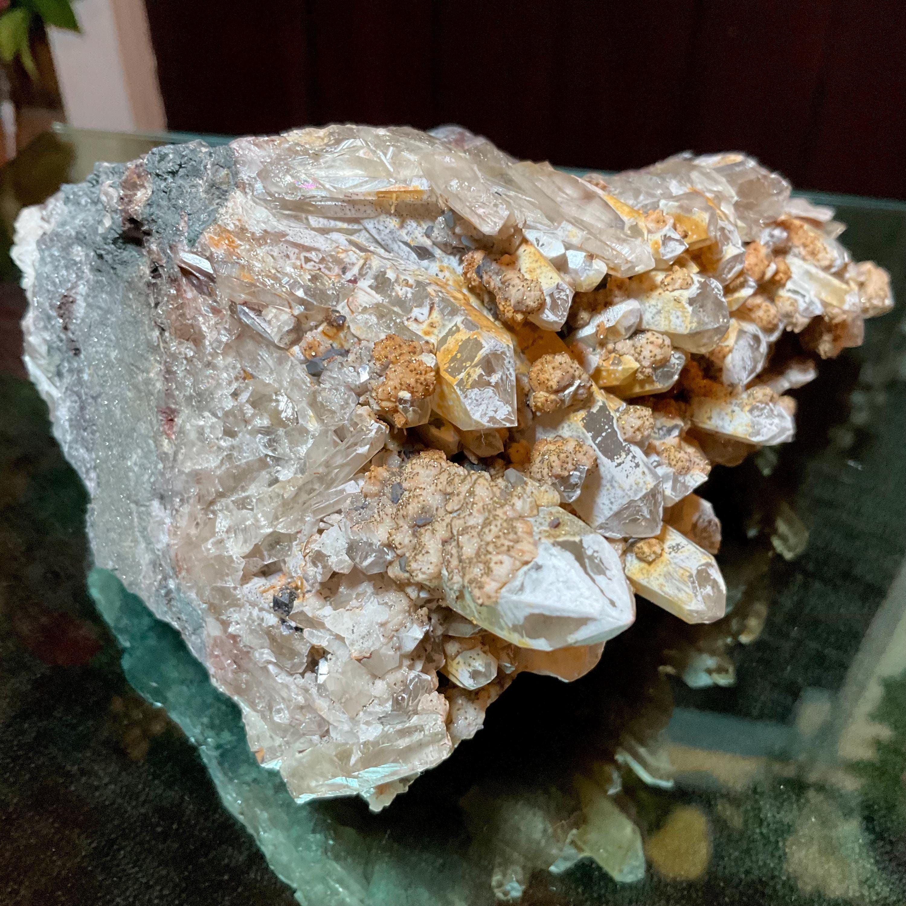 Quartz W/ Limonite & Calcite Crystal Cluster ~ Large 3 lb. ~ 6" Long ~ Multi Points Sparkling on Natural Matrix ~ Reiki, Altar Display