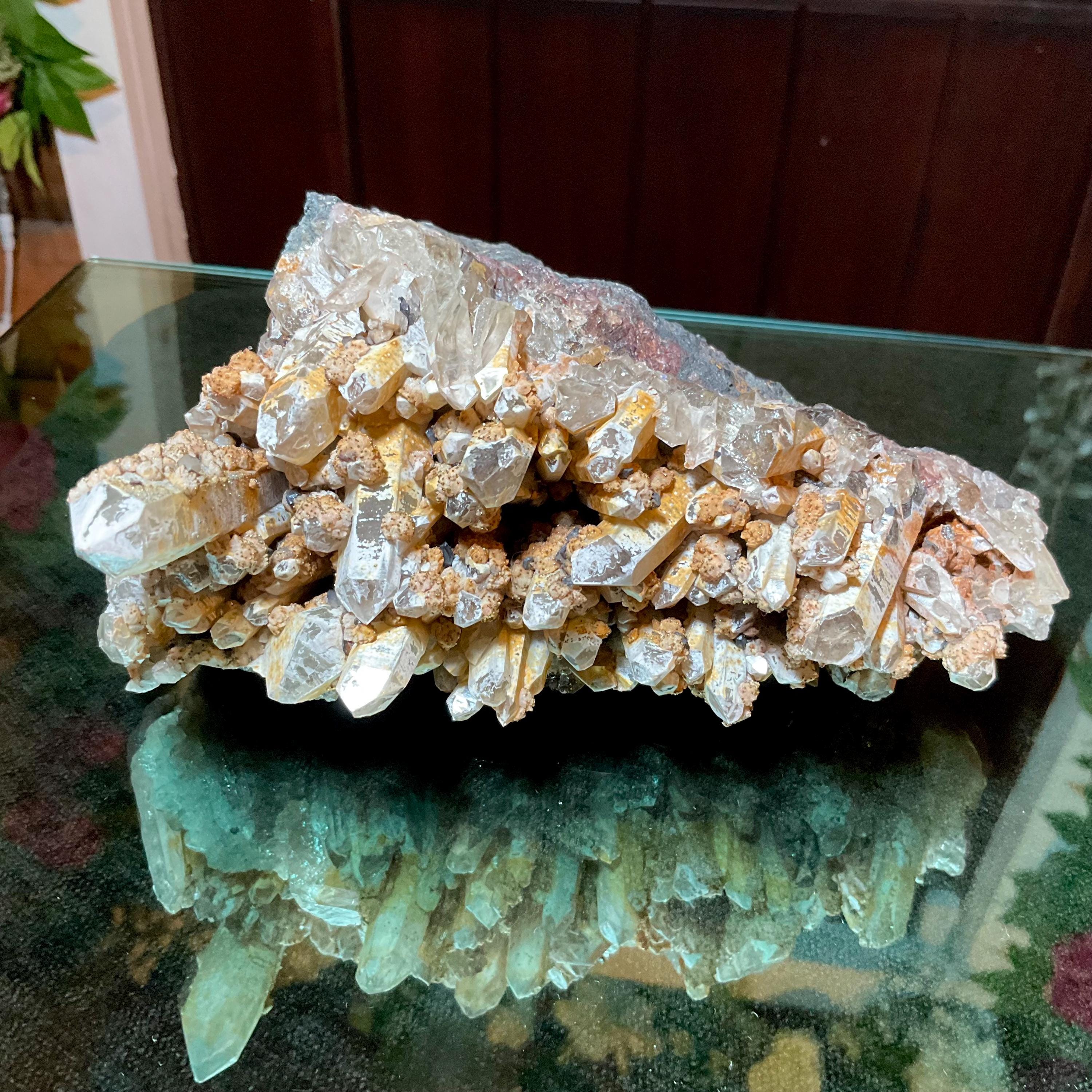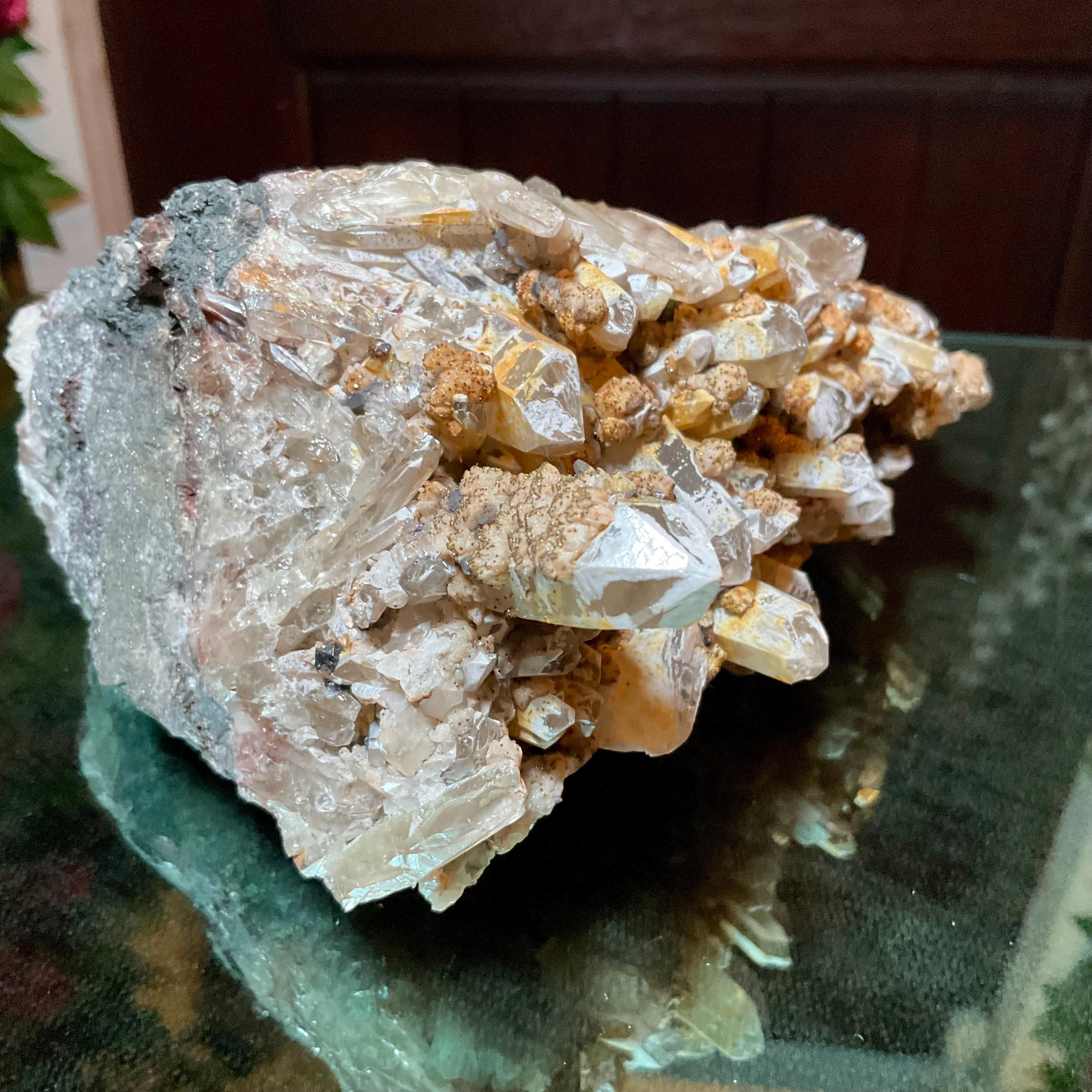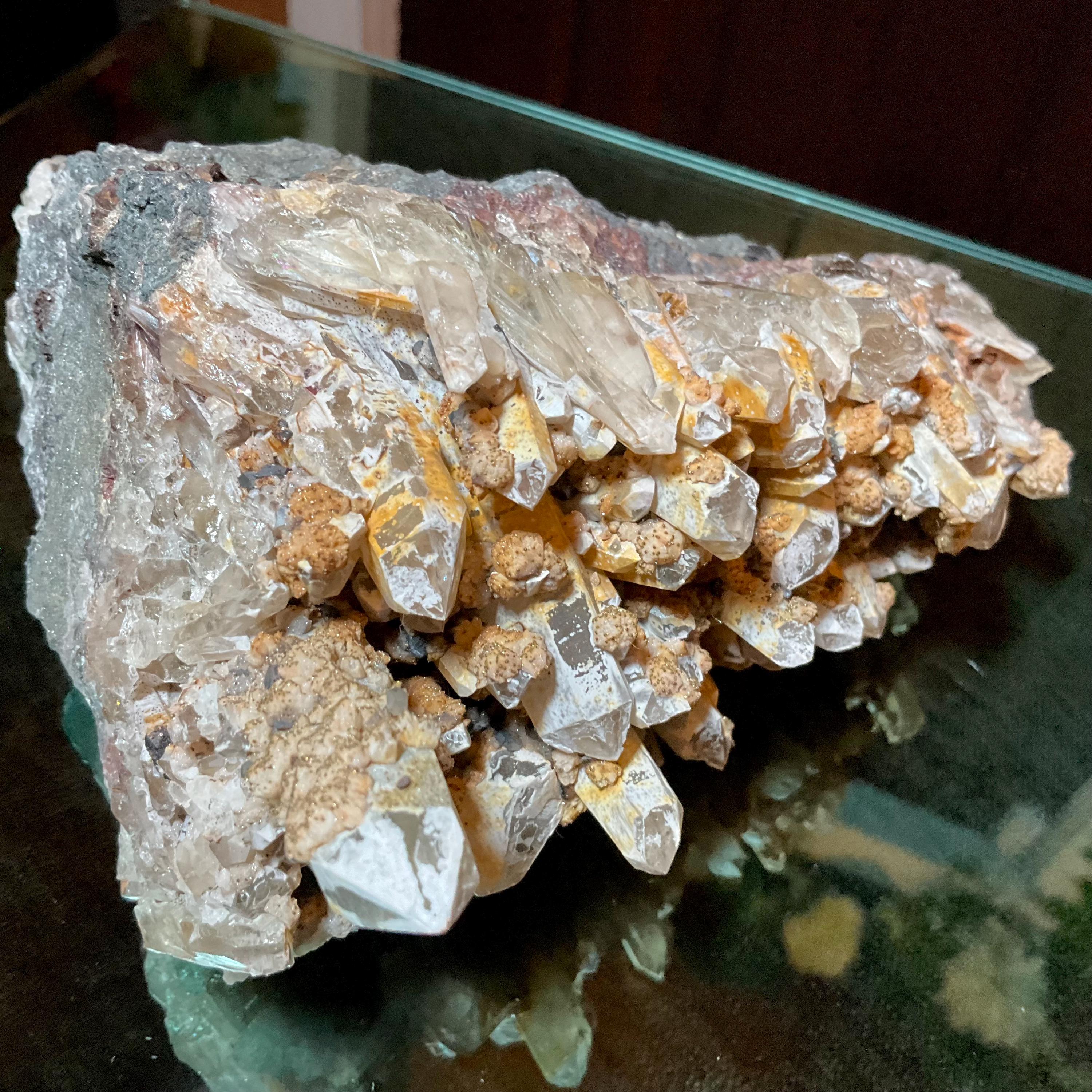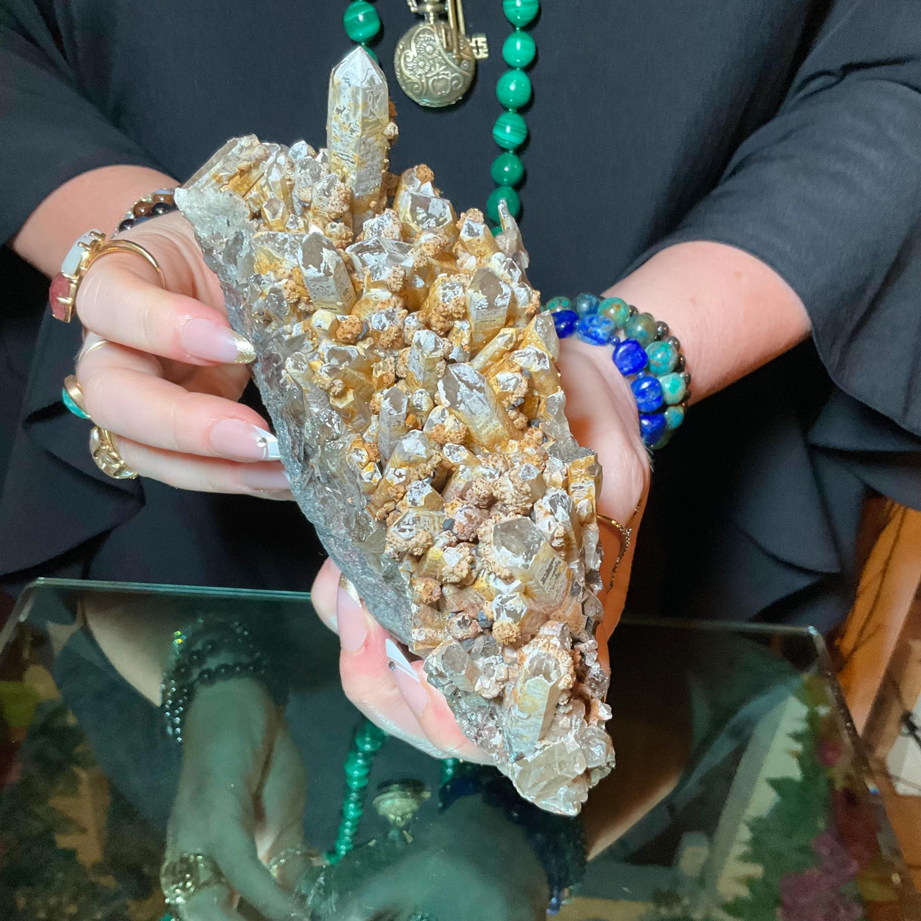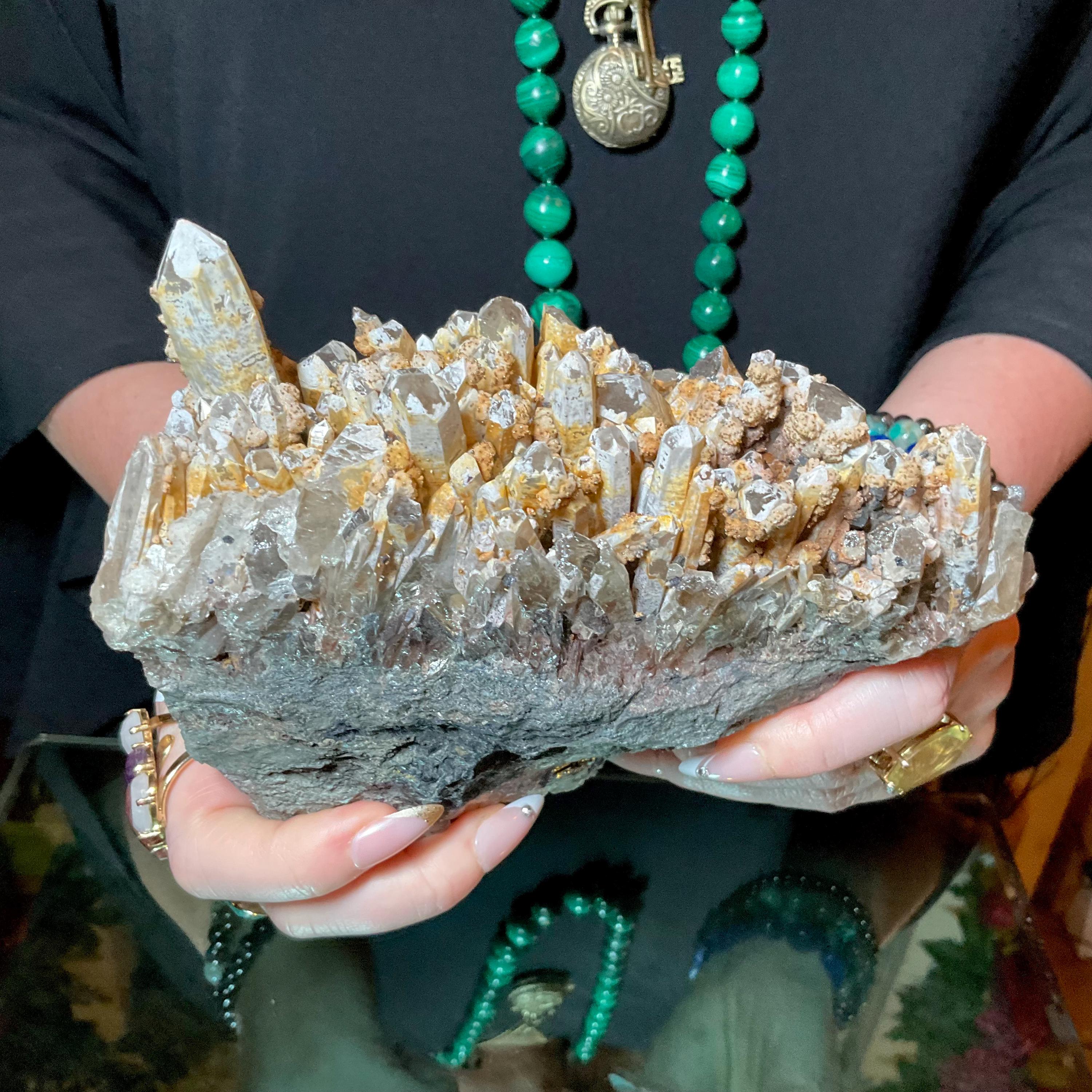 Quartz W/ Limonite & Calcite Crystal Cluster ~ Large 3 lb. ~ 6" Long ~ Multi Points Sparkling on Natural Matrix ~ Reiki, Altar Display