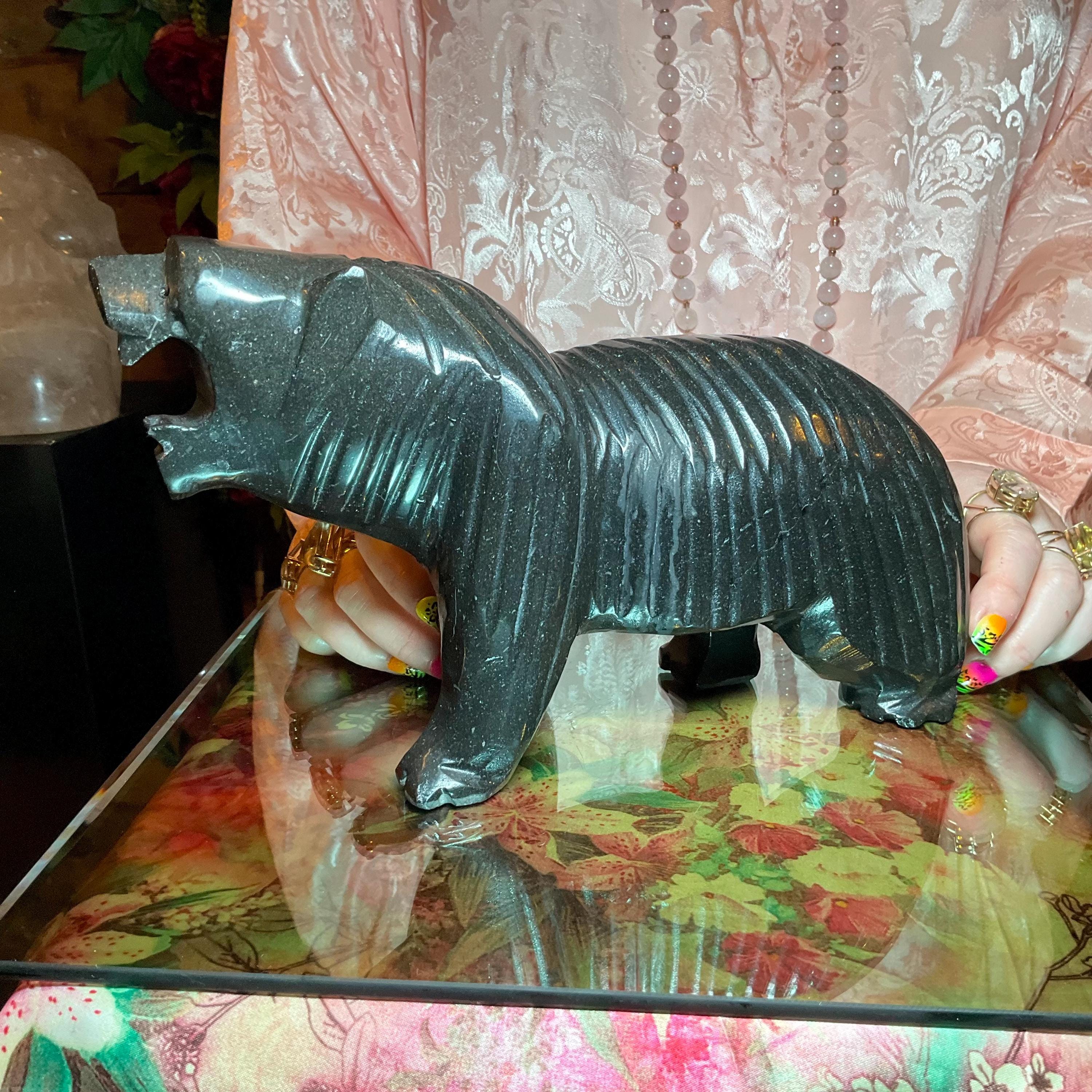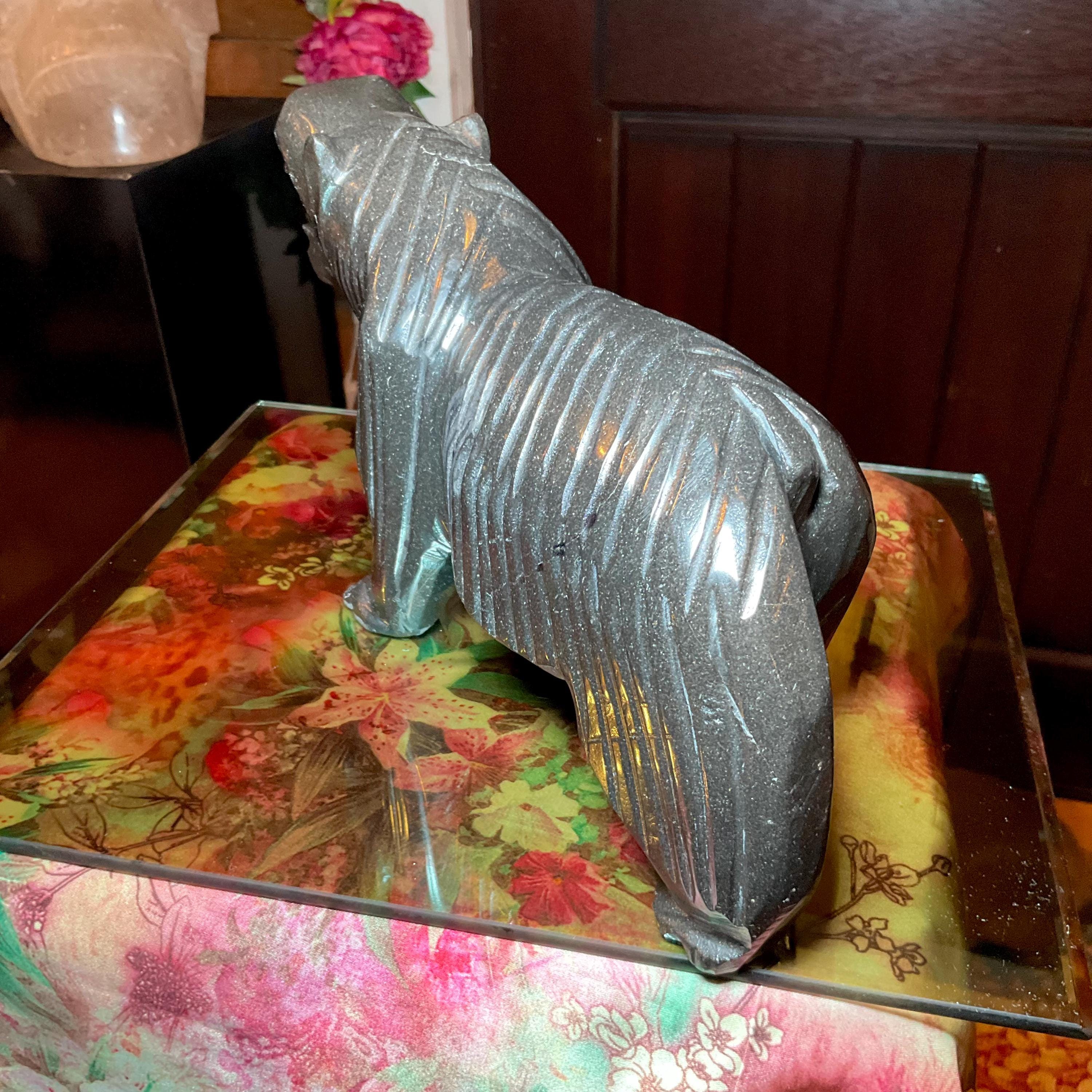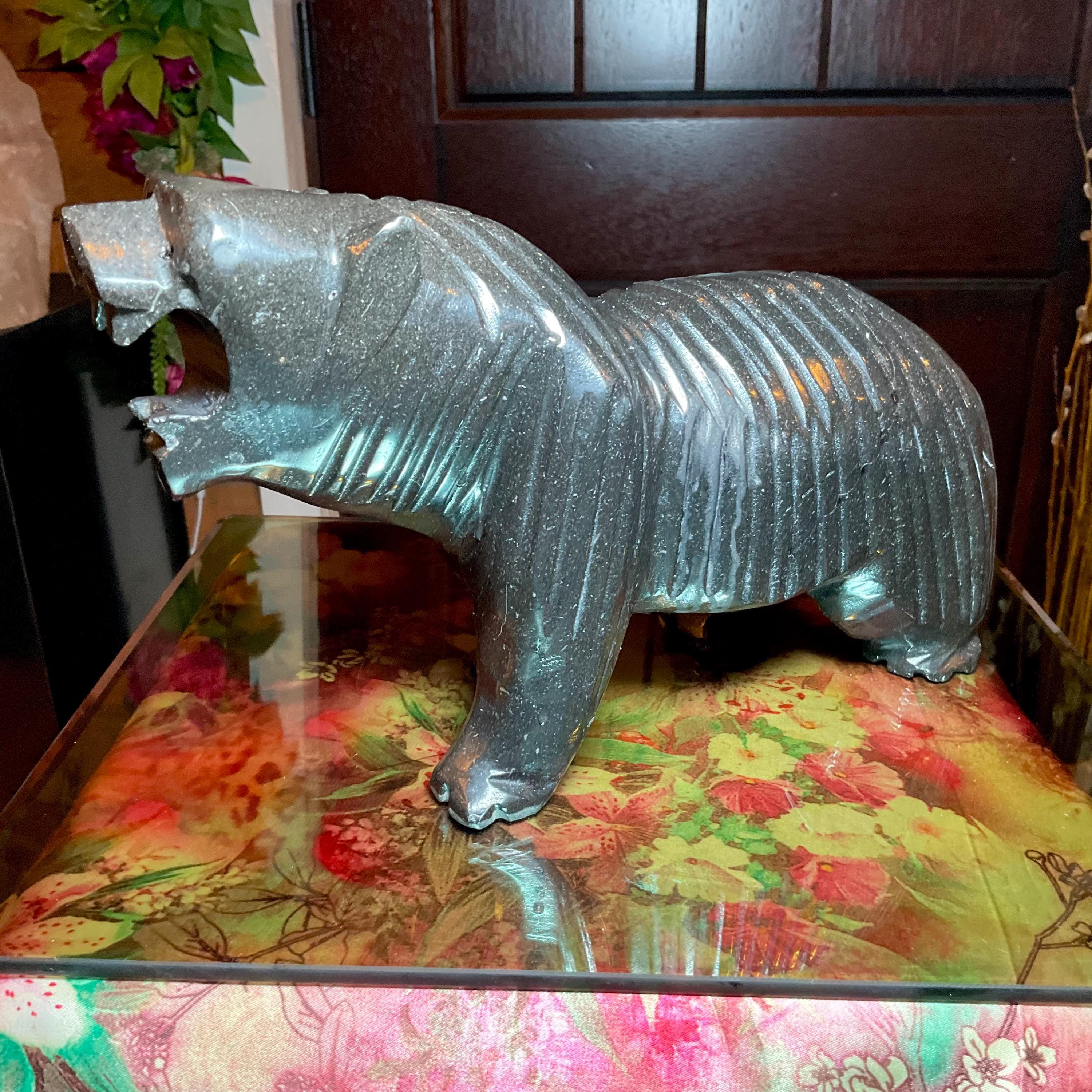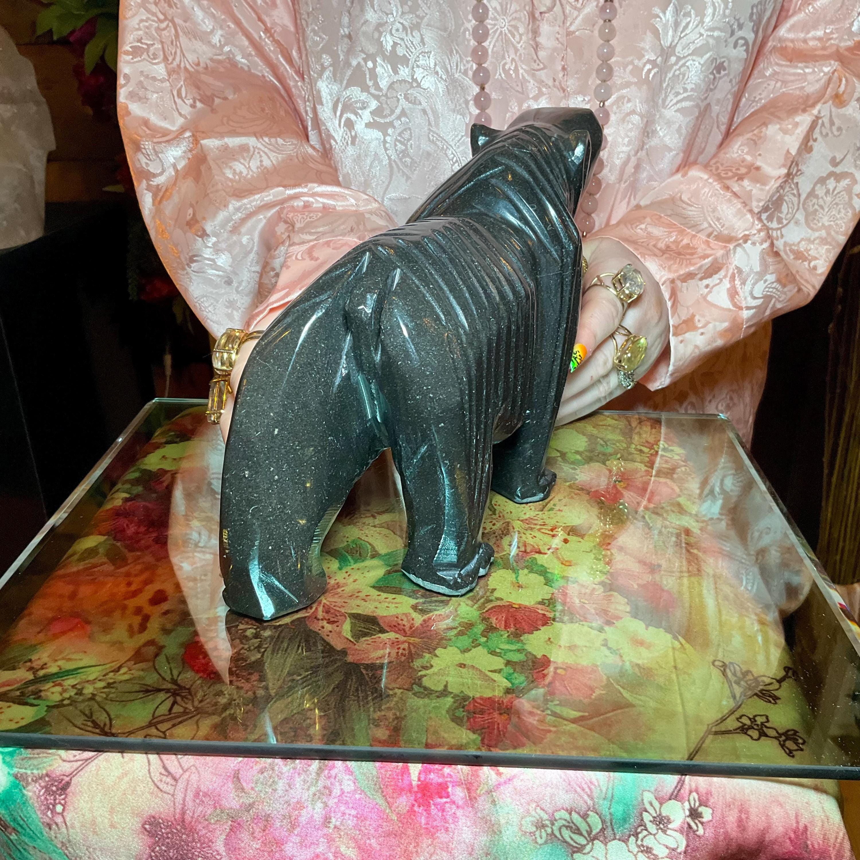 Vintage Black Tourmaline Bear Large 7 Lb.~ 11" Long ~ Art Sculpture Hand Carved Museum Quality ~ Swirling Sparkling Colors