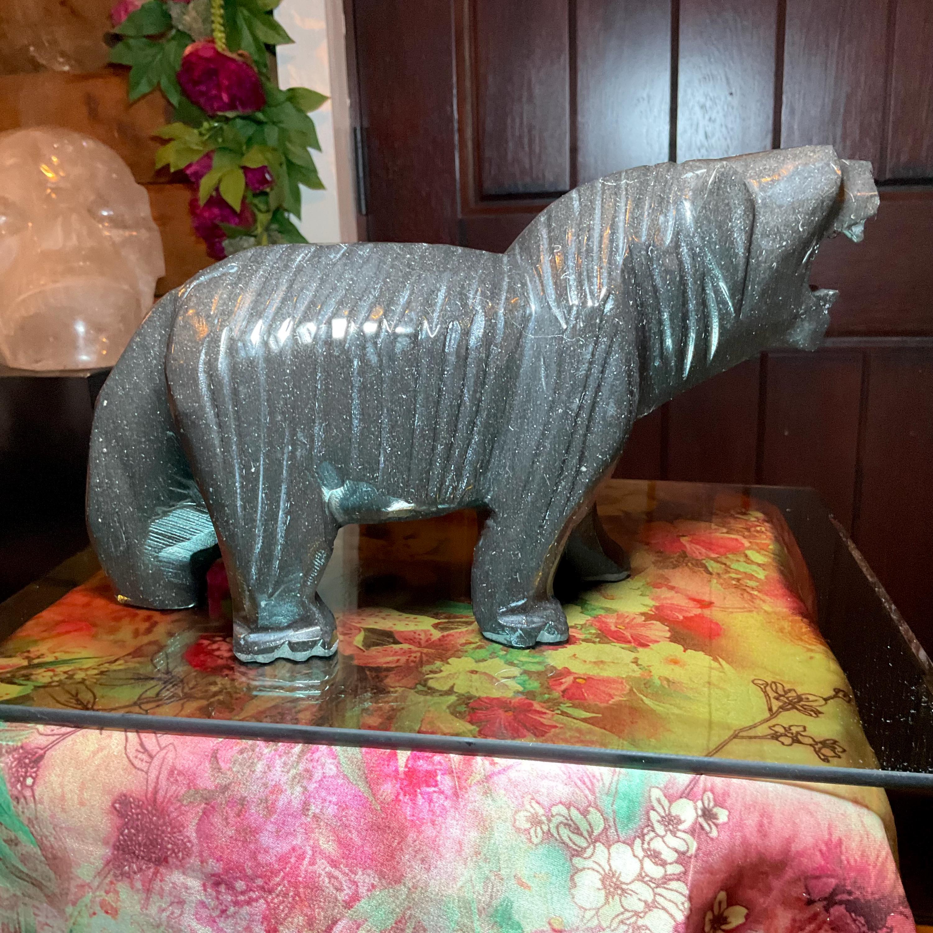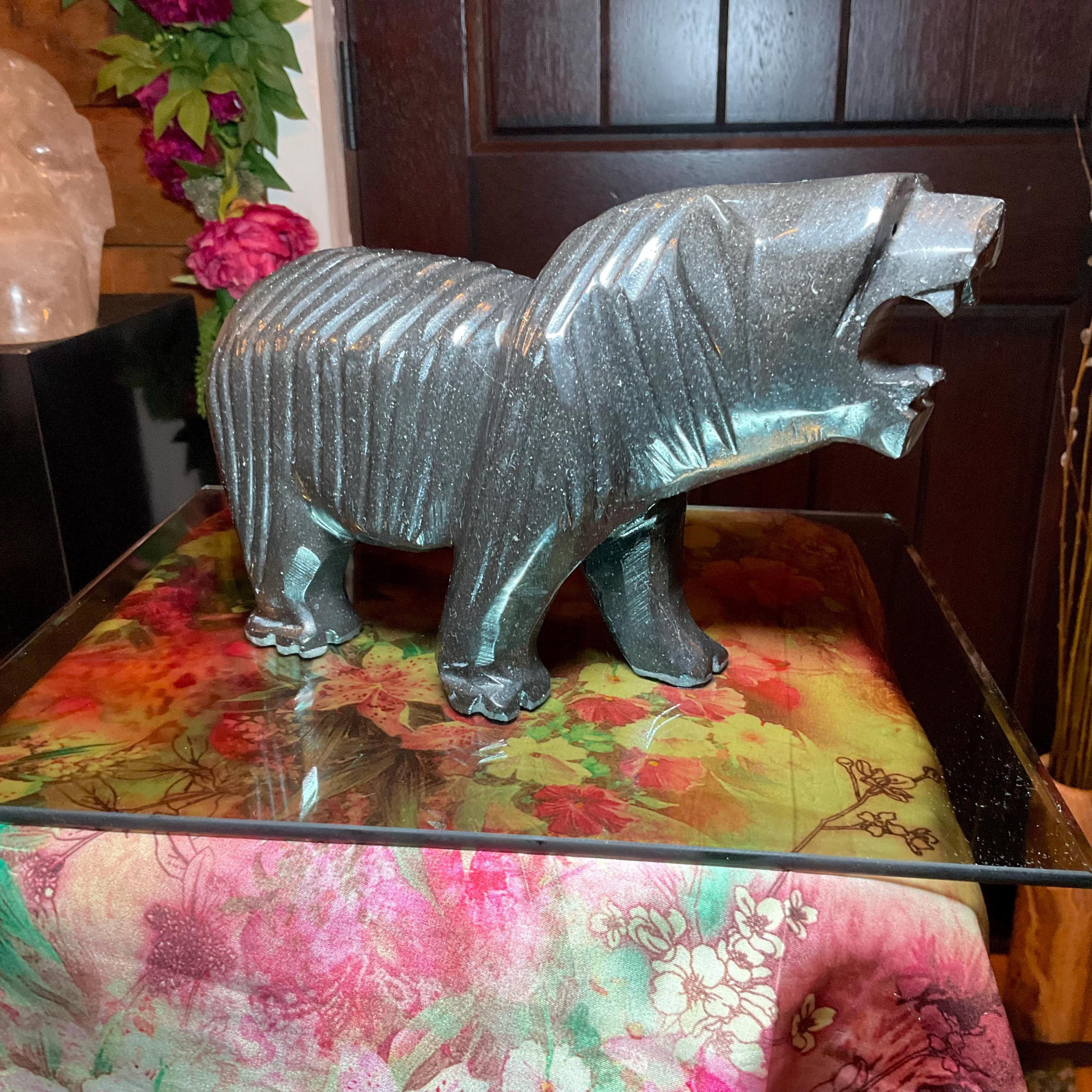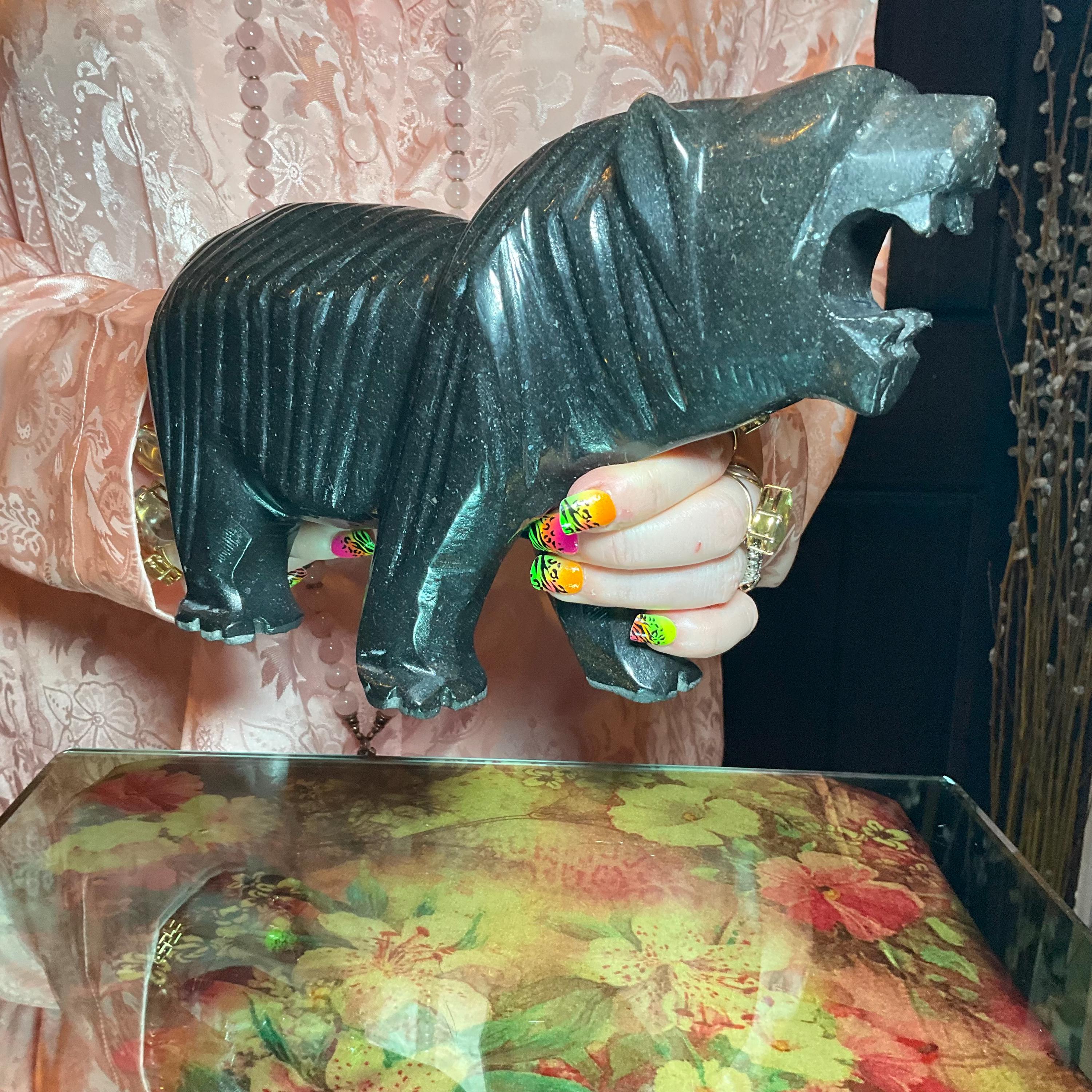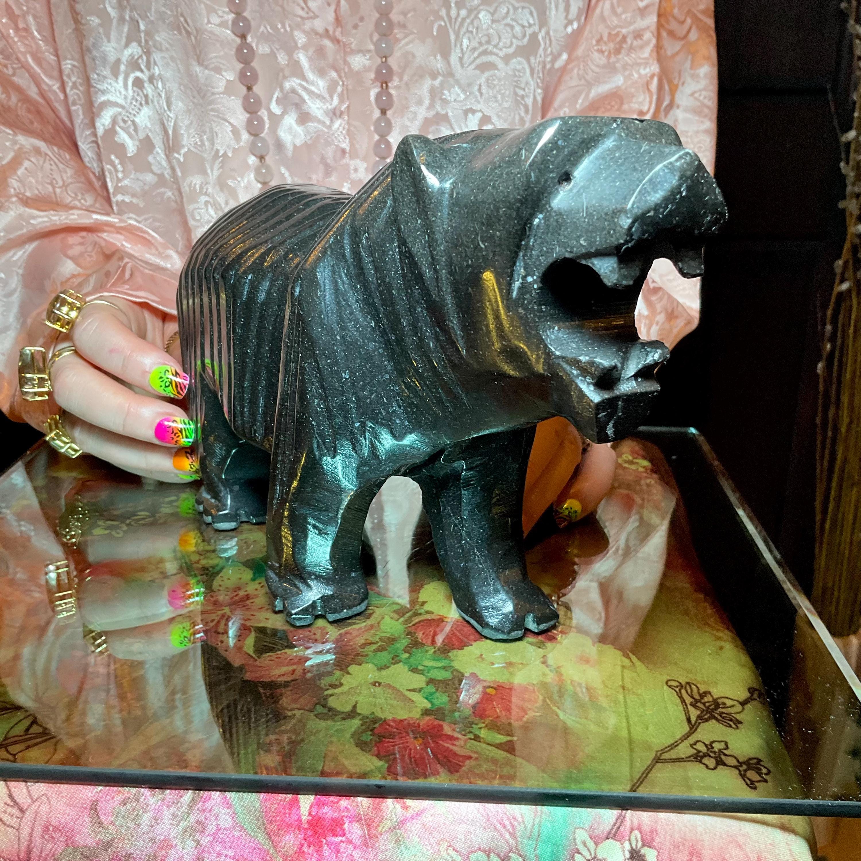 Vintage Black Tourmaline Bear Large 7 Lb.~ 11" Long ~ Art Sculpture Hand Carved Museum Quality ~ Swirling Sparkling Colors