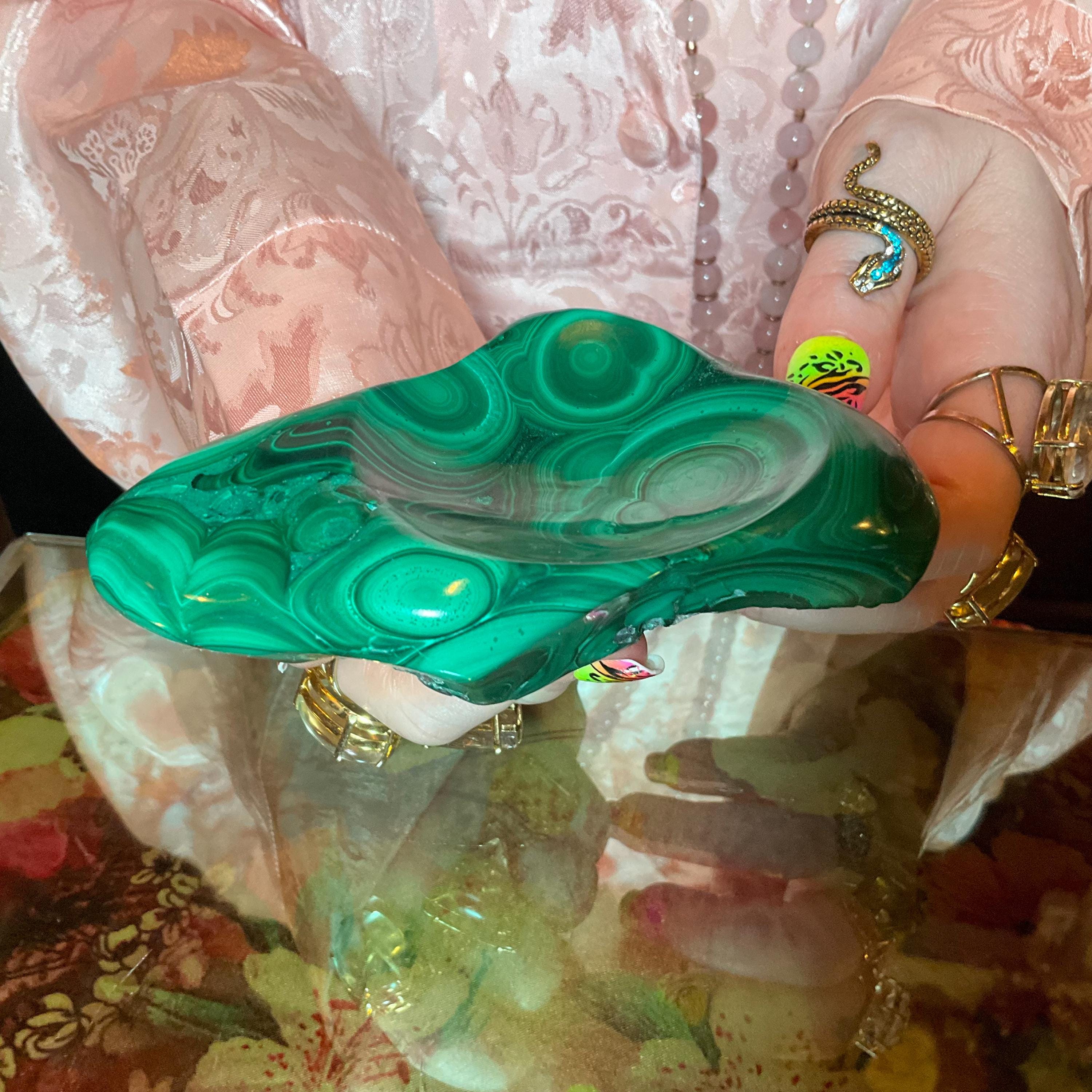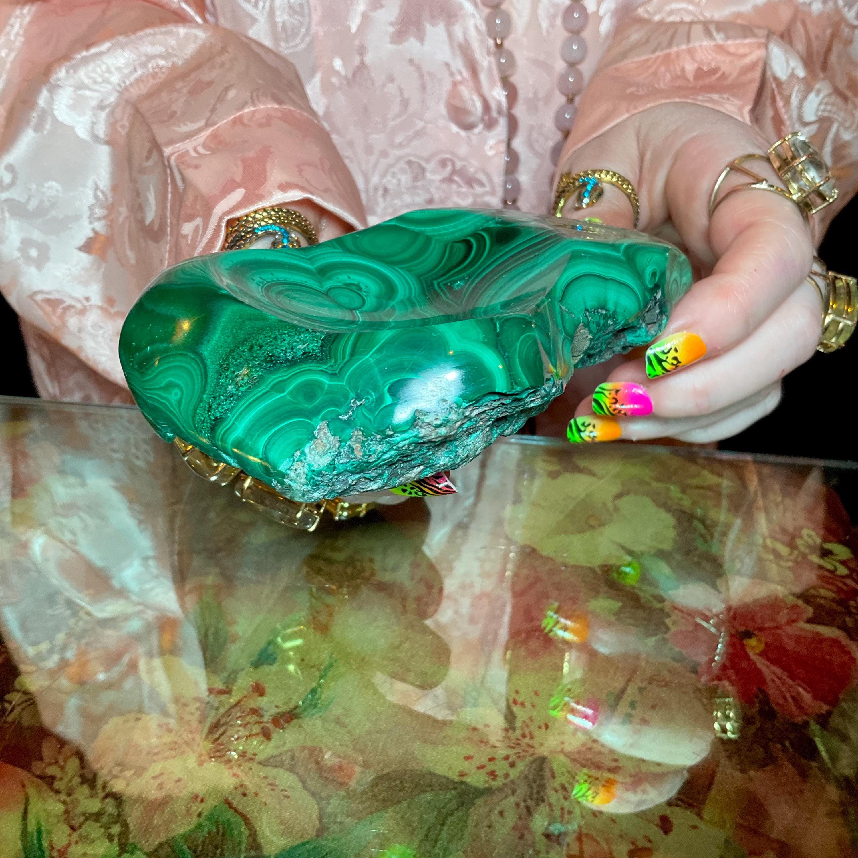 You will love this one-of-a-kind Malachite bowl it is a beauty to behold.