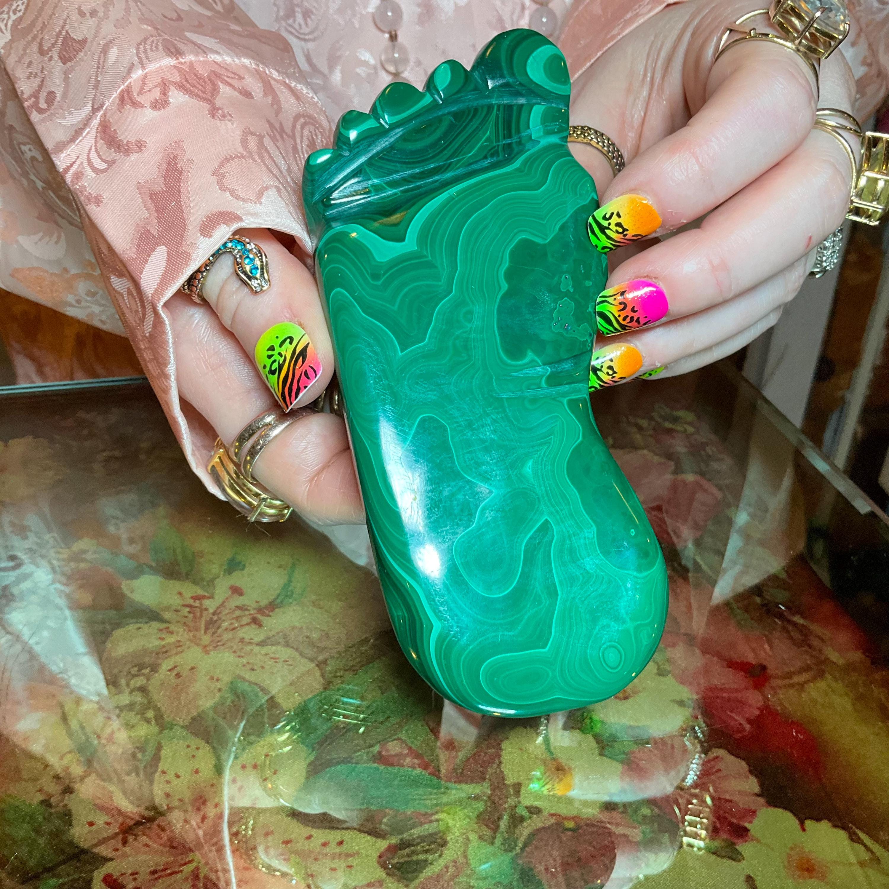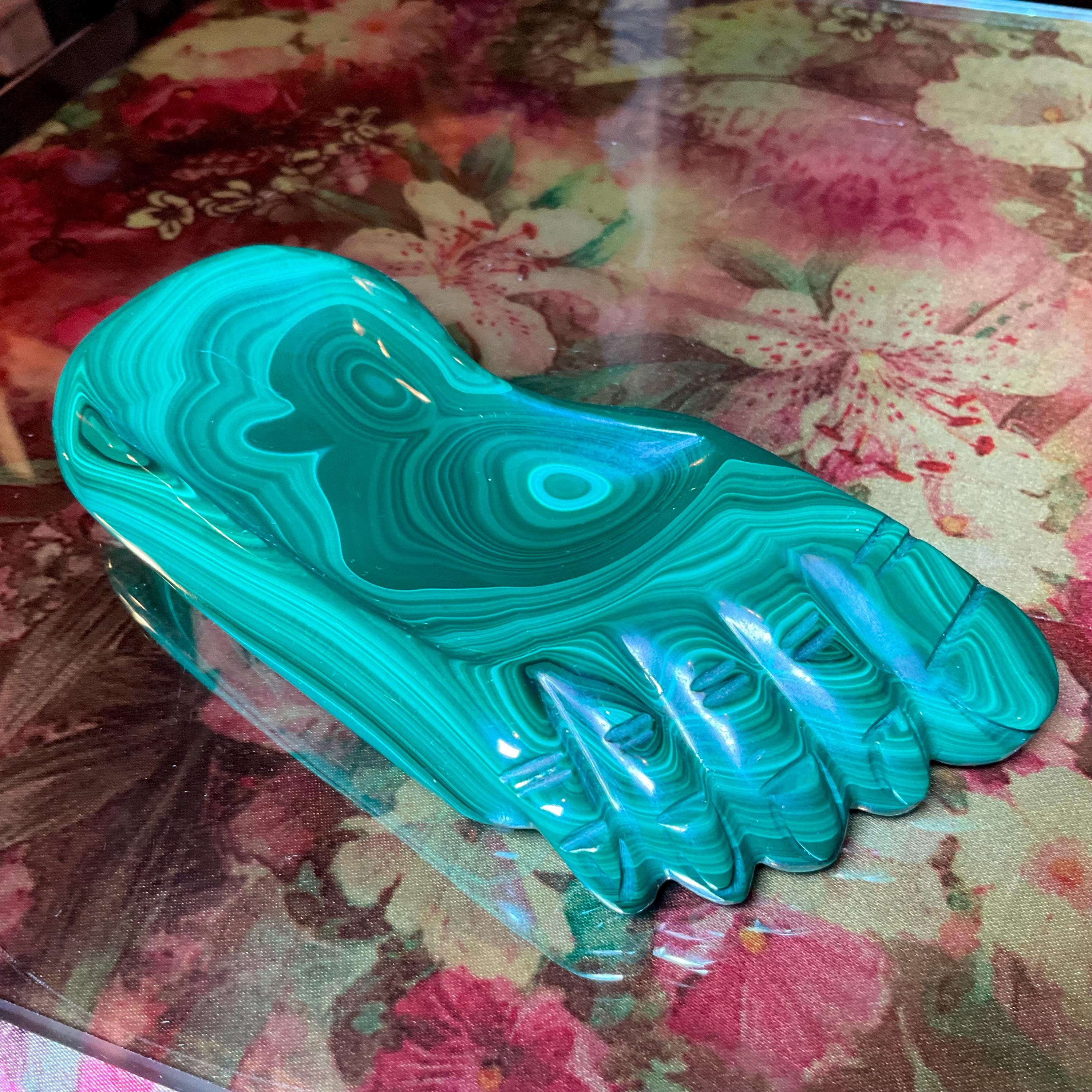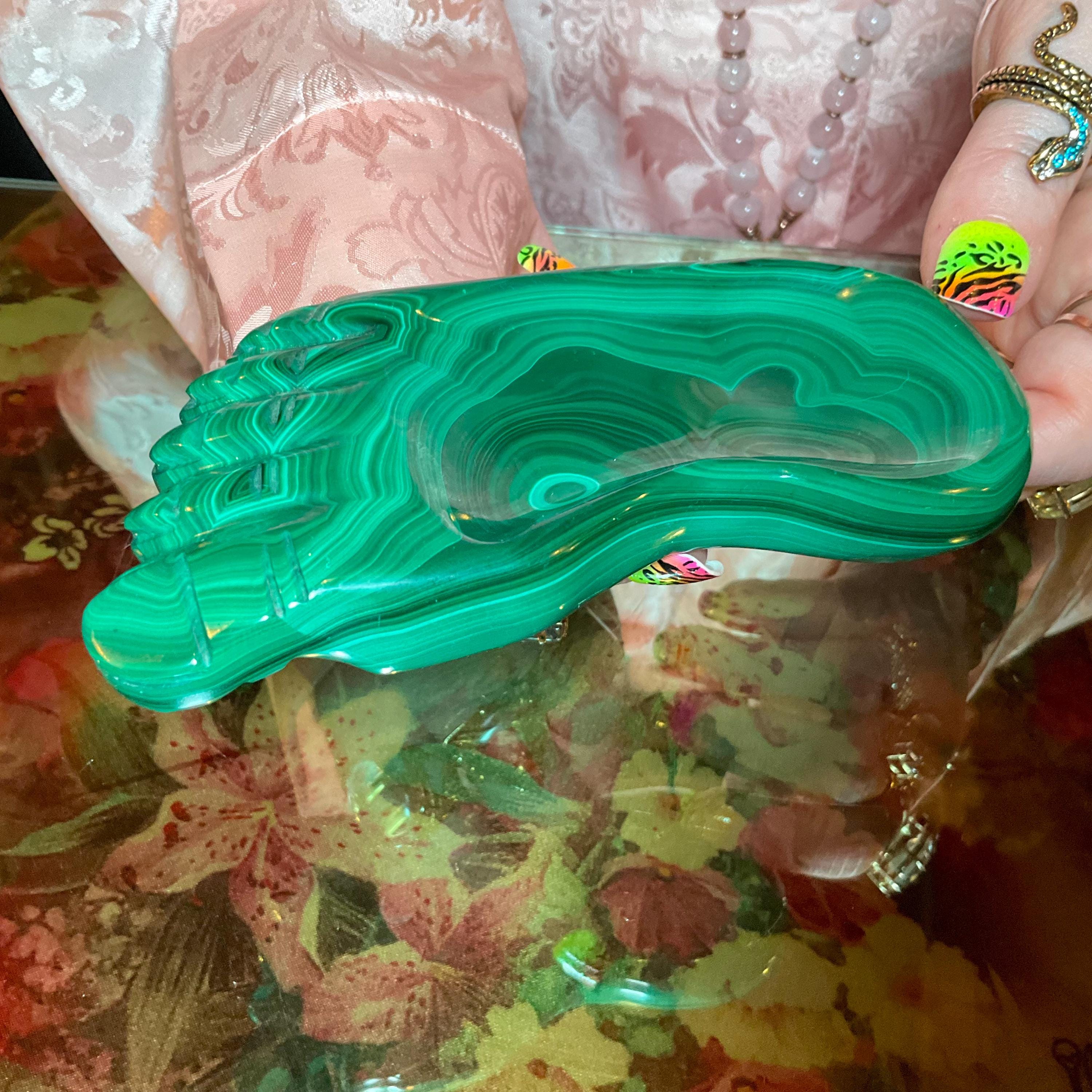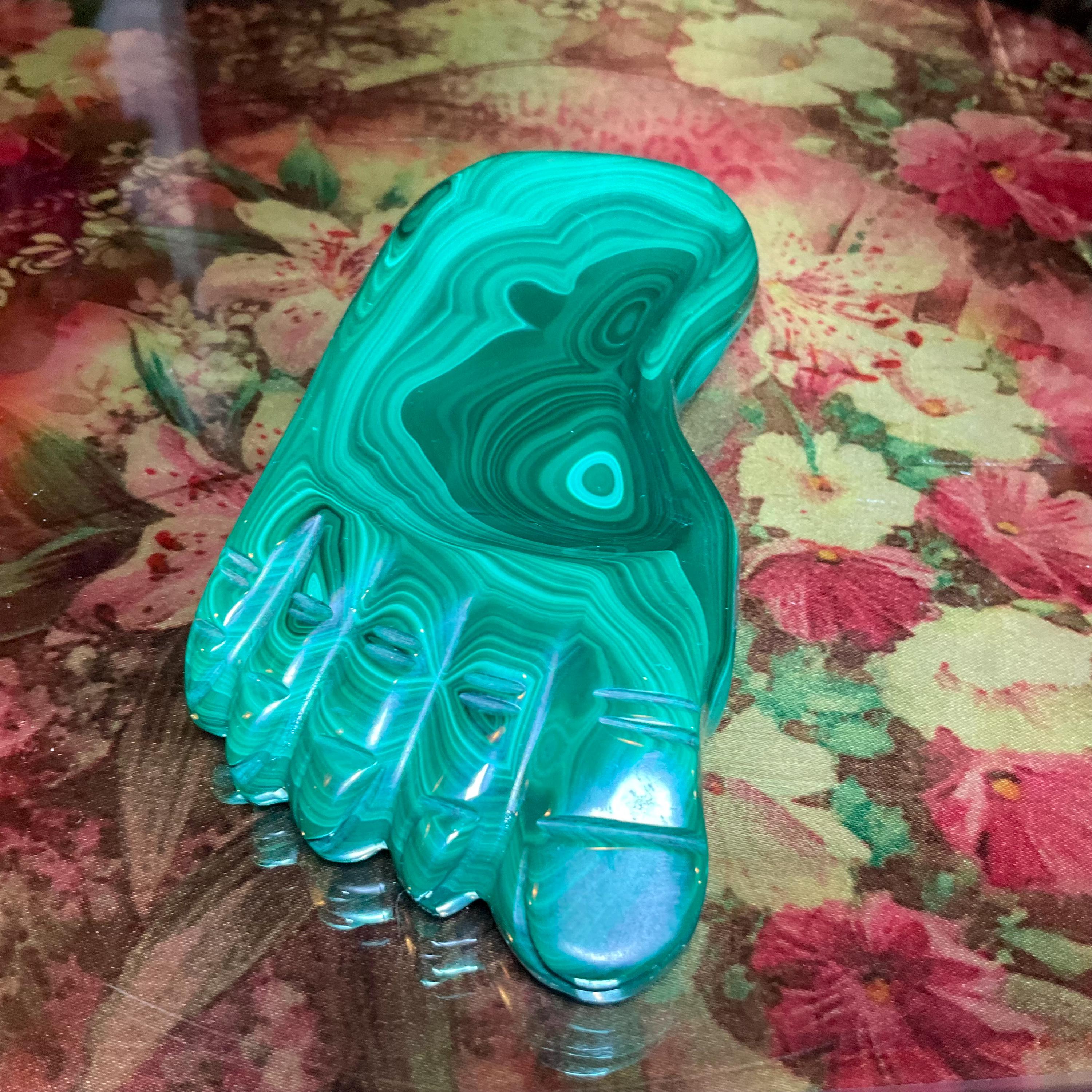 Beautiful detailed and unique Green African Congo Mineral Specimen exquisitely carved in the shape of a foot.