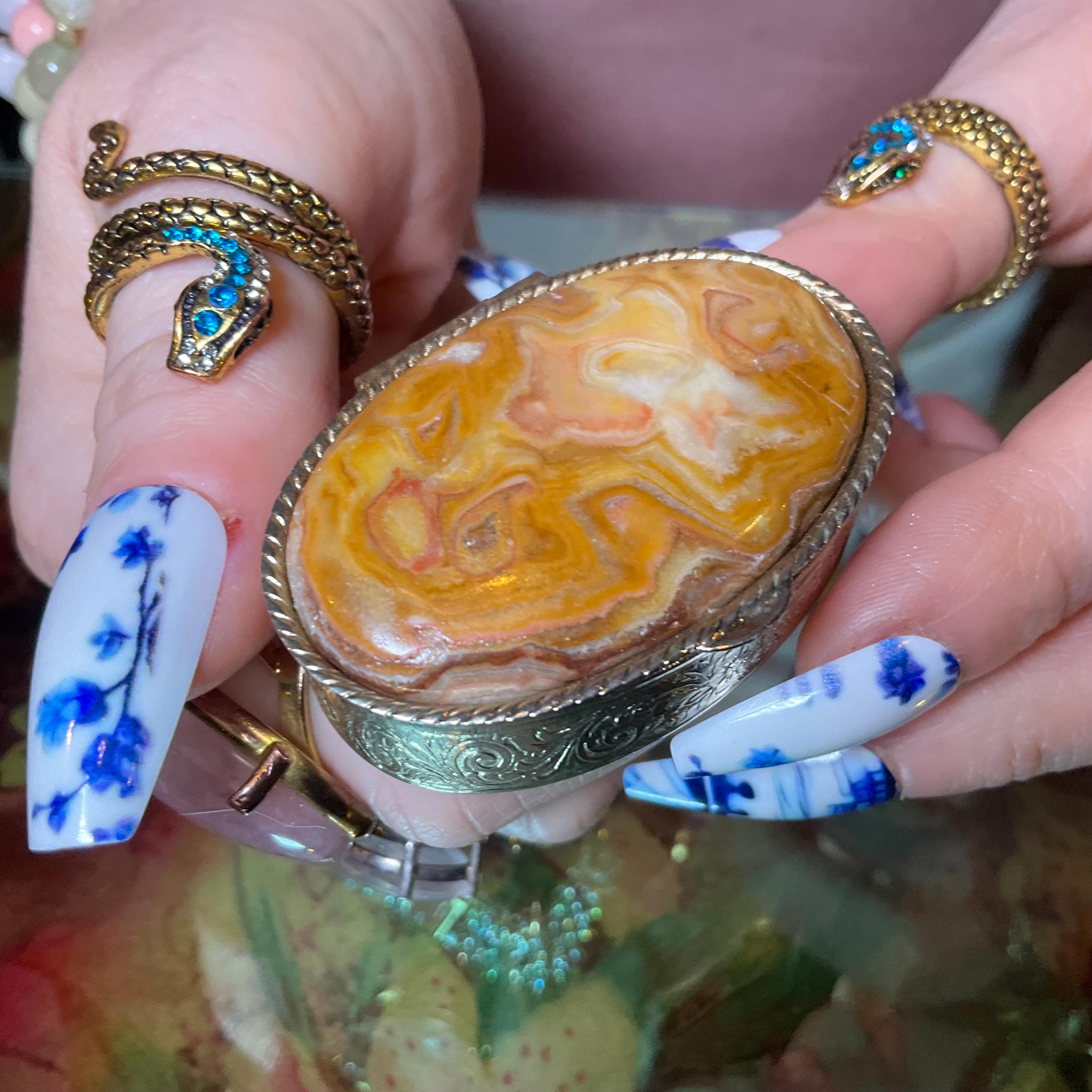 It is crafted to perfection and could be used as a charging box for rings or crystals or a pill box or as a vintage decor decoration.