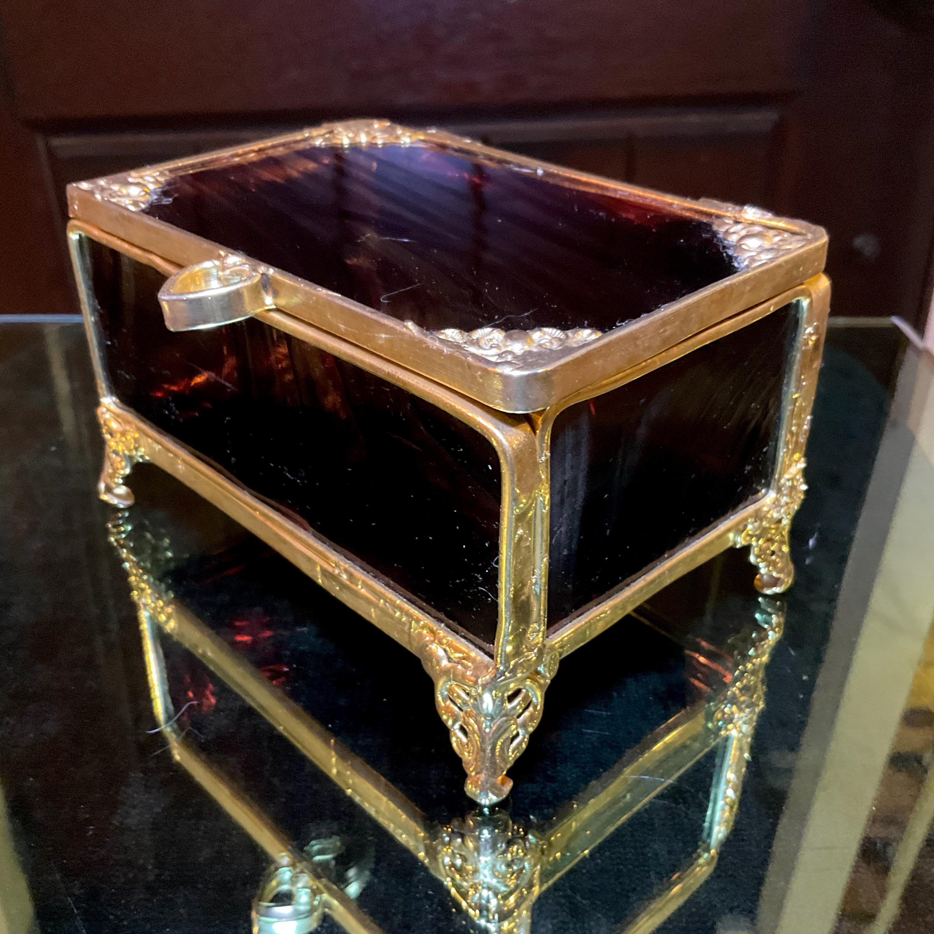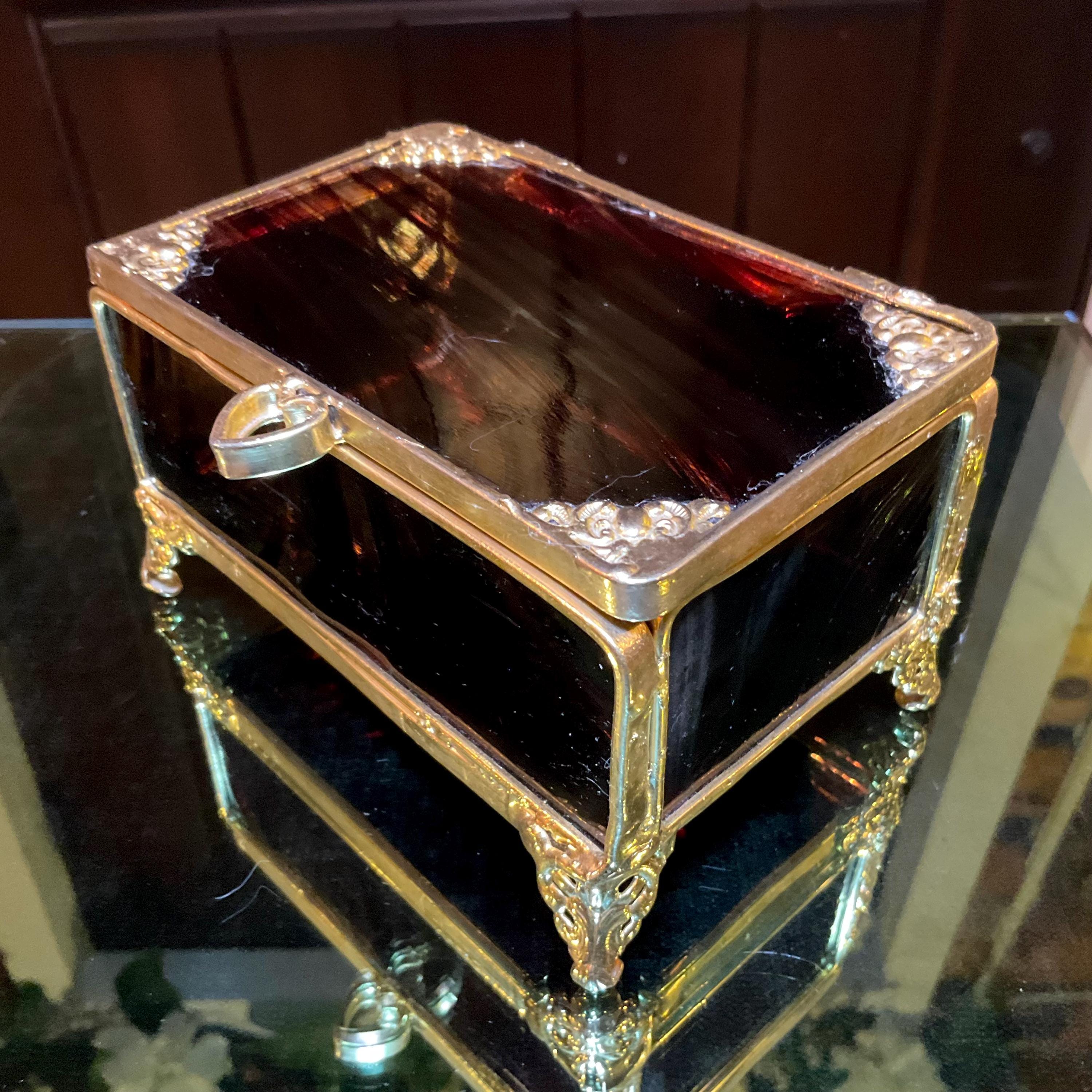 A fantastic and wonderfully designed antique period gilt metal mounted purple Fluorite jewelry box on charming, classic style feet finished with superior quality and detail, no obvious cracks or damage.