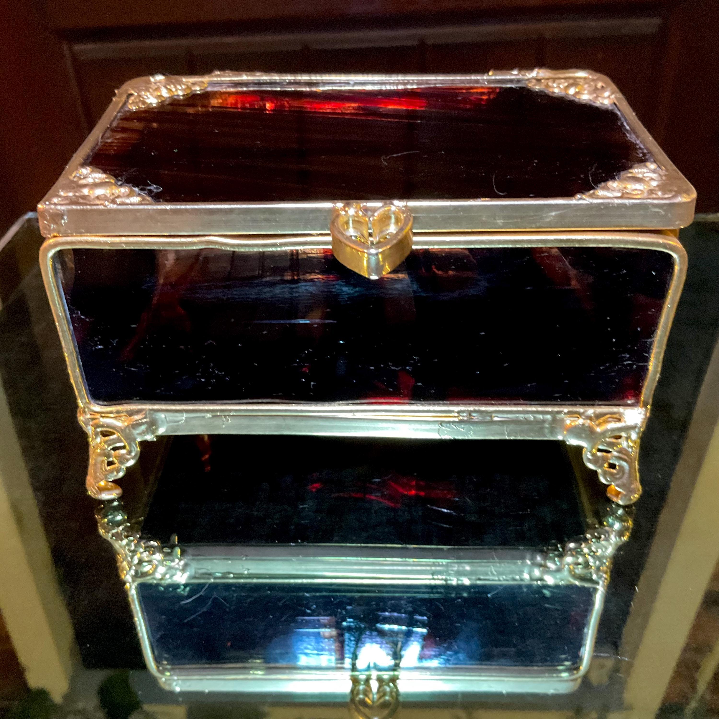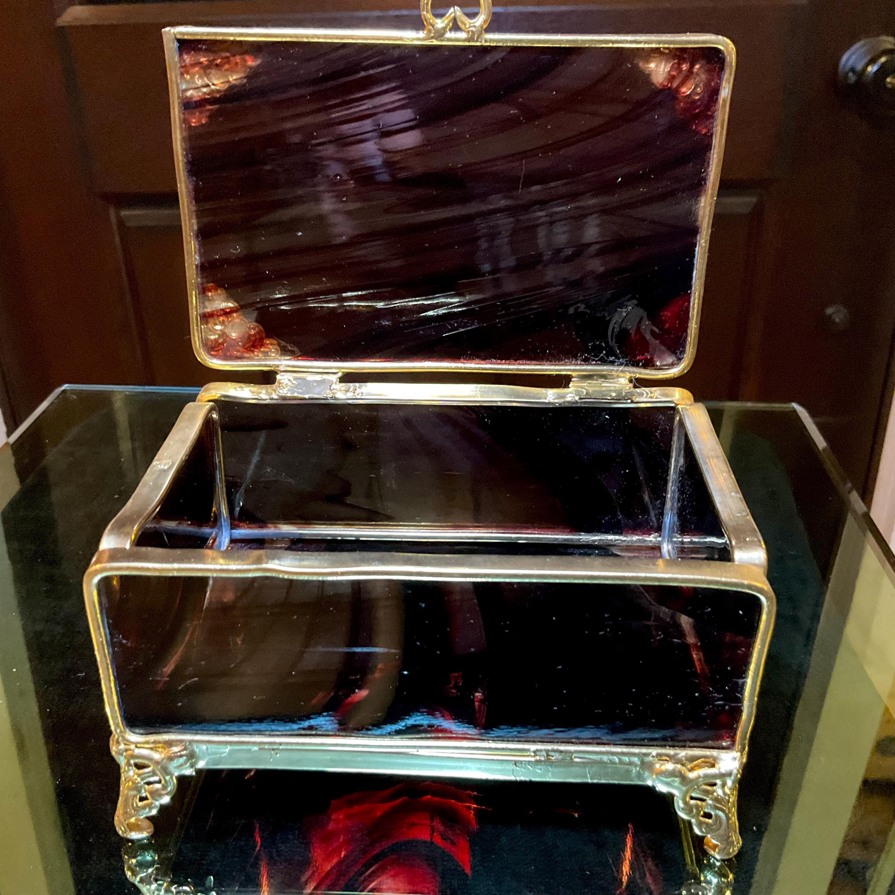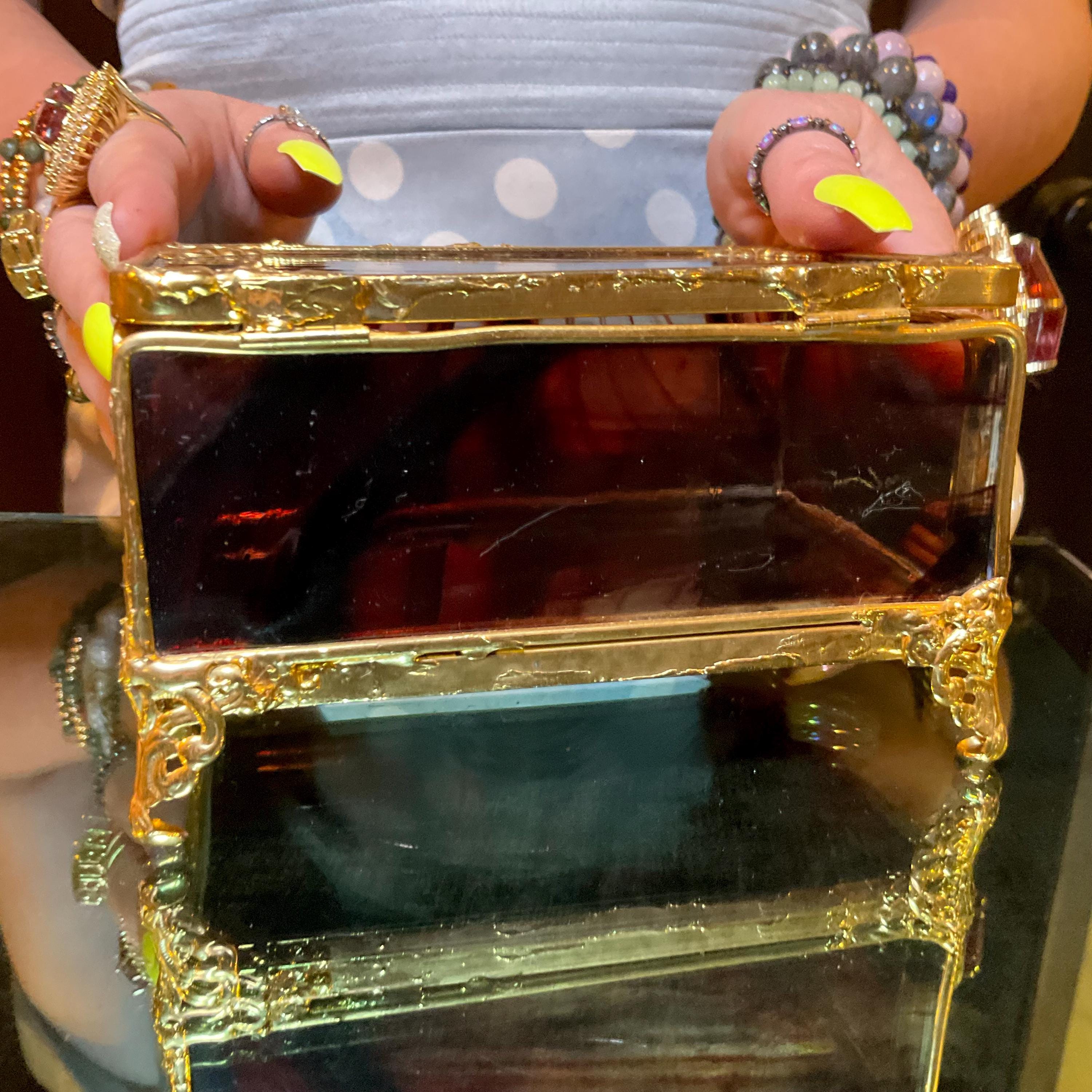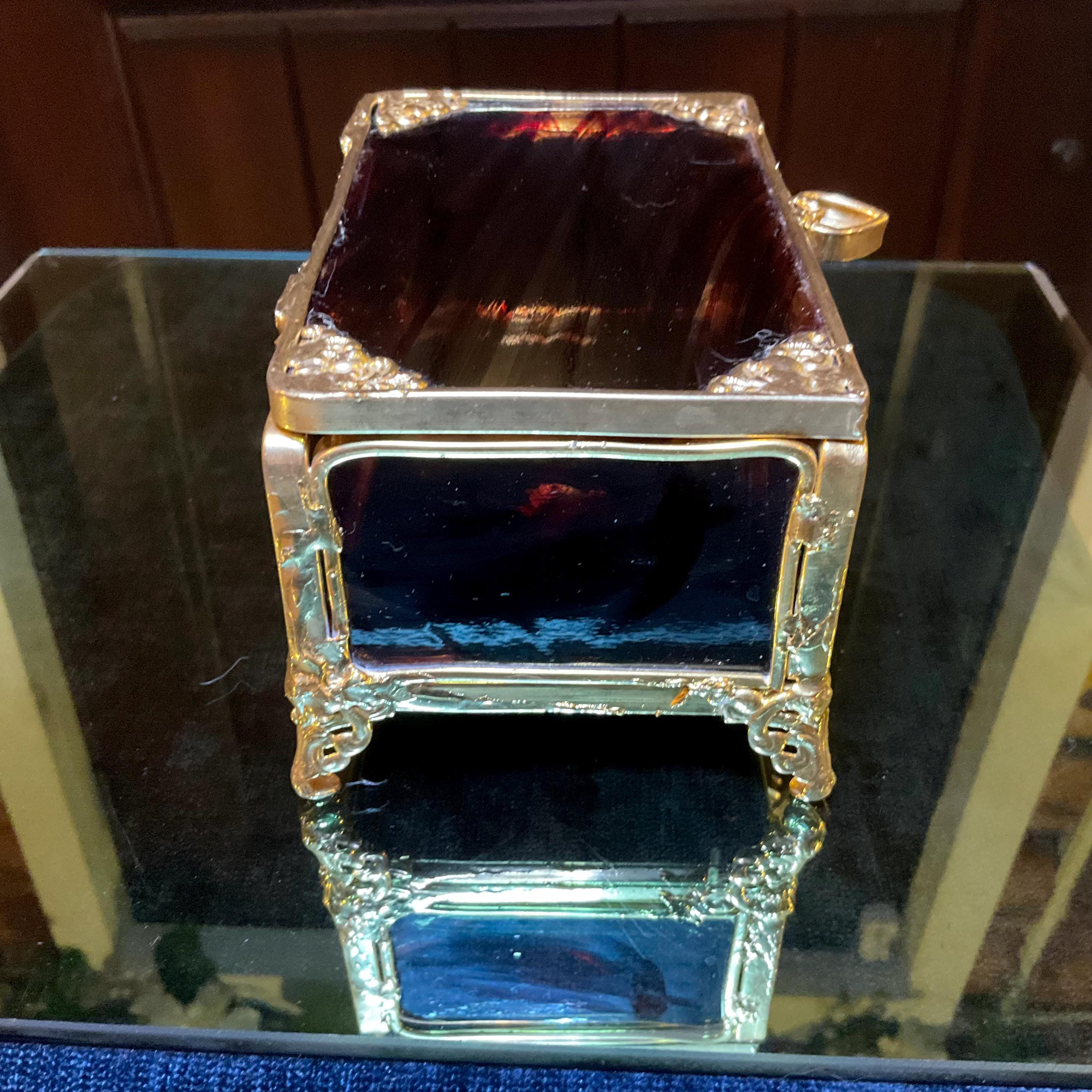 This gilt gold & purple Fluorite jewelry box has the most stunning gorgeous swirling- transparent purple banded patterns throughout.