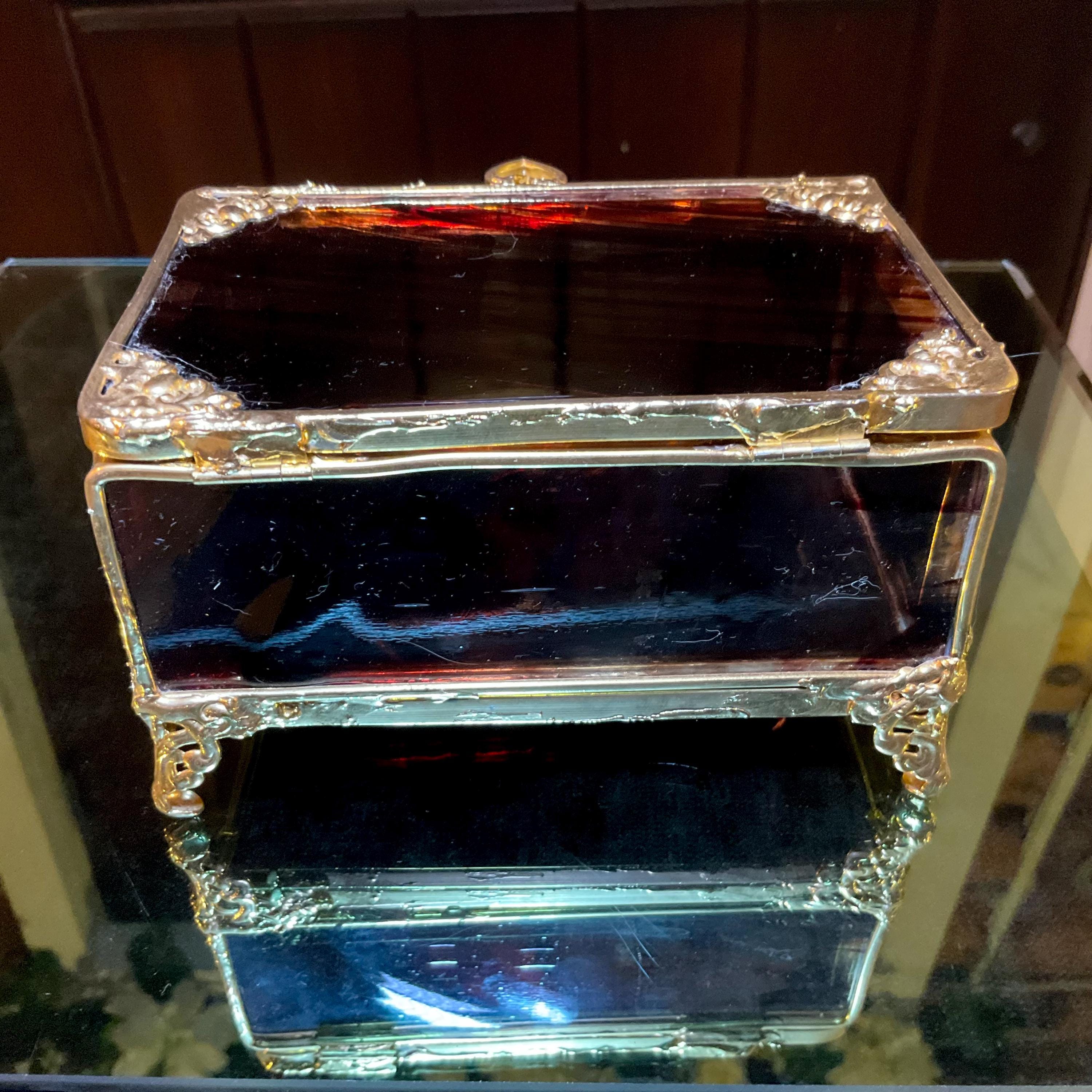 Purple Fluorite Antique French 19th Century Jewelry Box ~ 5" Long Vintage Gold Gilt Metal Display Box Swirling Transparent Colors Museum Quality