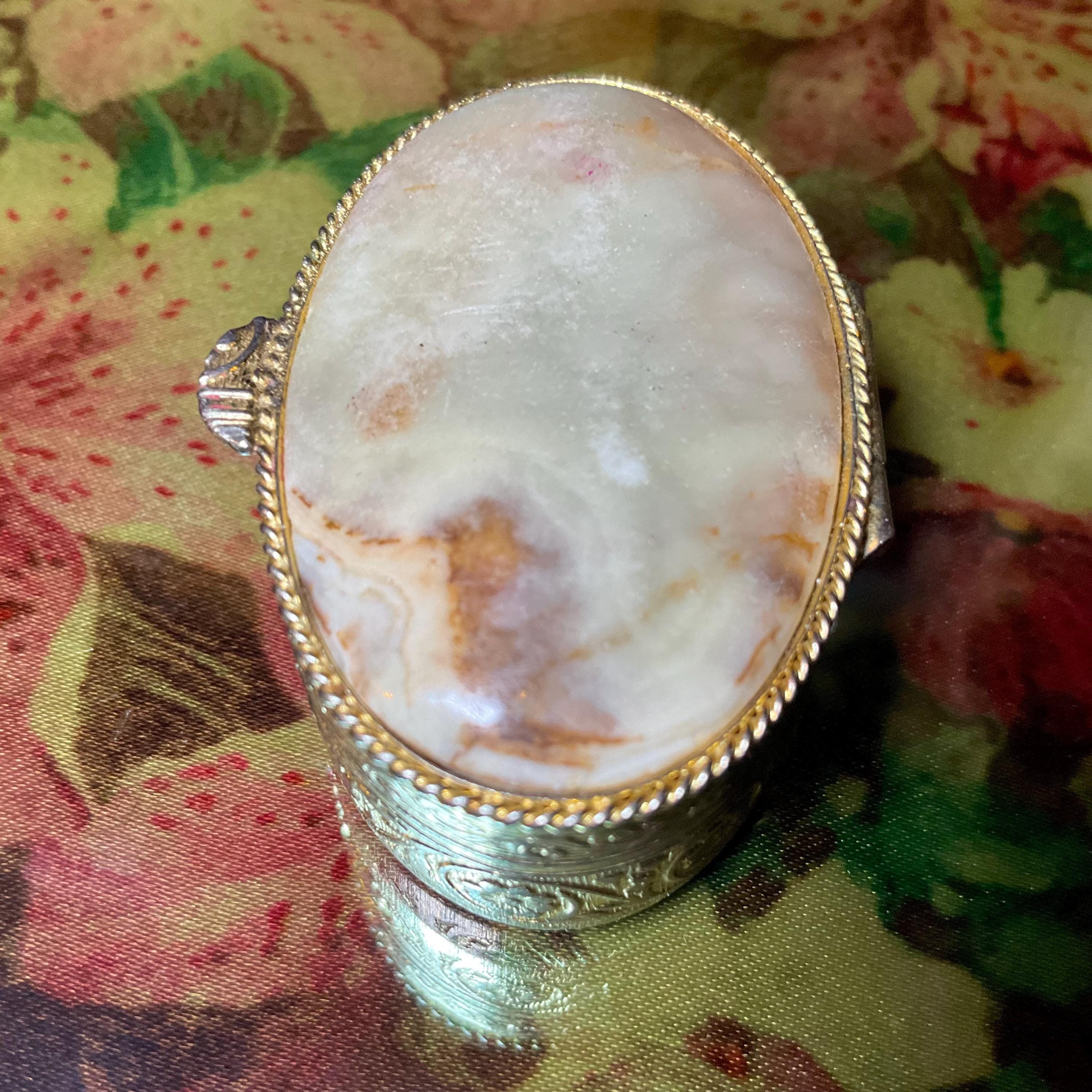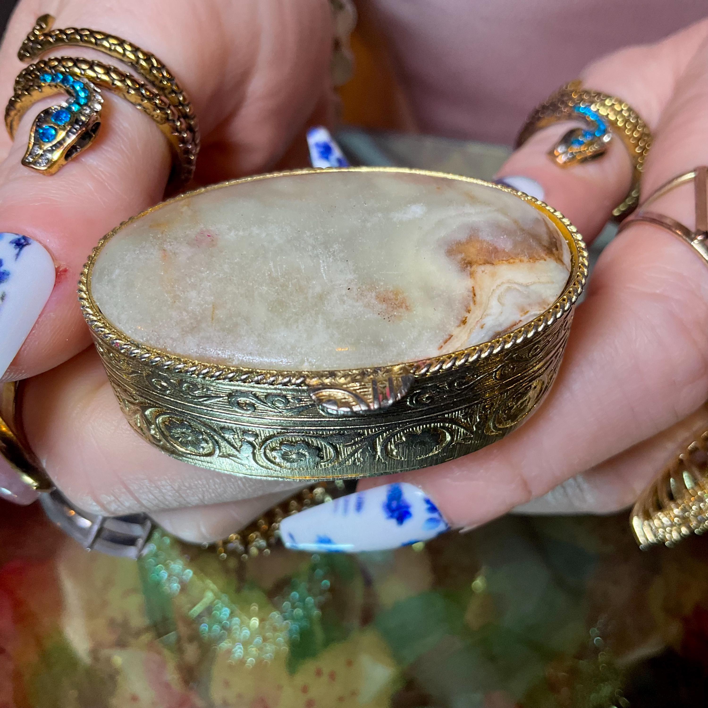 Afghan Jade Pill Box with Lid ~ 2" Oval ~ Handmade Vintage Antique Golden Display Box ~ Swirling Golden Yellow Colors