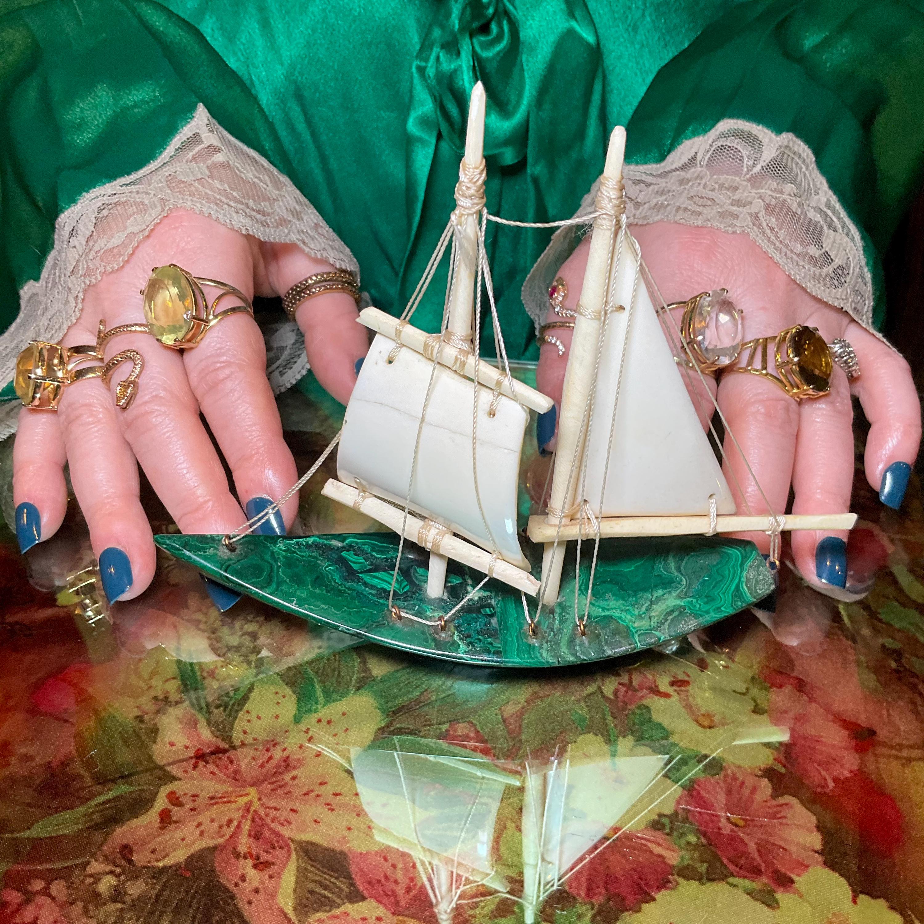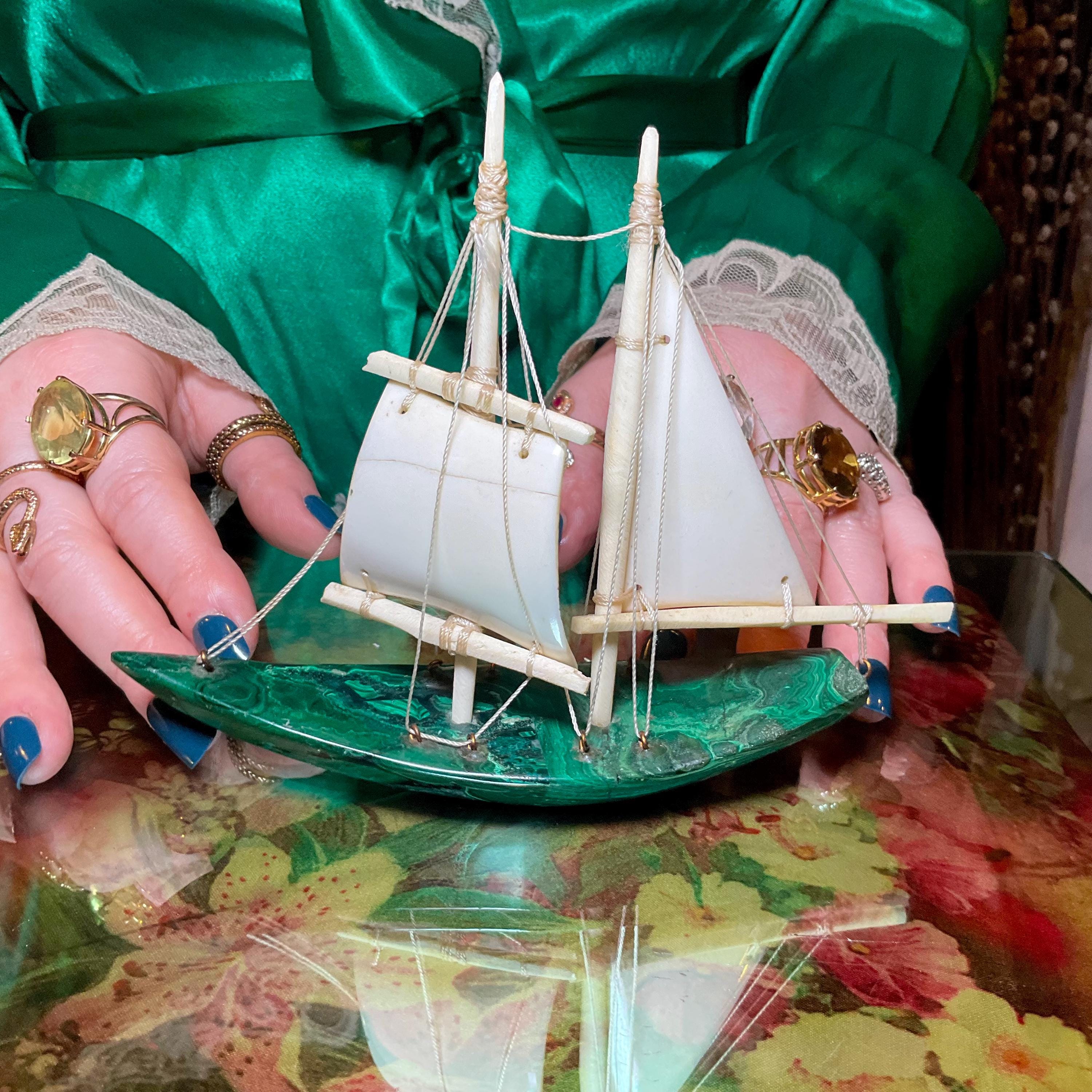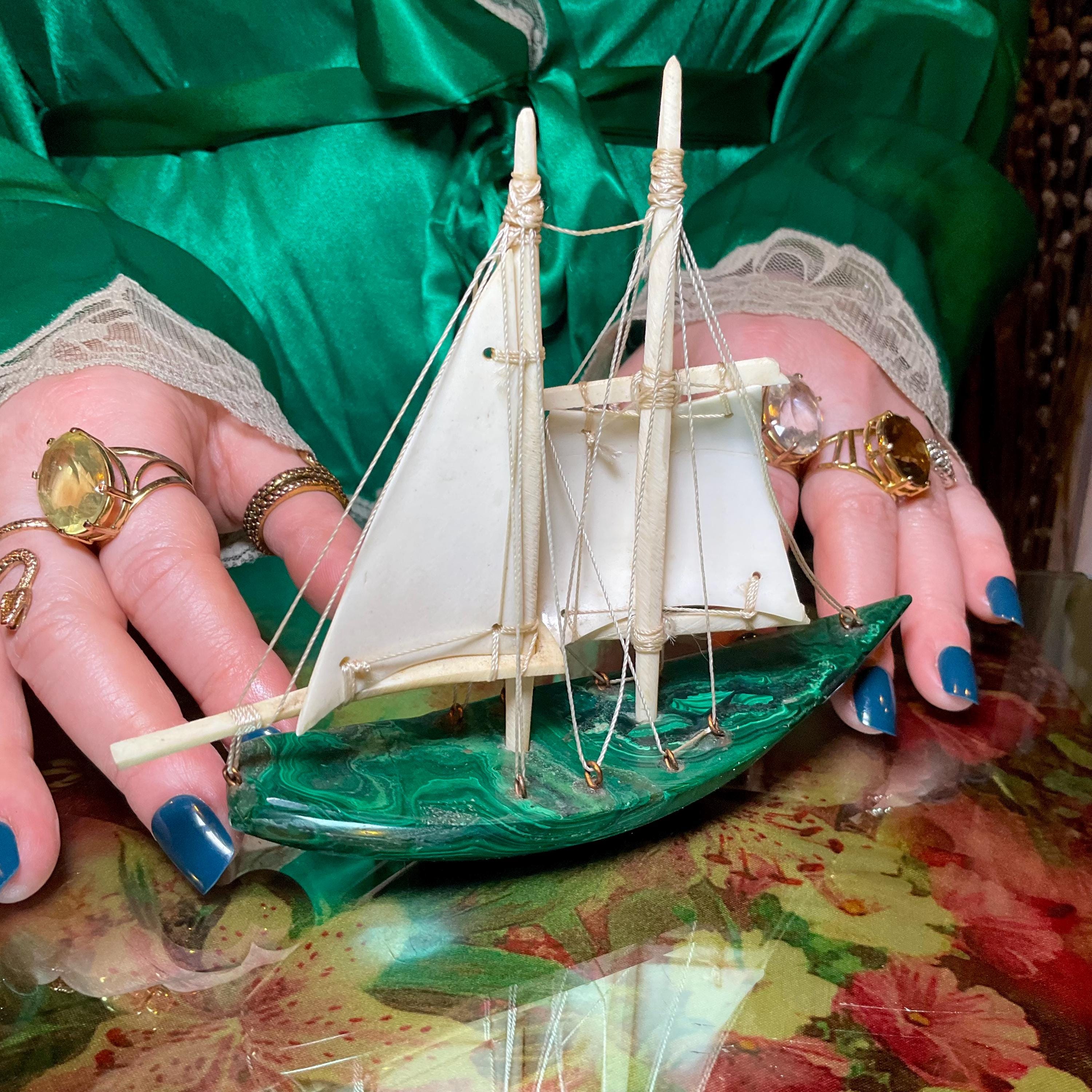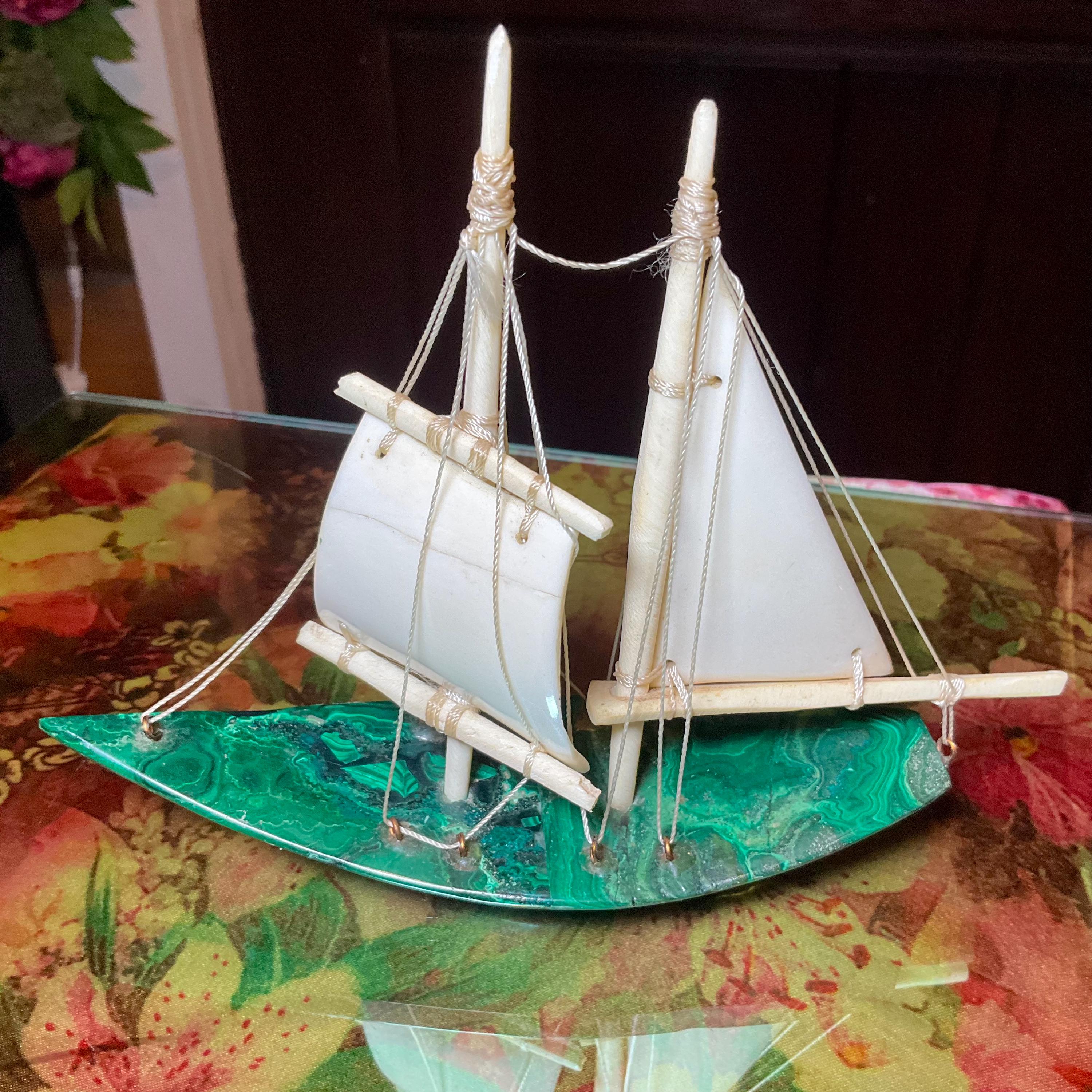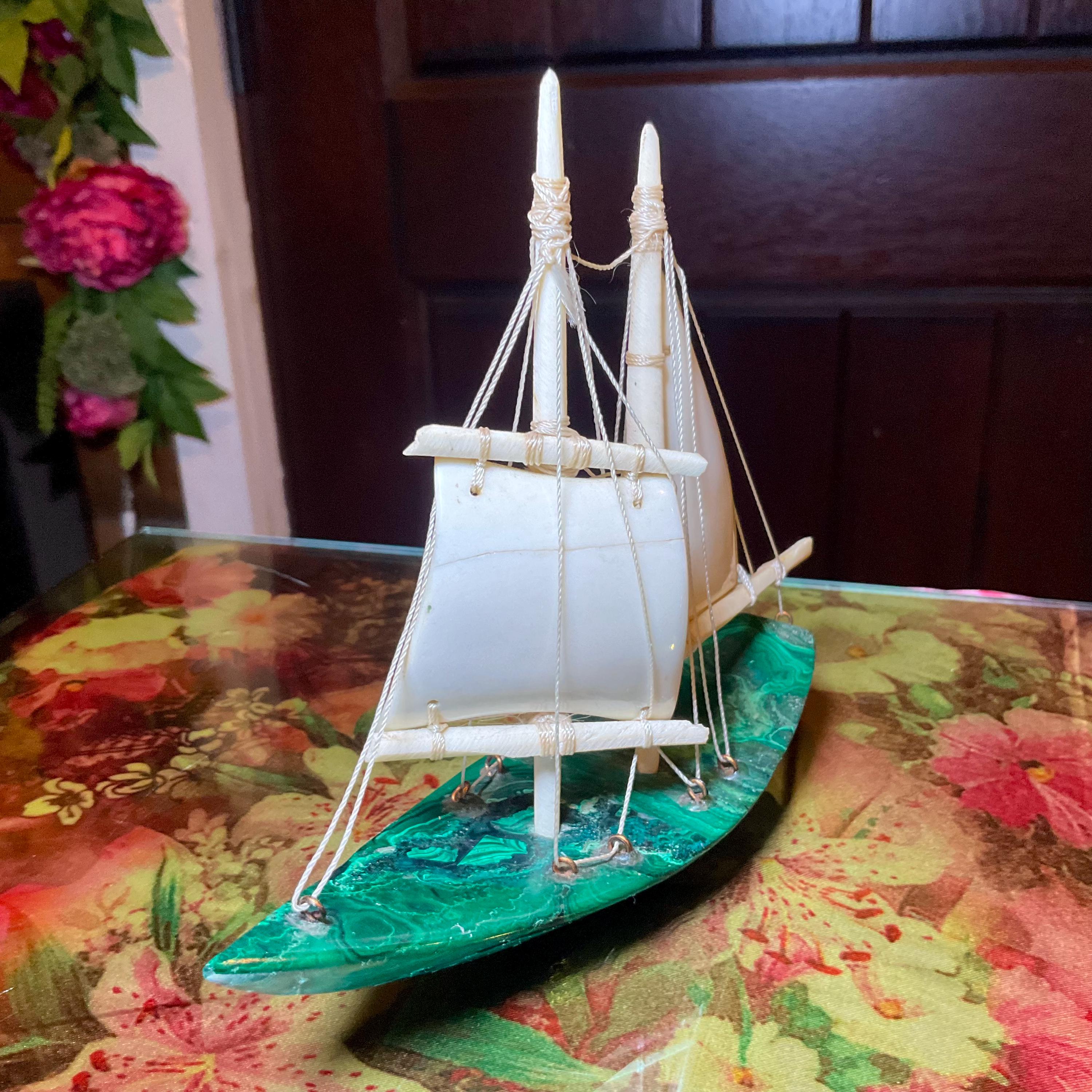If you love vintage expertly hand carved Malachite, then this Malachite sailboat is for you.