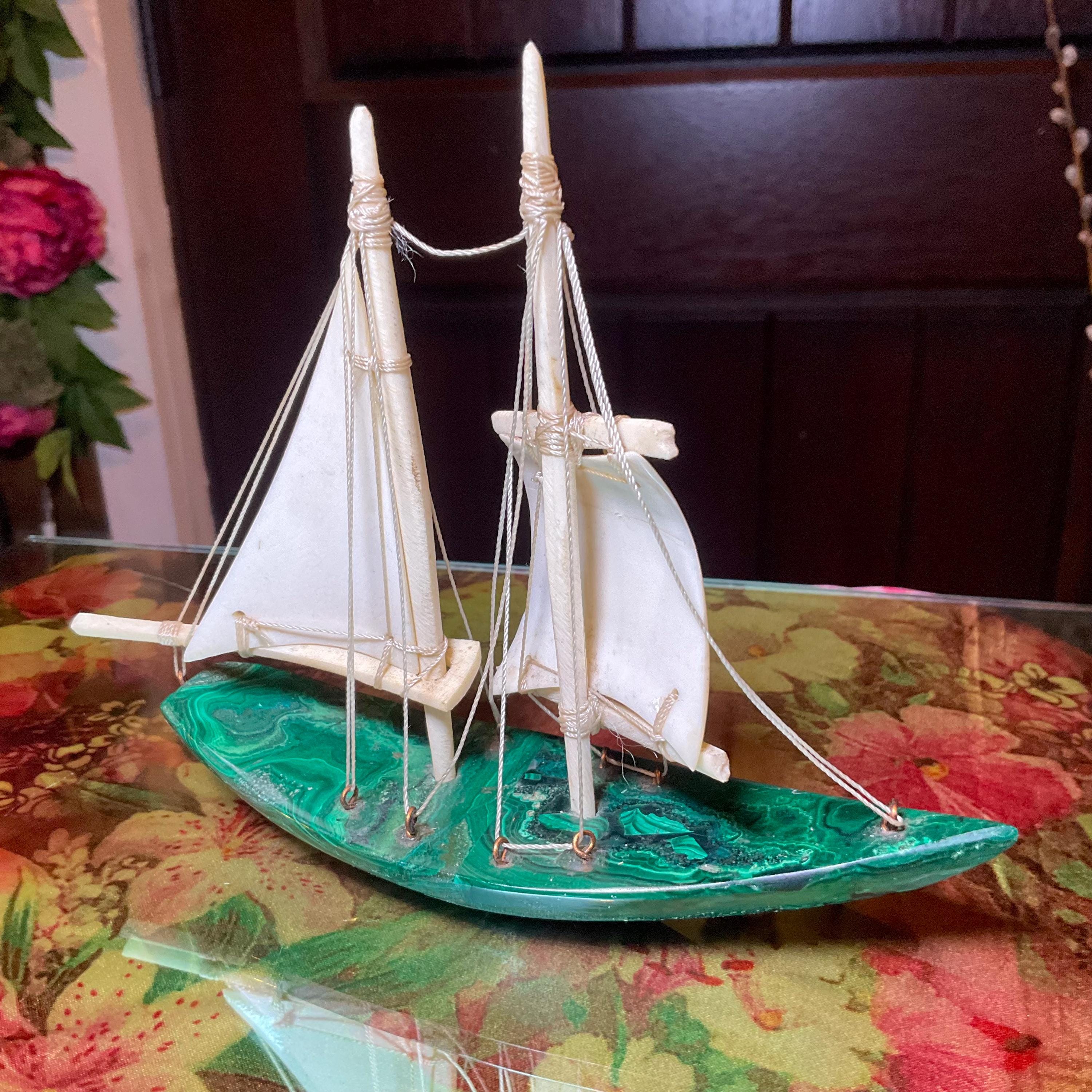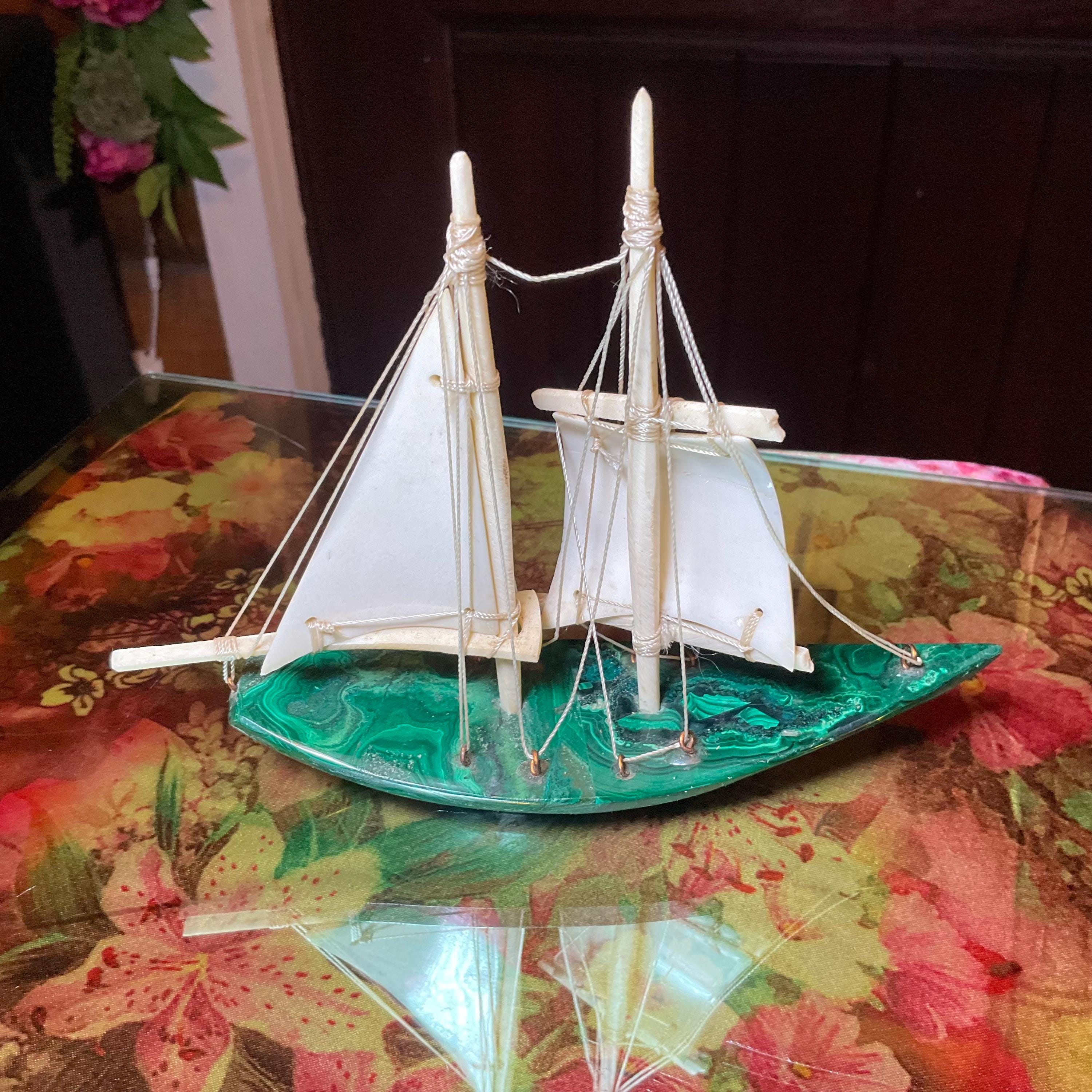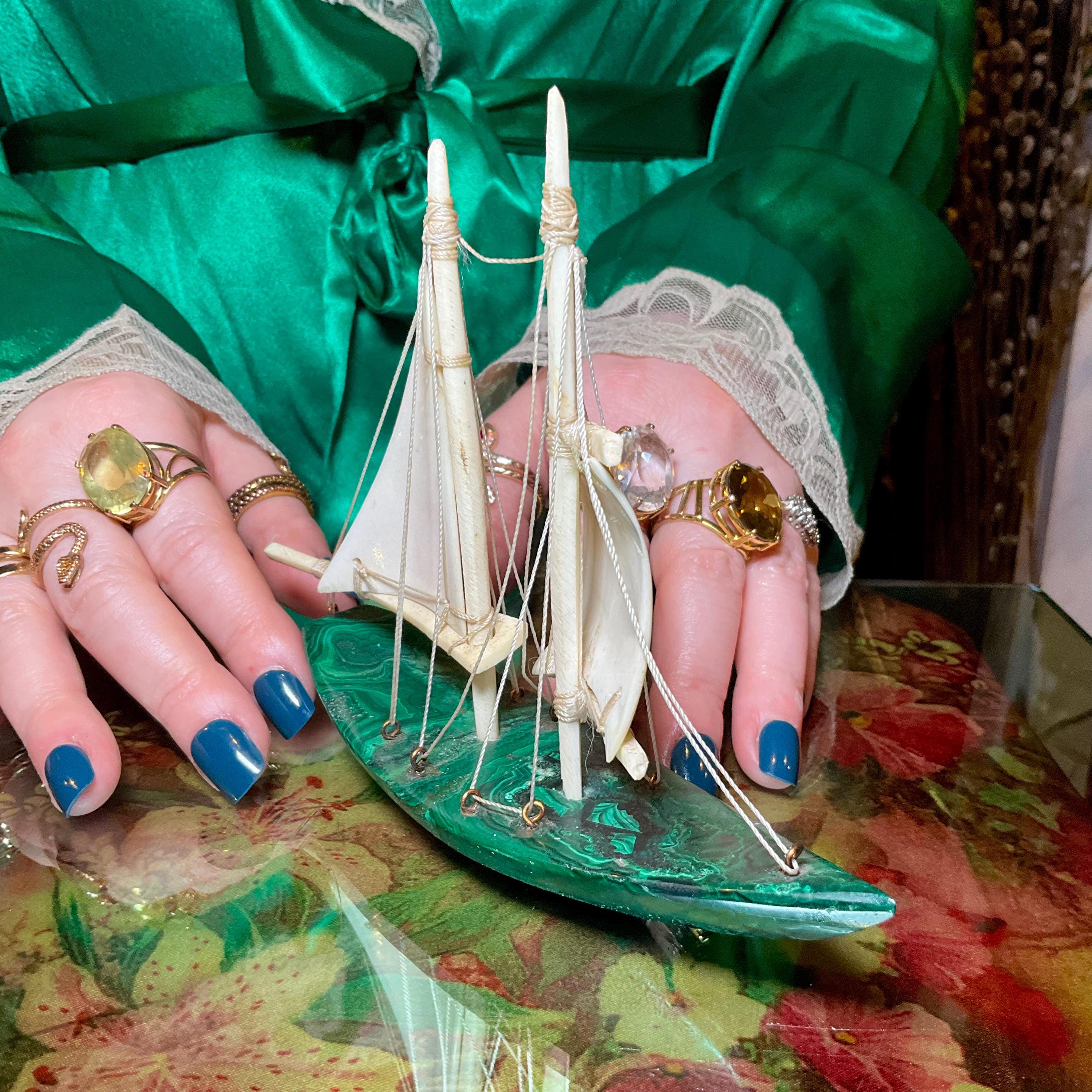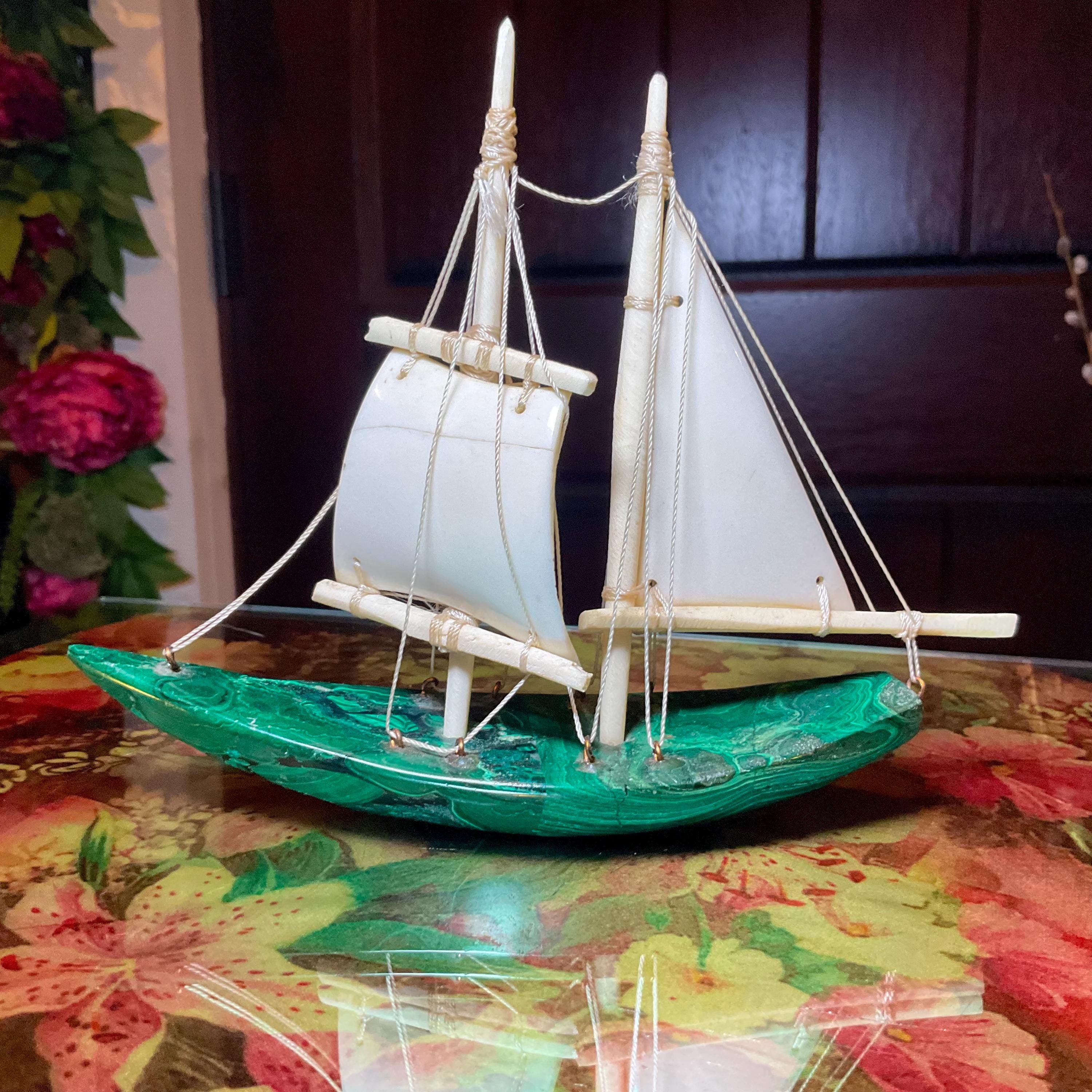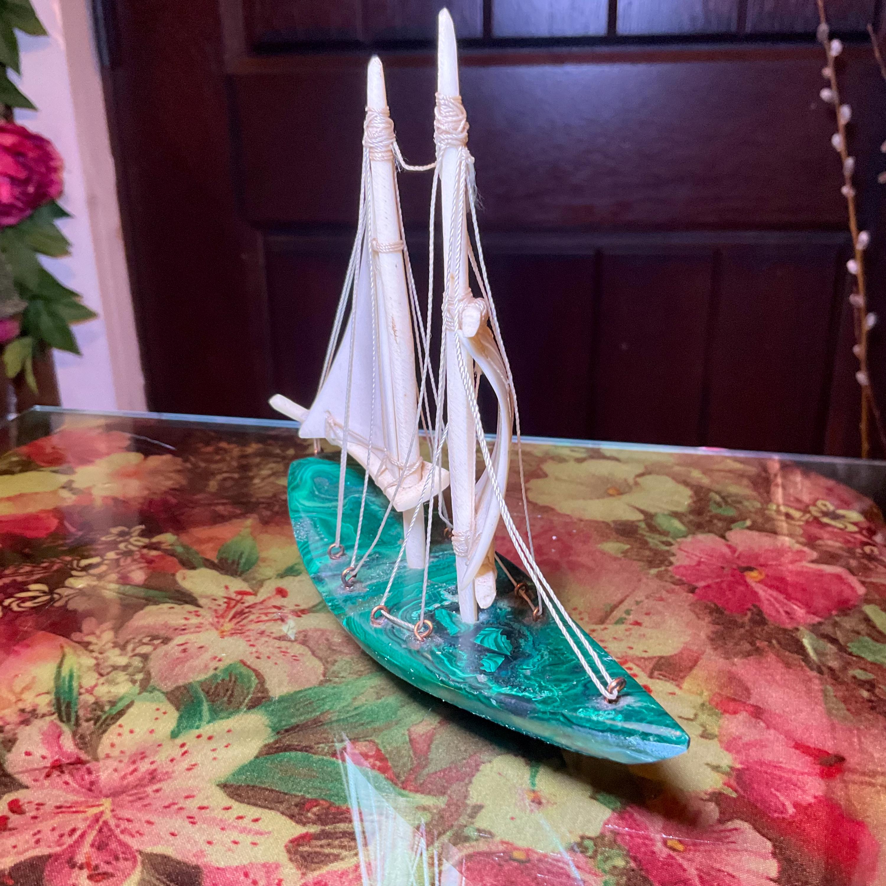 If you love vintage expertly hand carved Malachite, then this Malachite sailboat is for you.