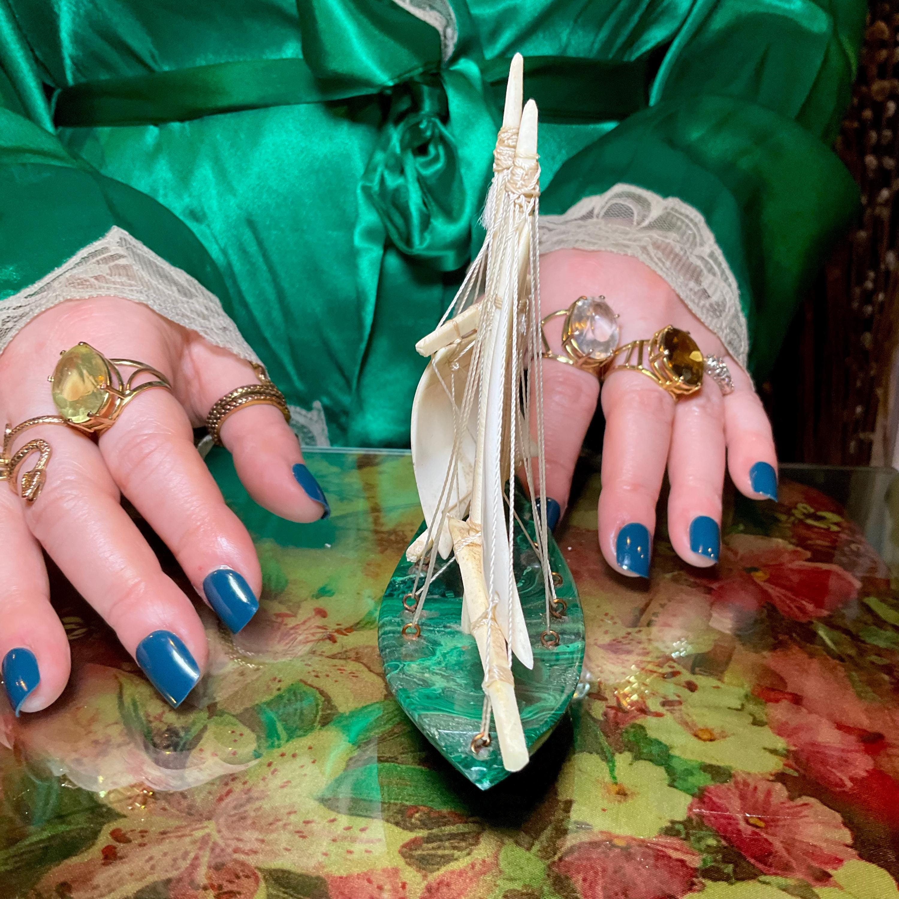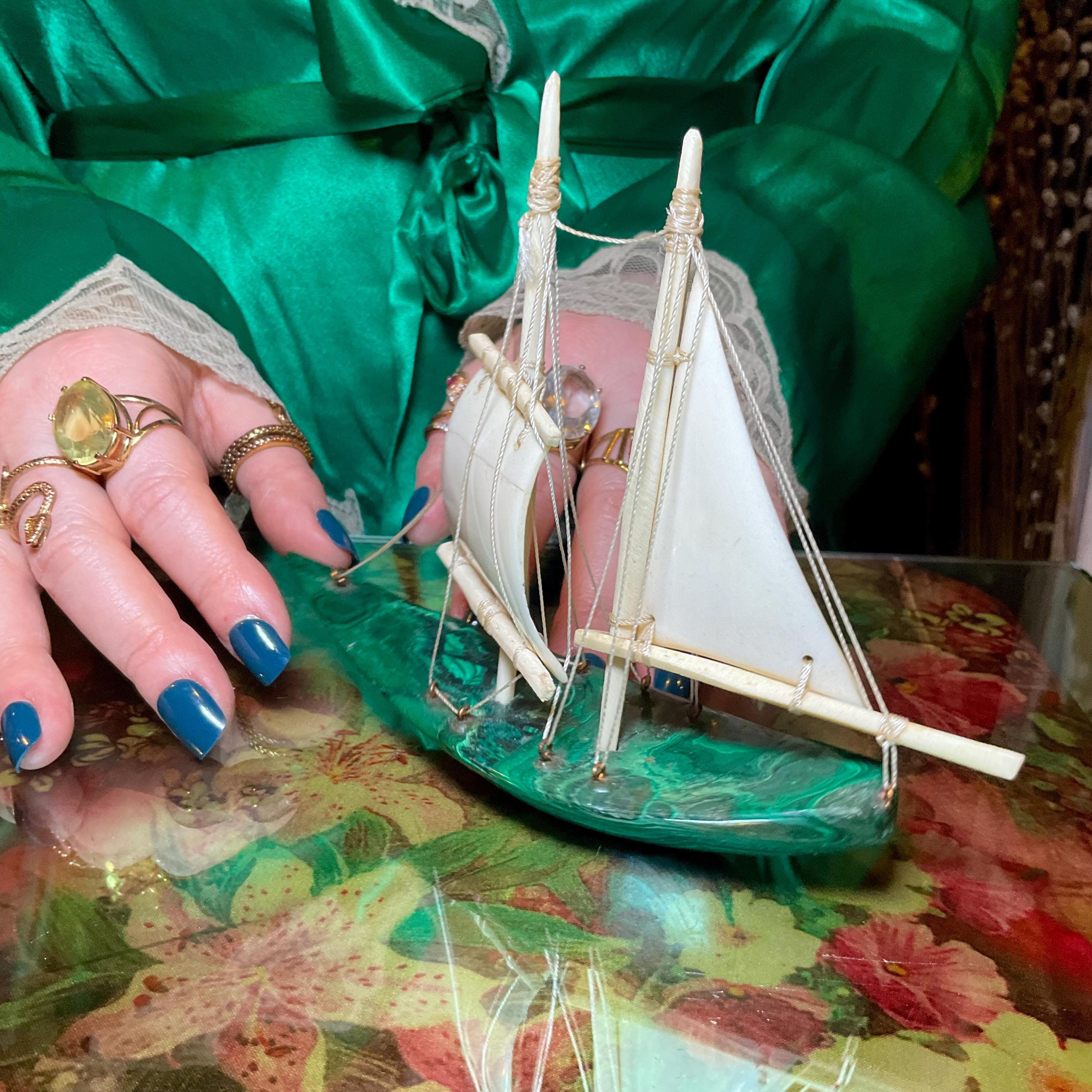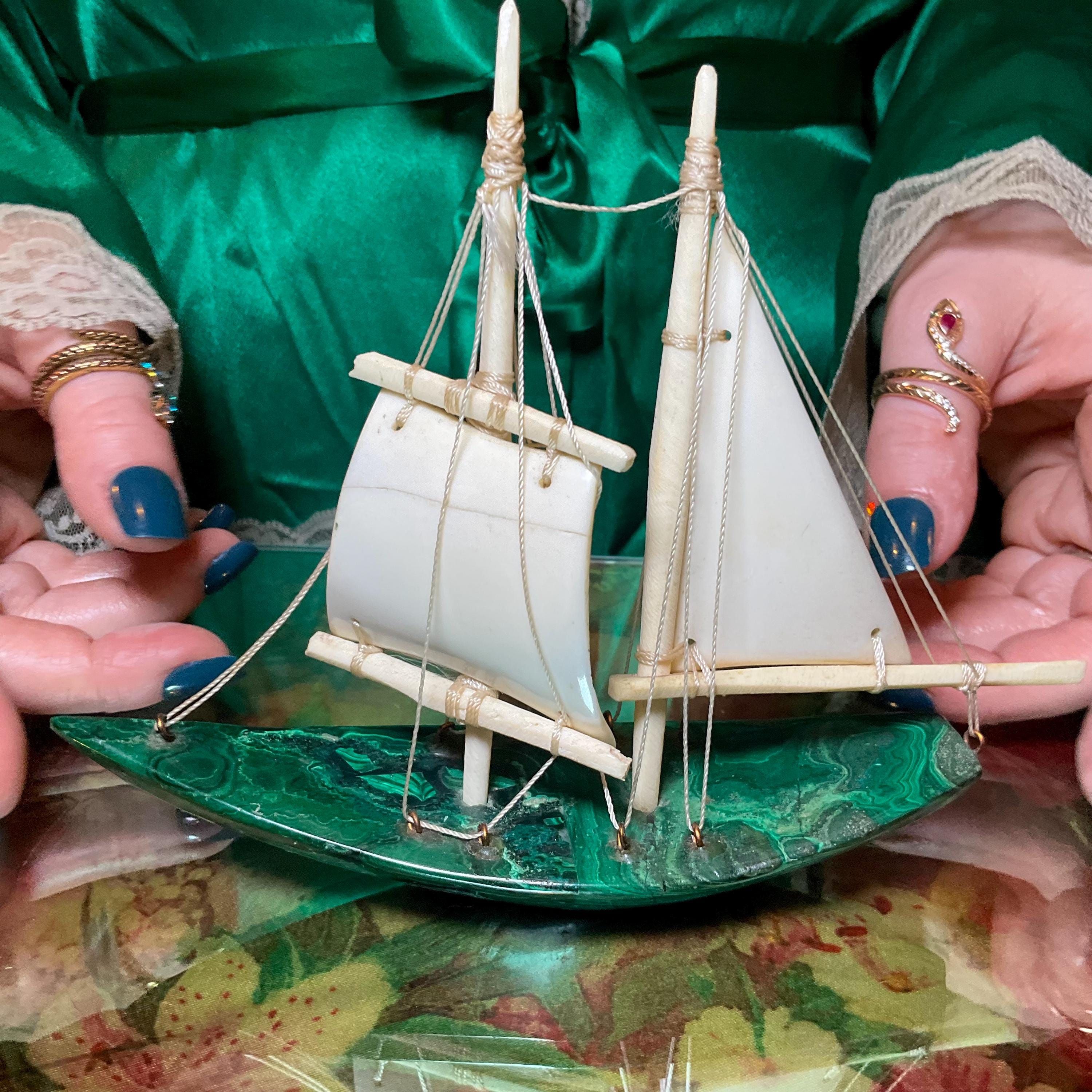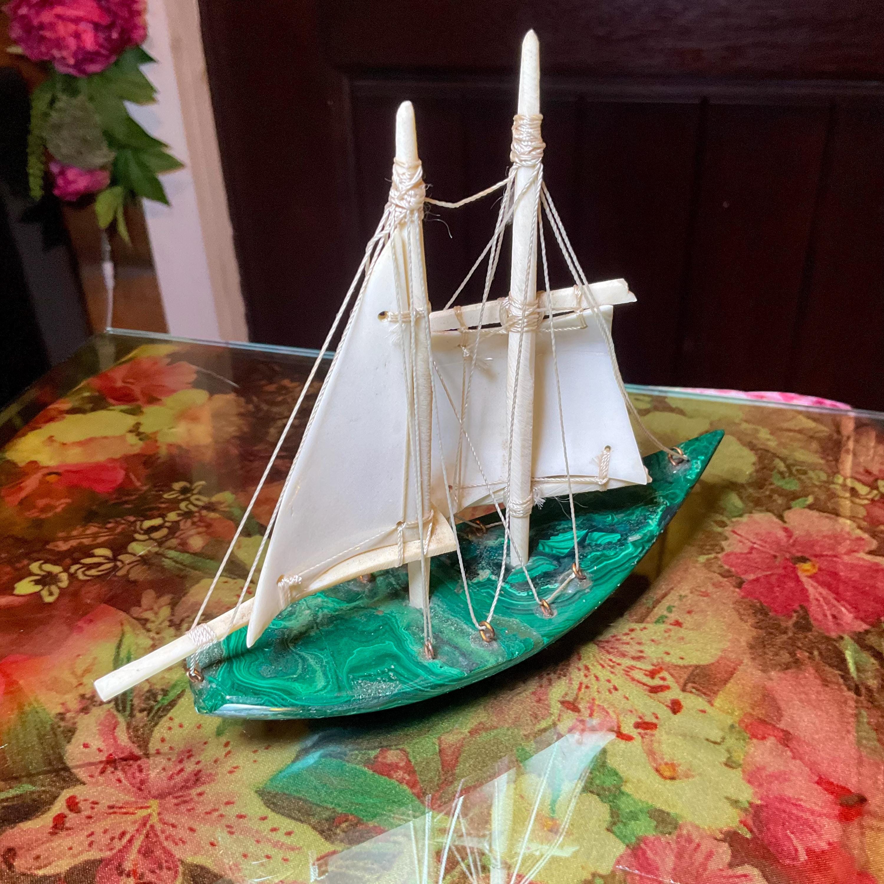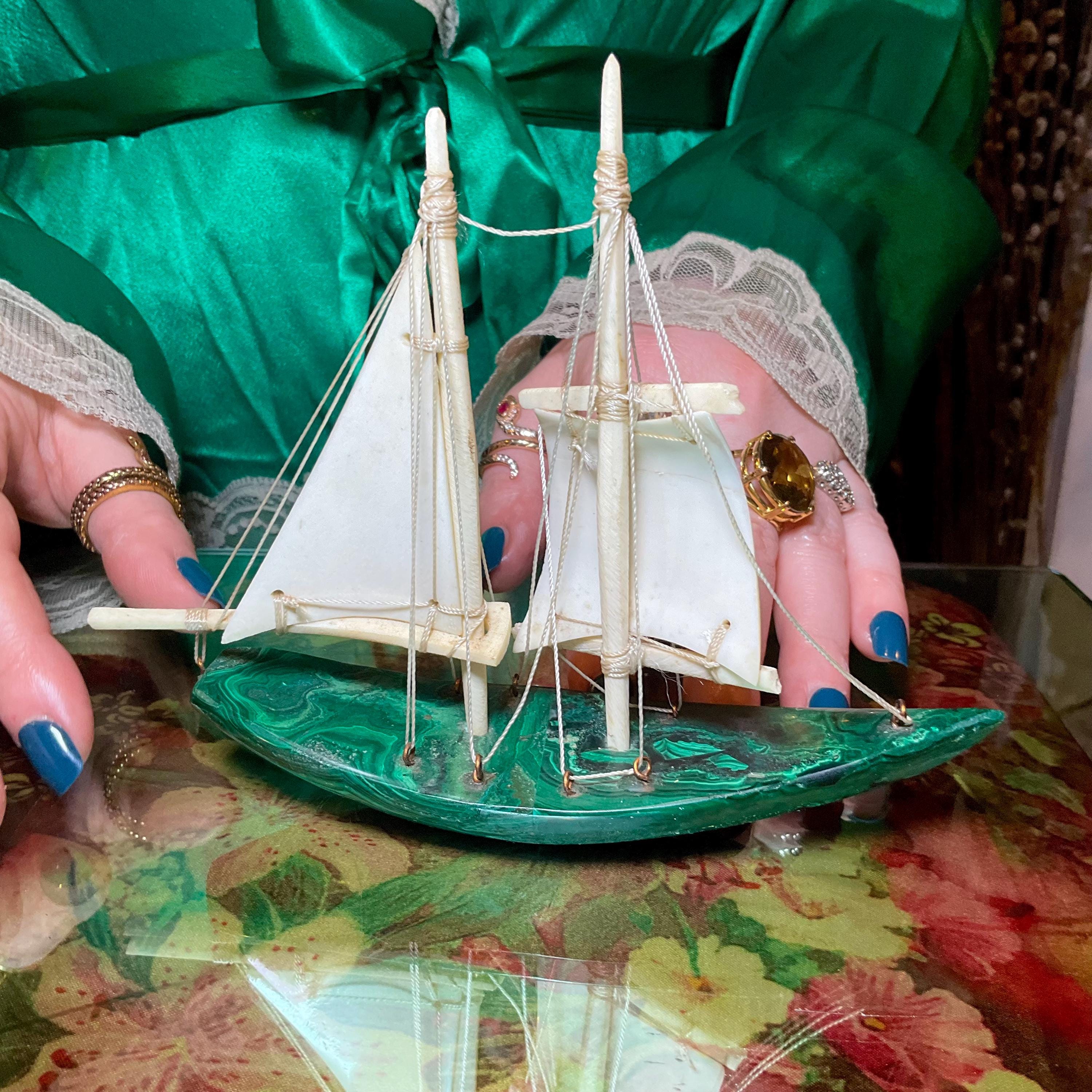 If you love vintage expertly hand carved Malachite, then this Malachite sailboat is for you.