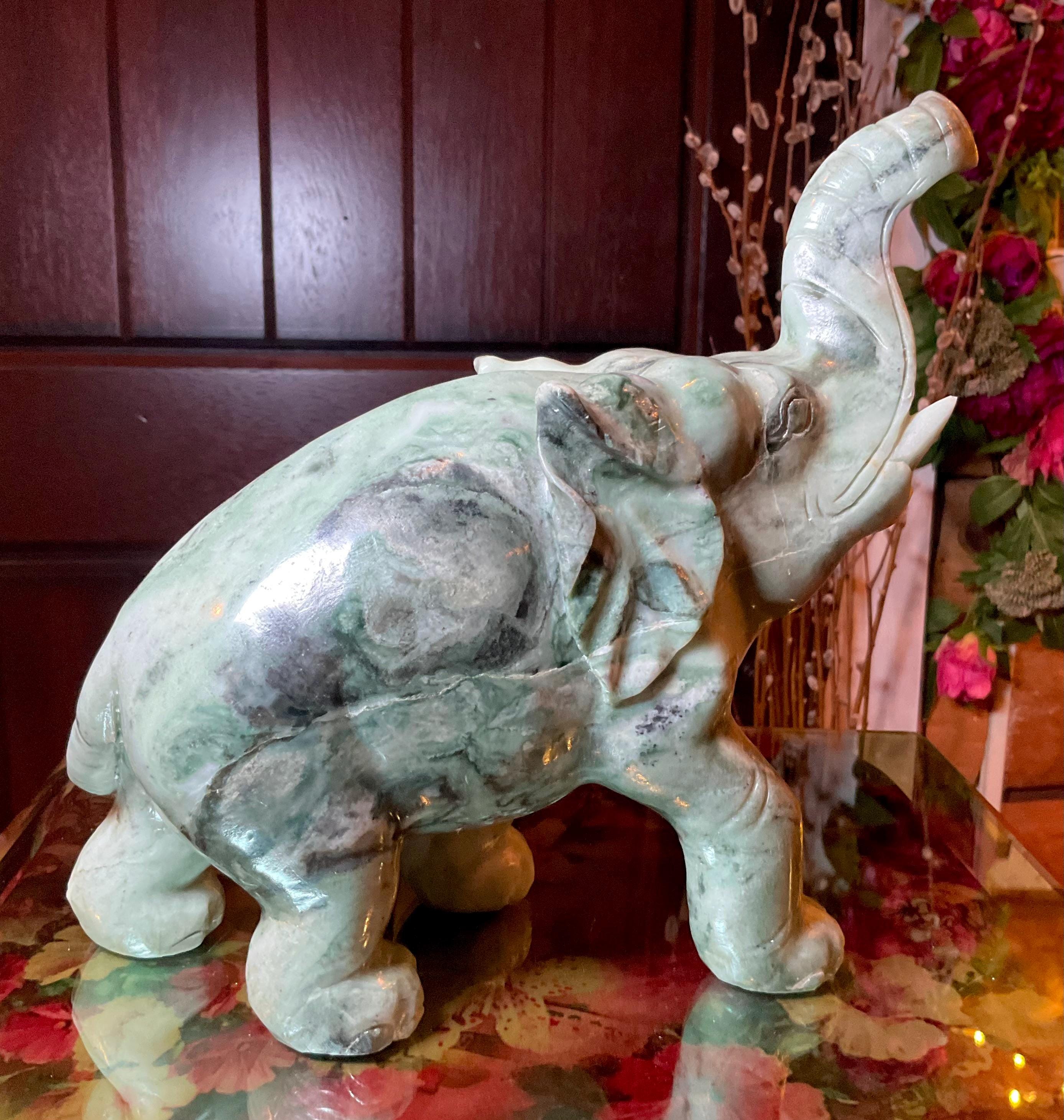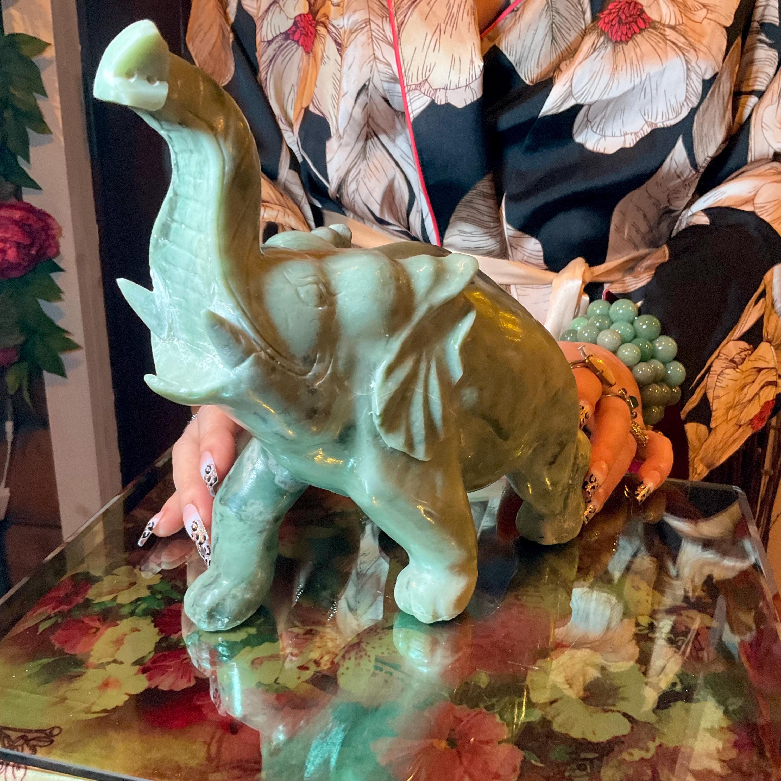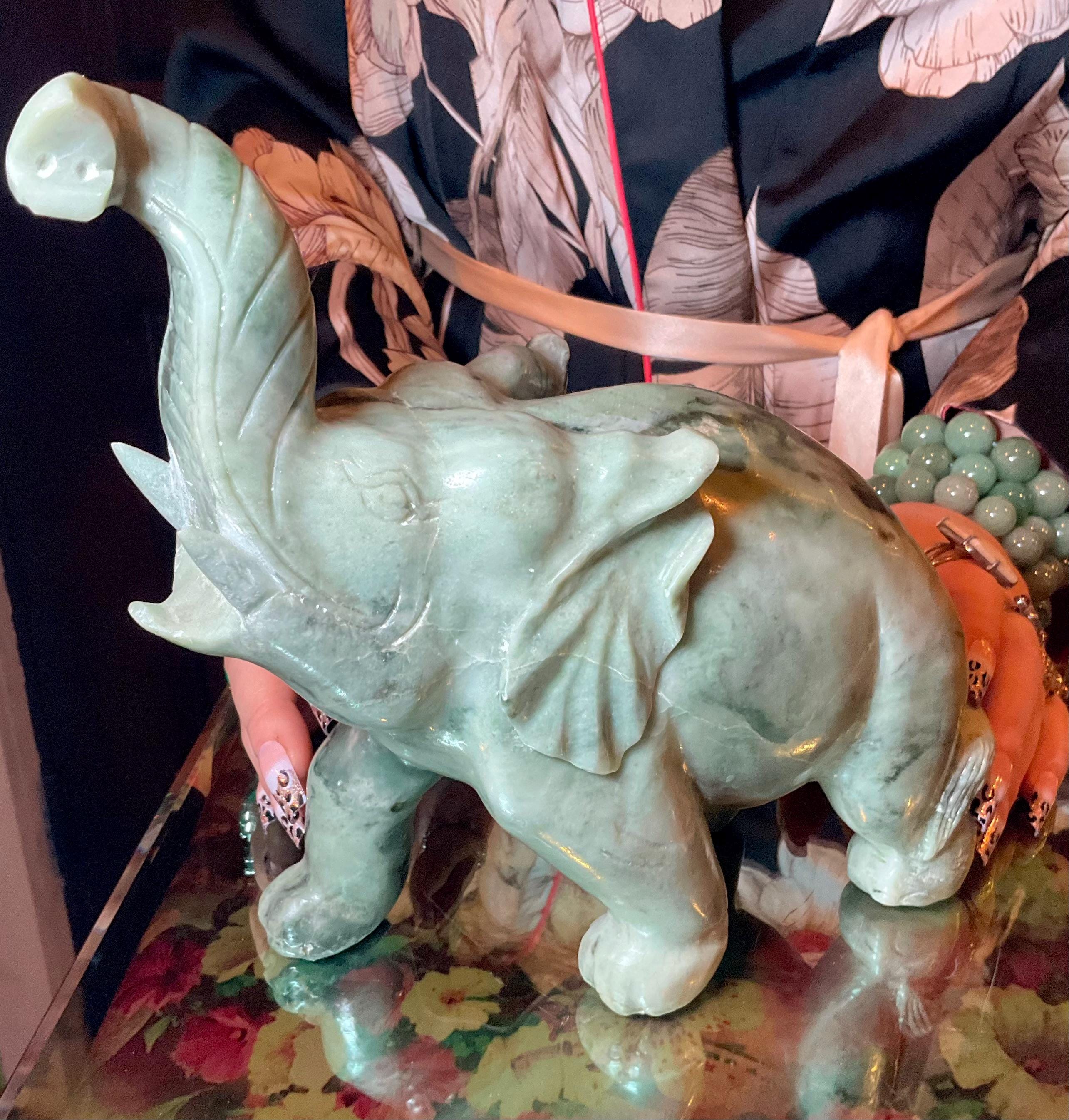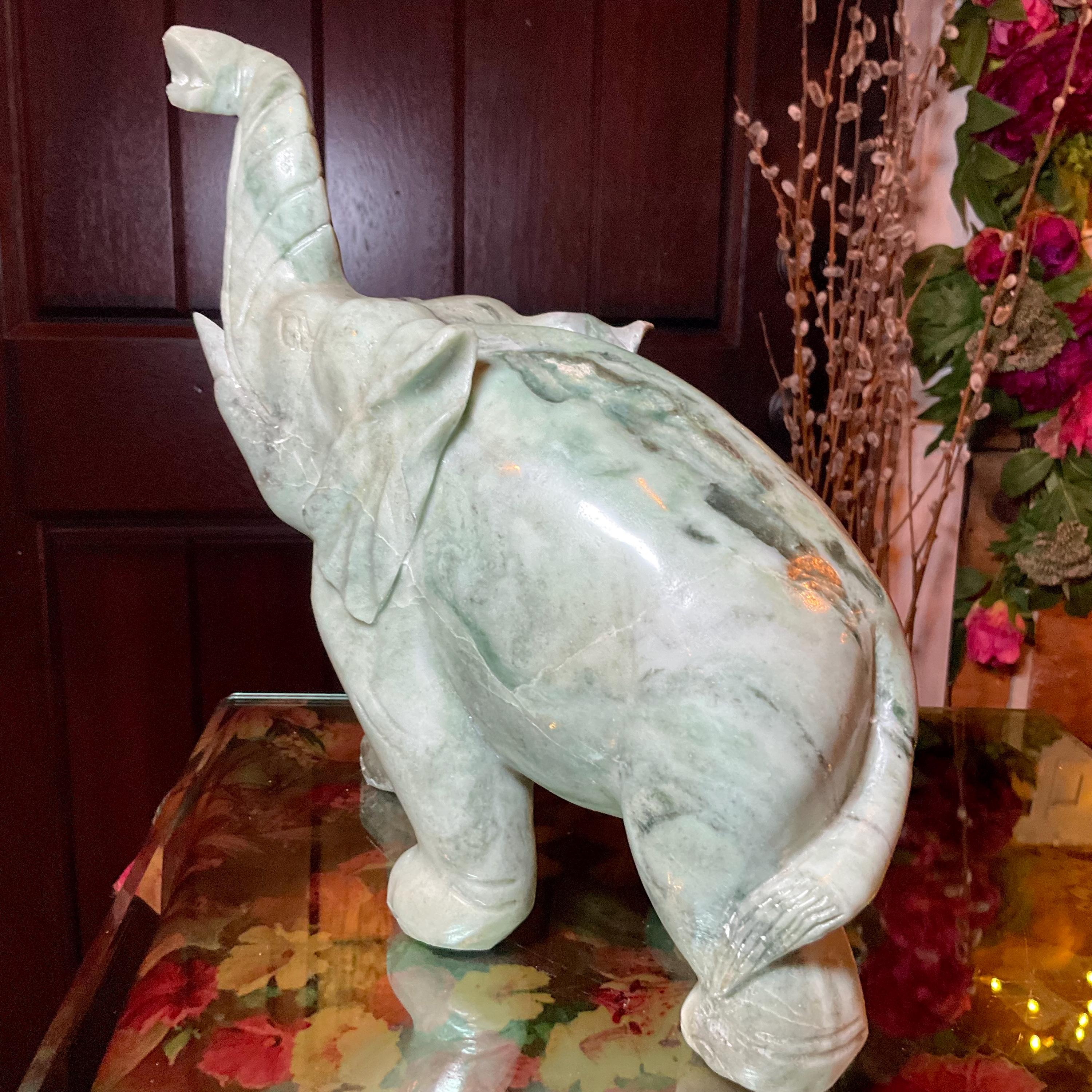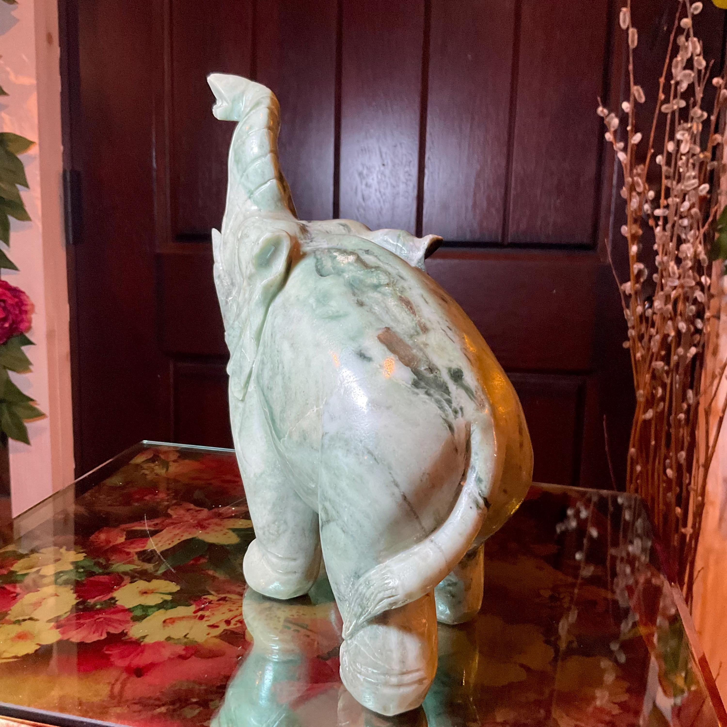 This is a one-of-a-kind carved vintage, Jade Elephant.