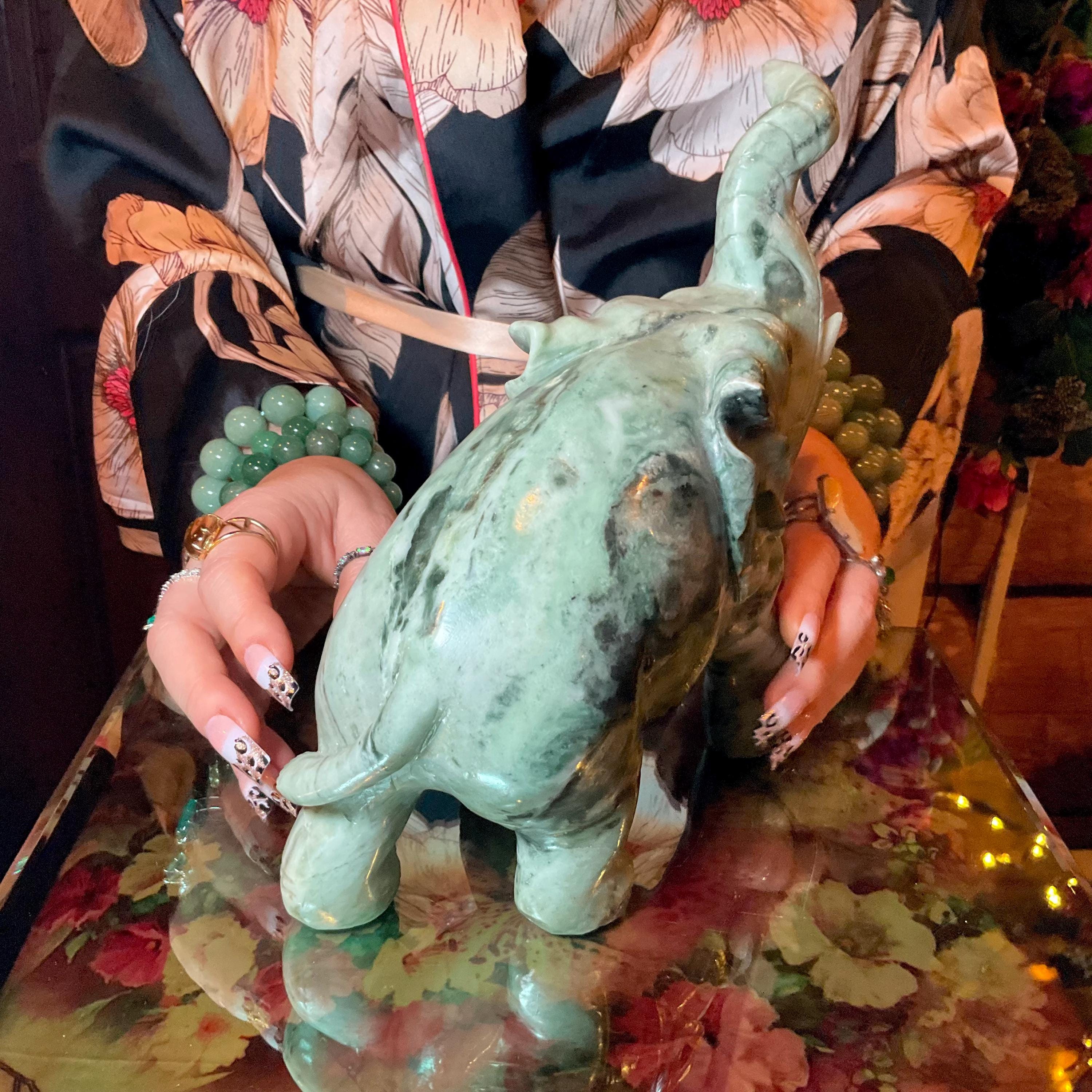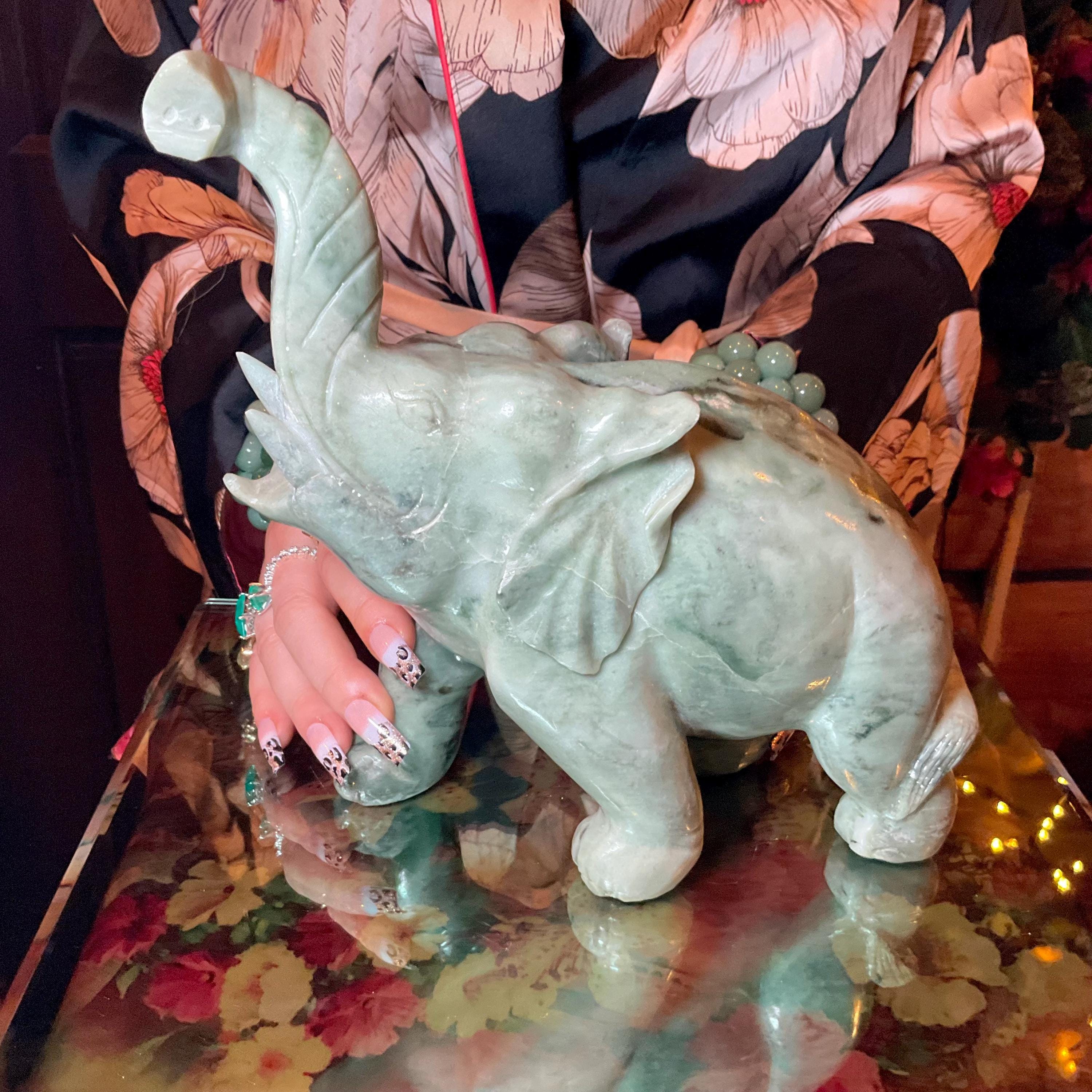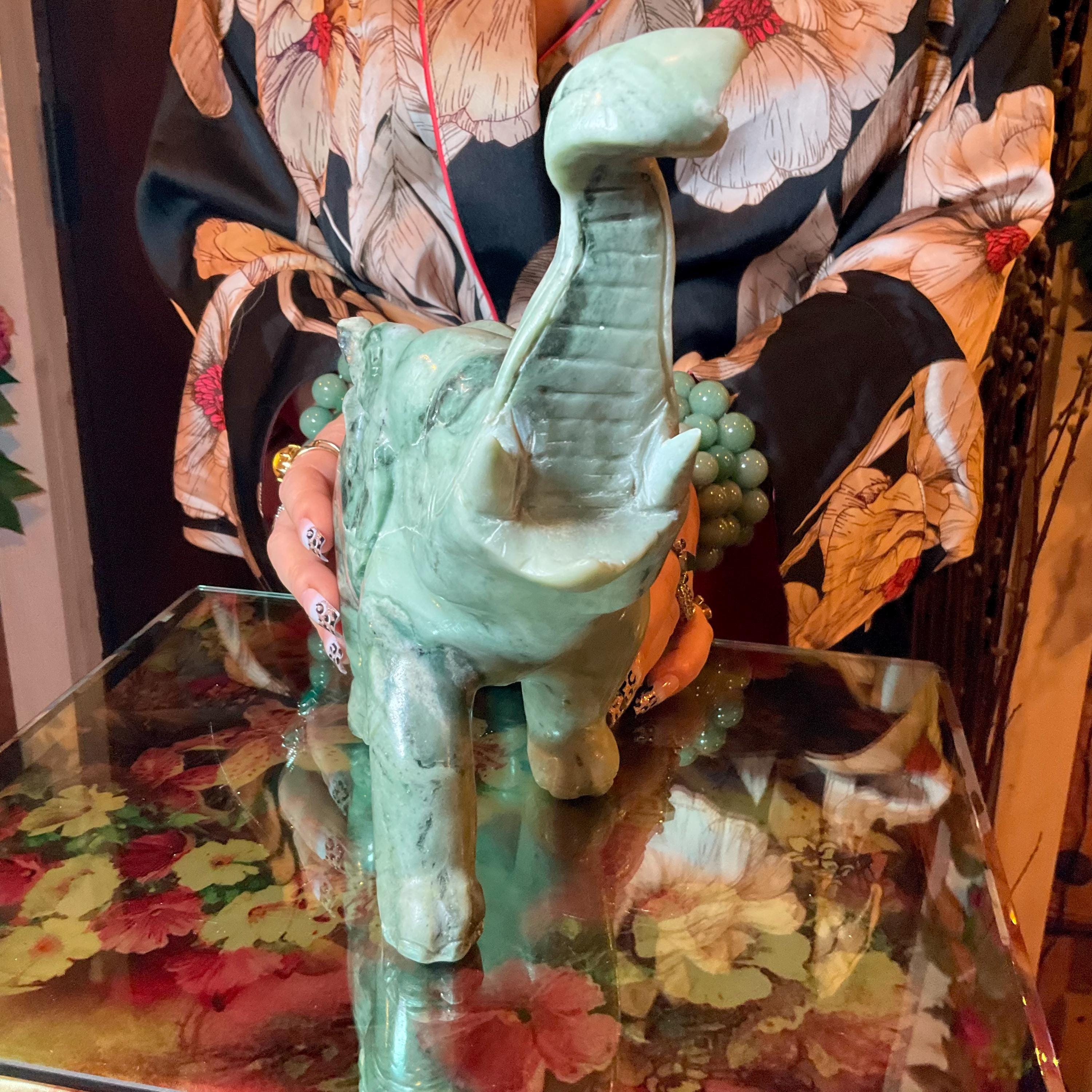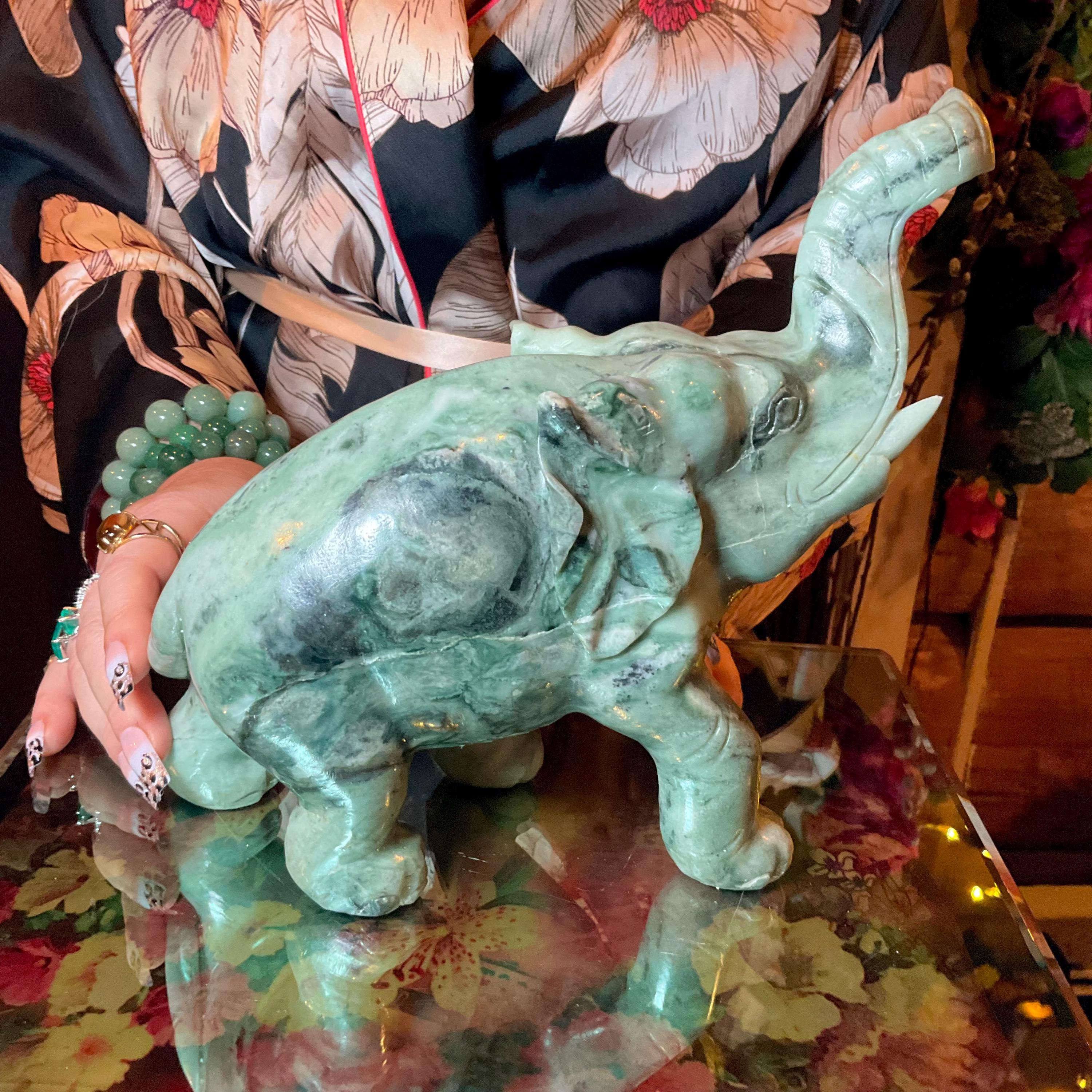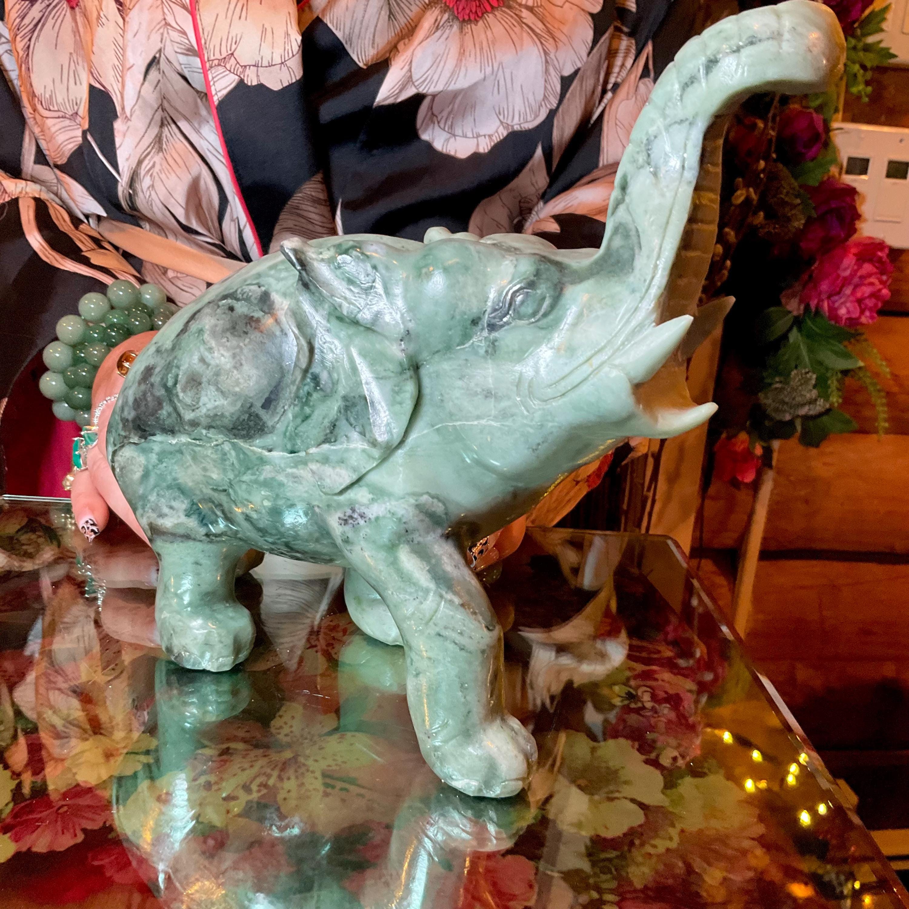 This is a one-of-a-kind carved vintage, Jade Elephant.