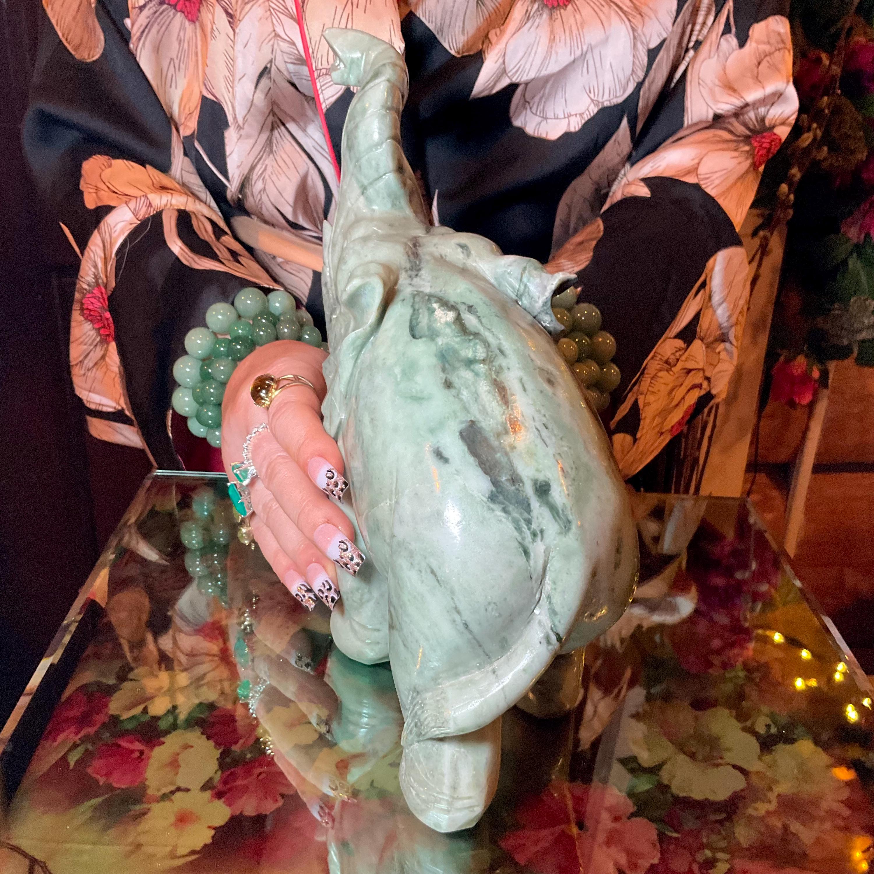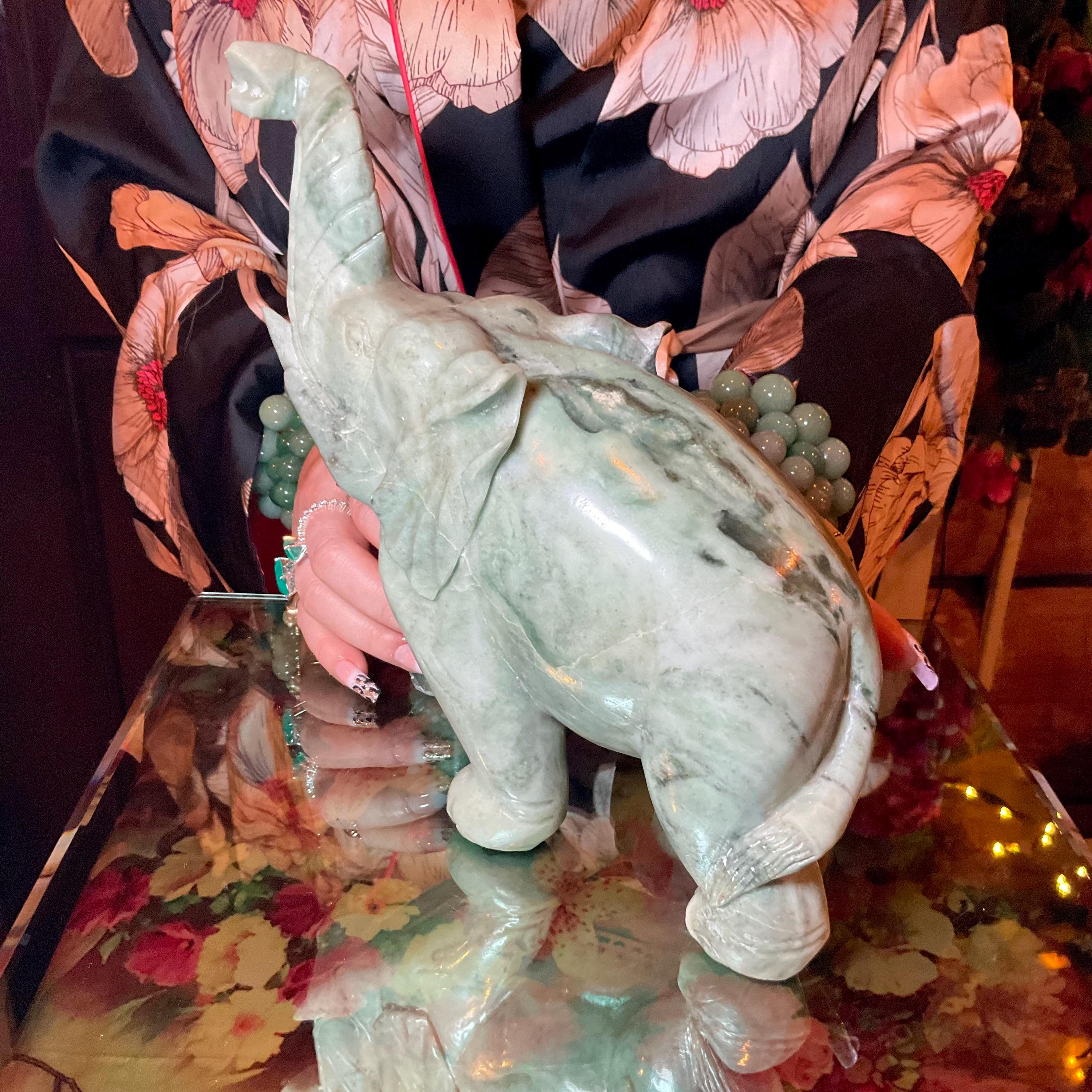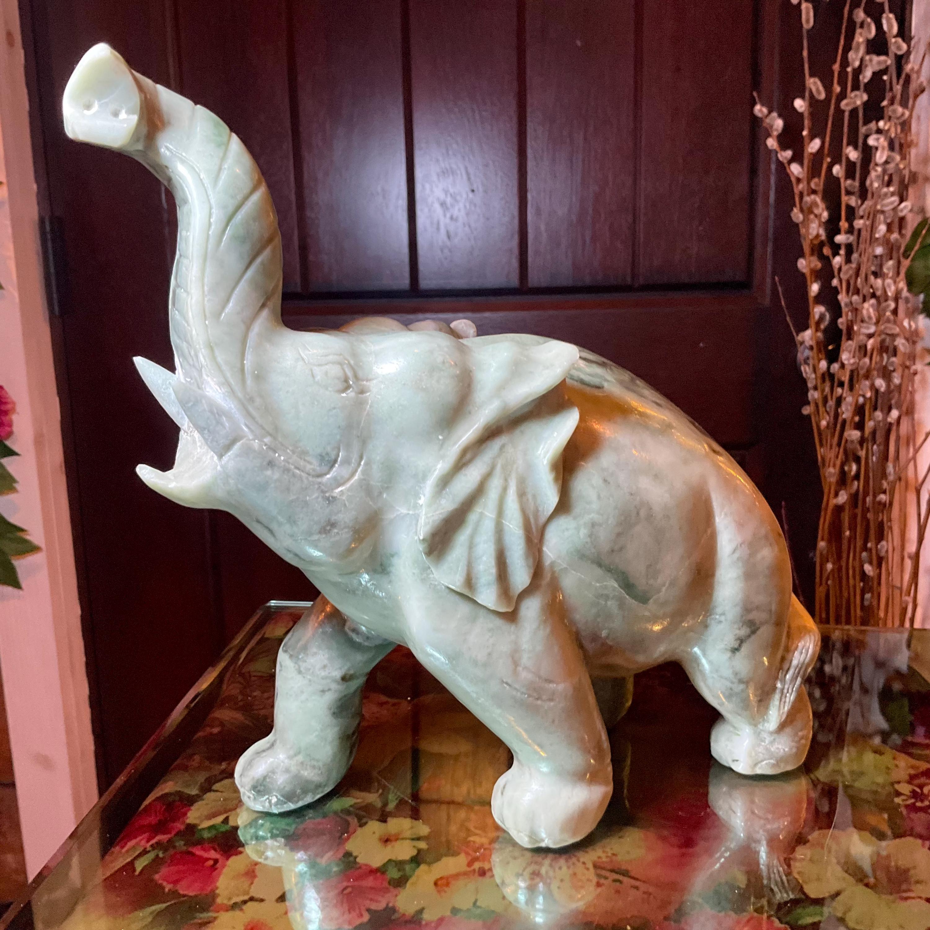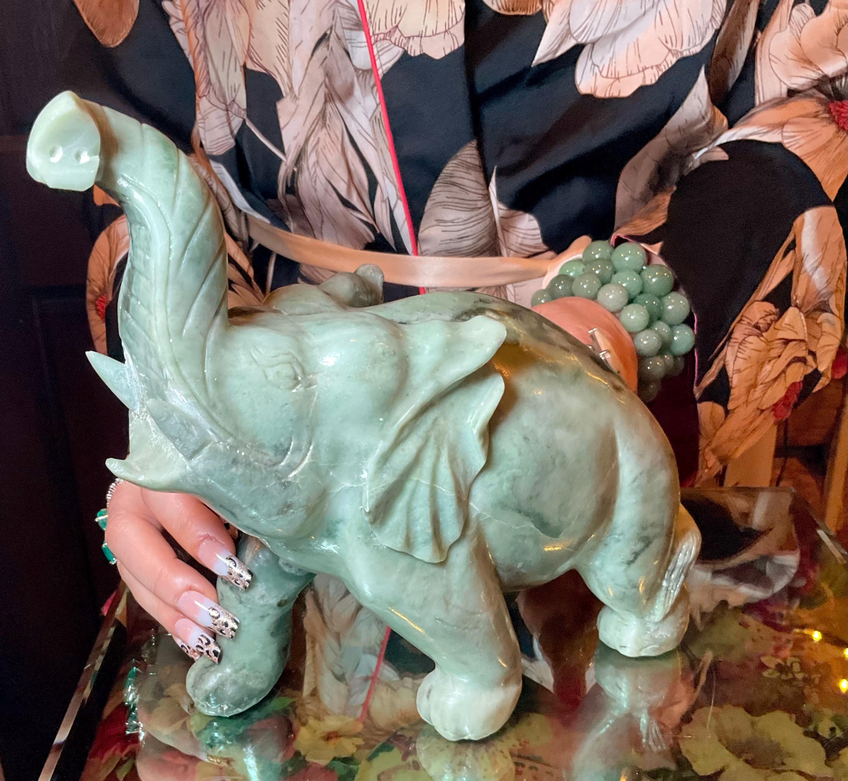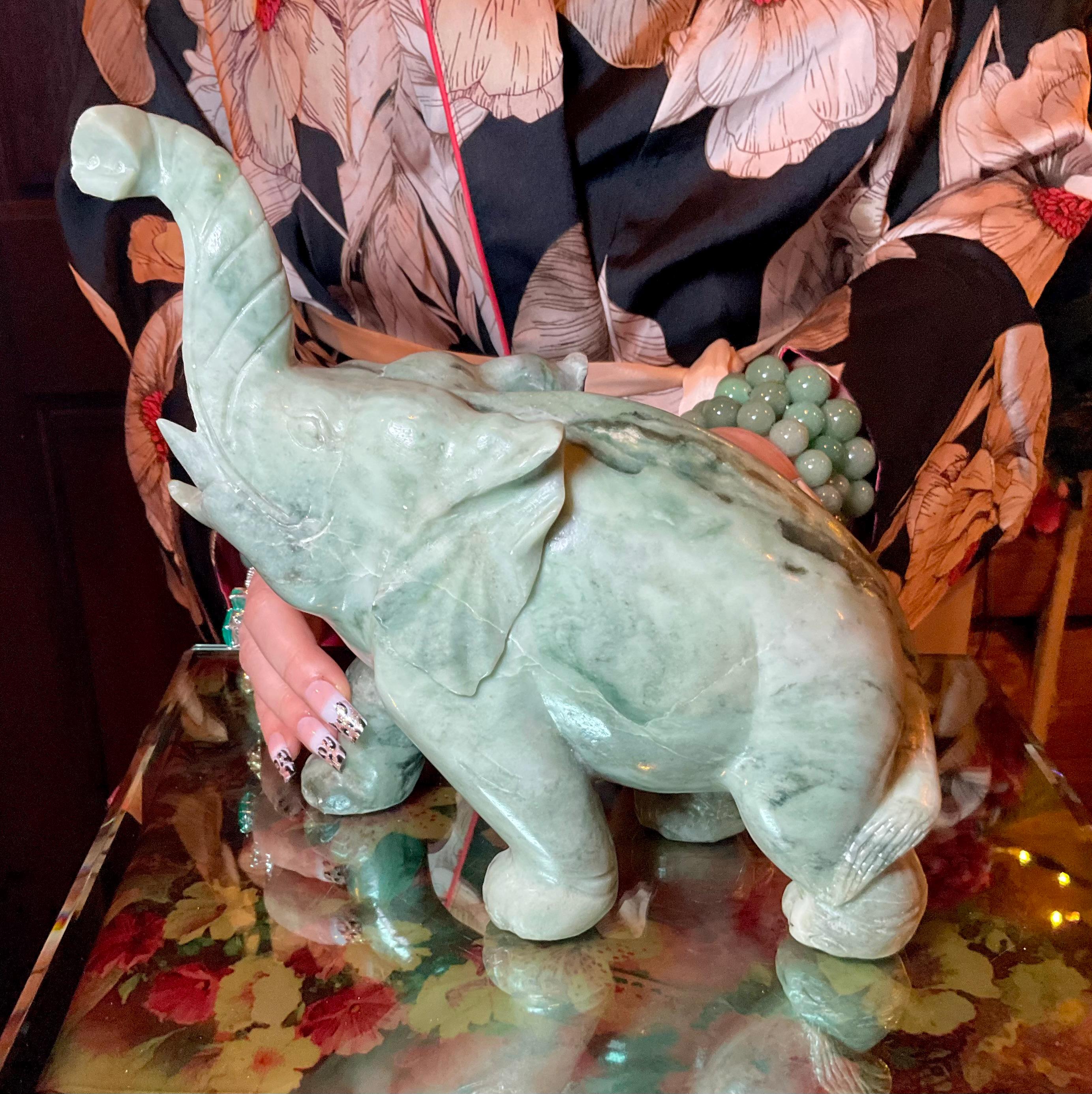 This perfect size Jade elephant weighs 6 pounds 13 ounces, and it was beautifully hand carved.