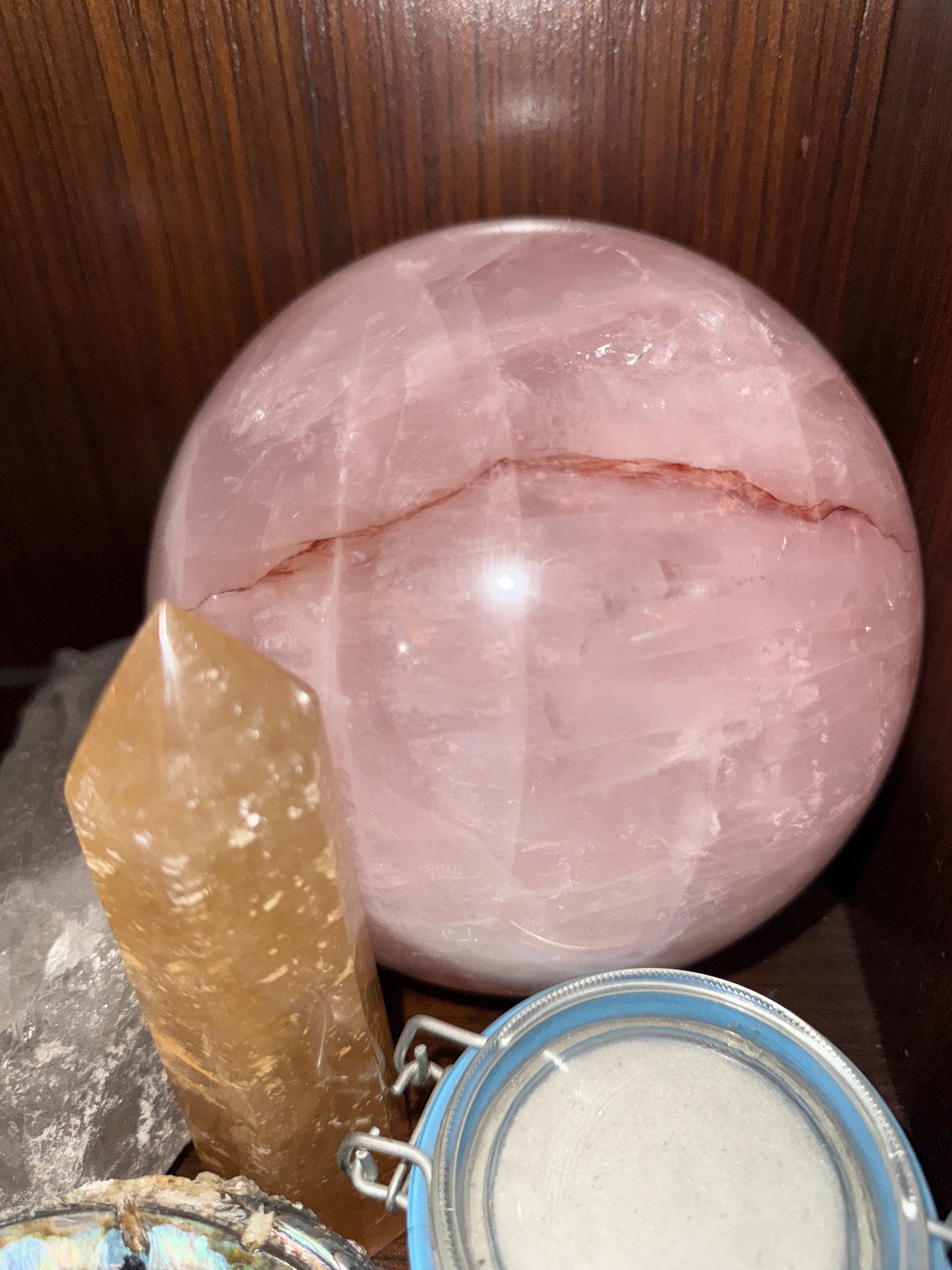 SOLD OUT ~ Reserved for Kristin ~ Payment 8 of 8 ~ Rose Quartz Crystal Ball ~ Large 17 lb ~ 7" Wide ~ Pink Golden Healer ~