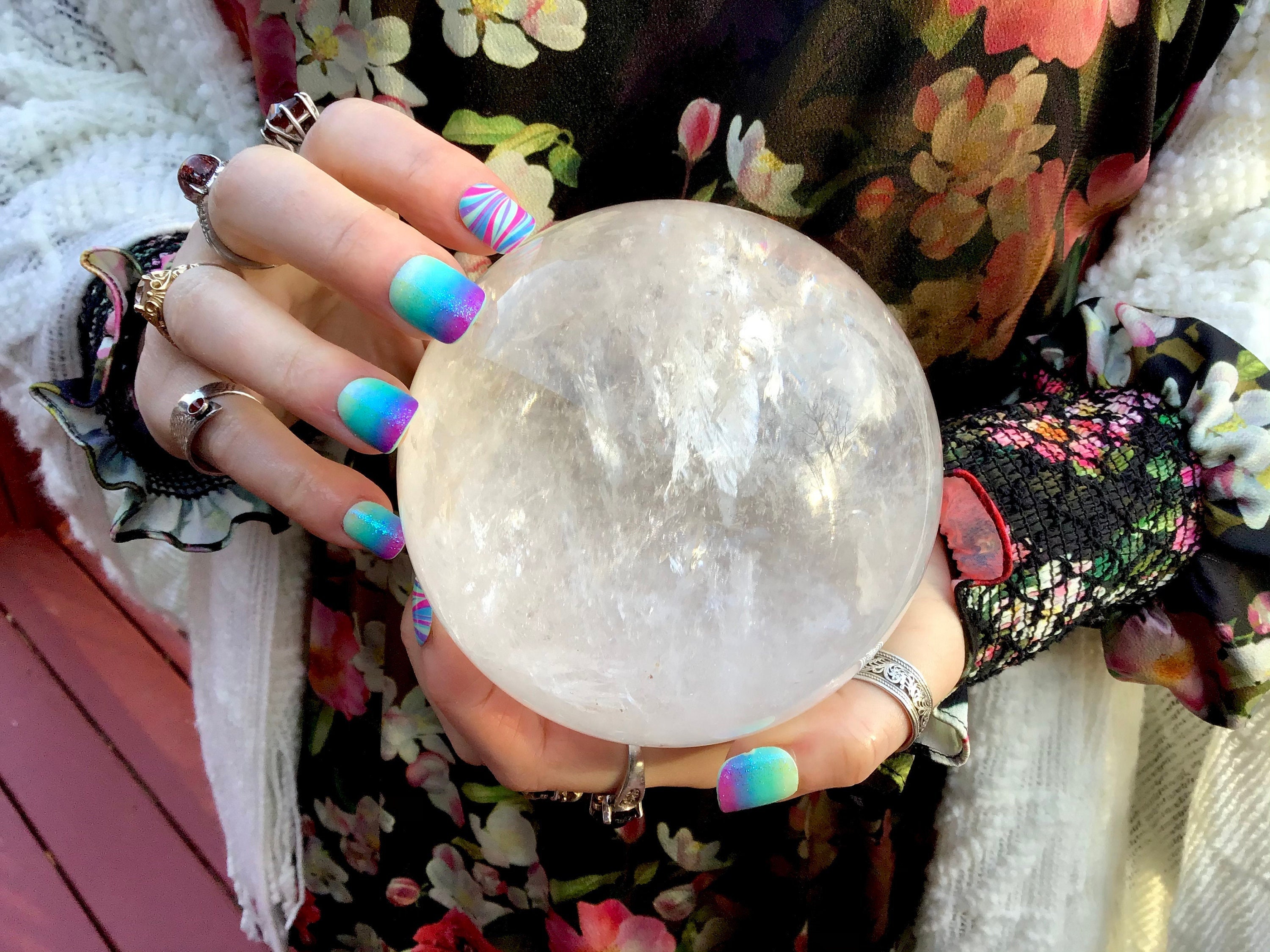 This is the most amazing crystal ball ~ it will blow your mind!! the sparkling silver rainbow inclusions are insane, and you will never see another crystal ball quite like this.