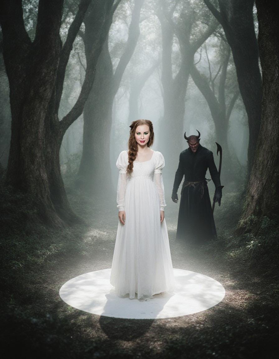 After 3 years time, just as the devil had promised, he returned for the young maiden. She was sparkling clean and dressed in white, and drew a white circle around her with her chalk.