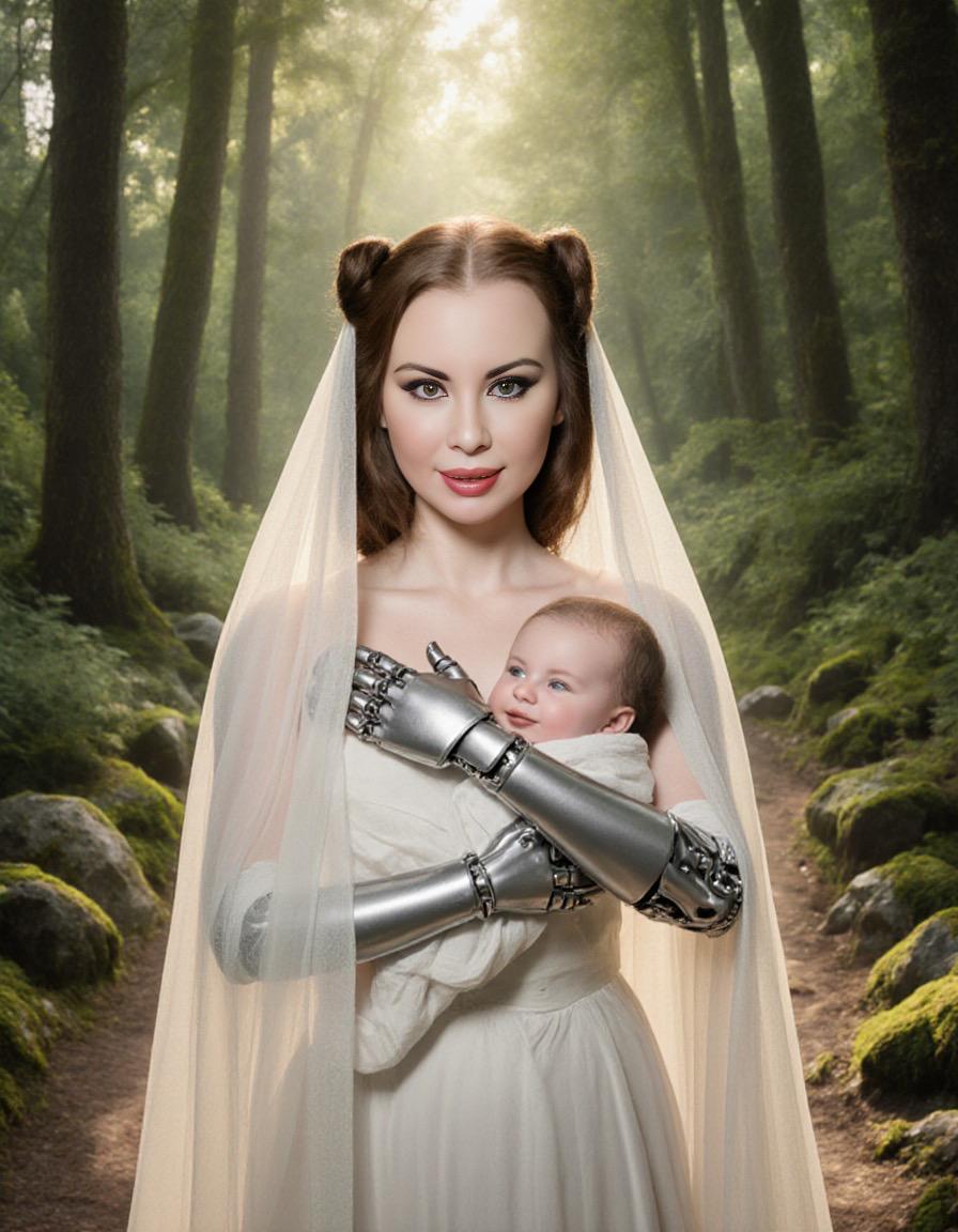 So the Old Wise Mother strapped the baby to the Queen, and put a veil over her, so that they could disappear into the woods and make their escape. Β